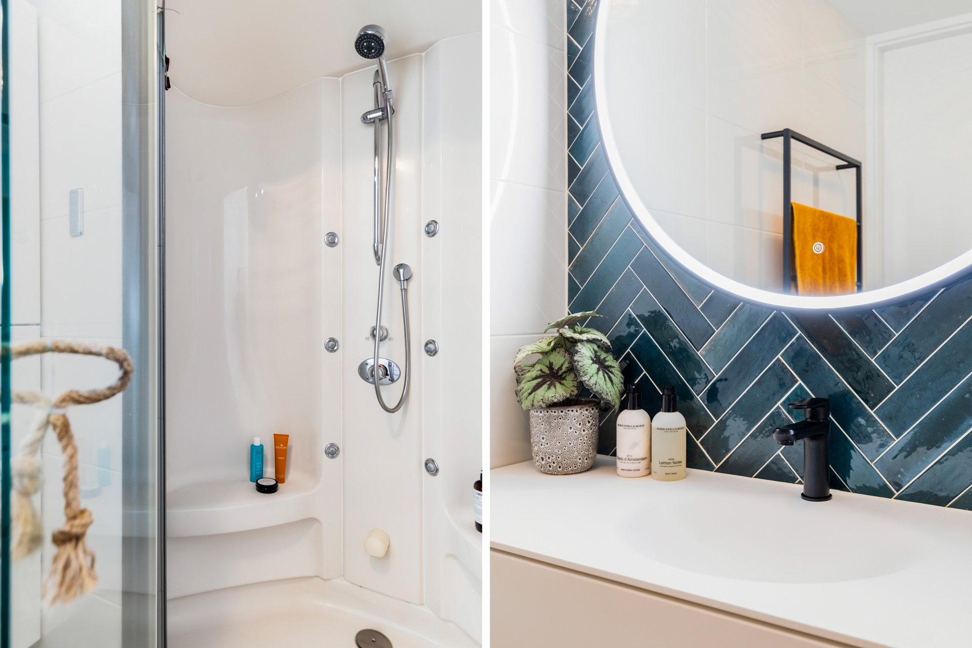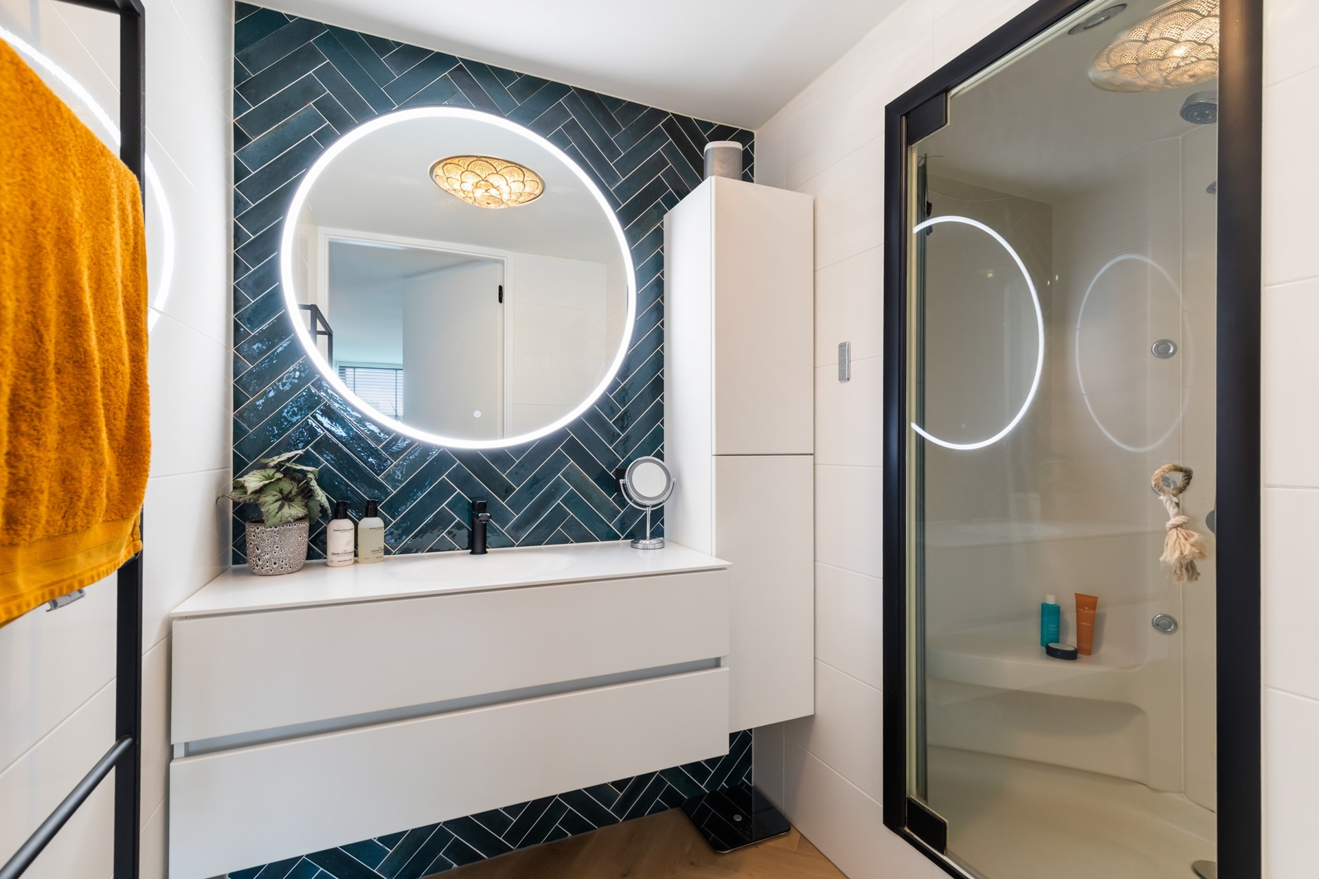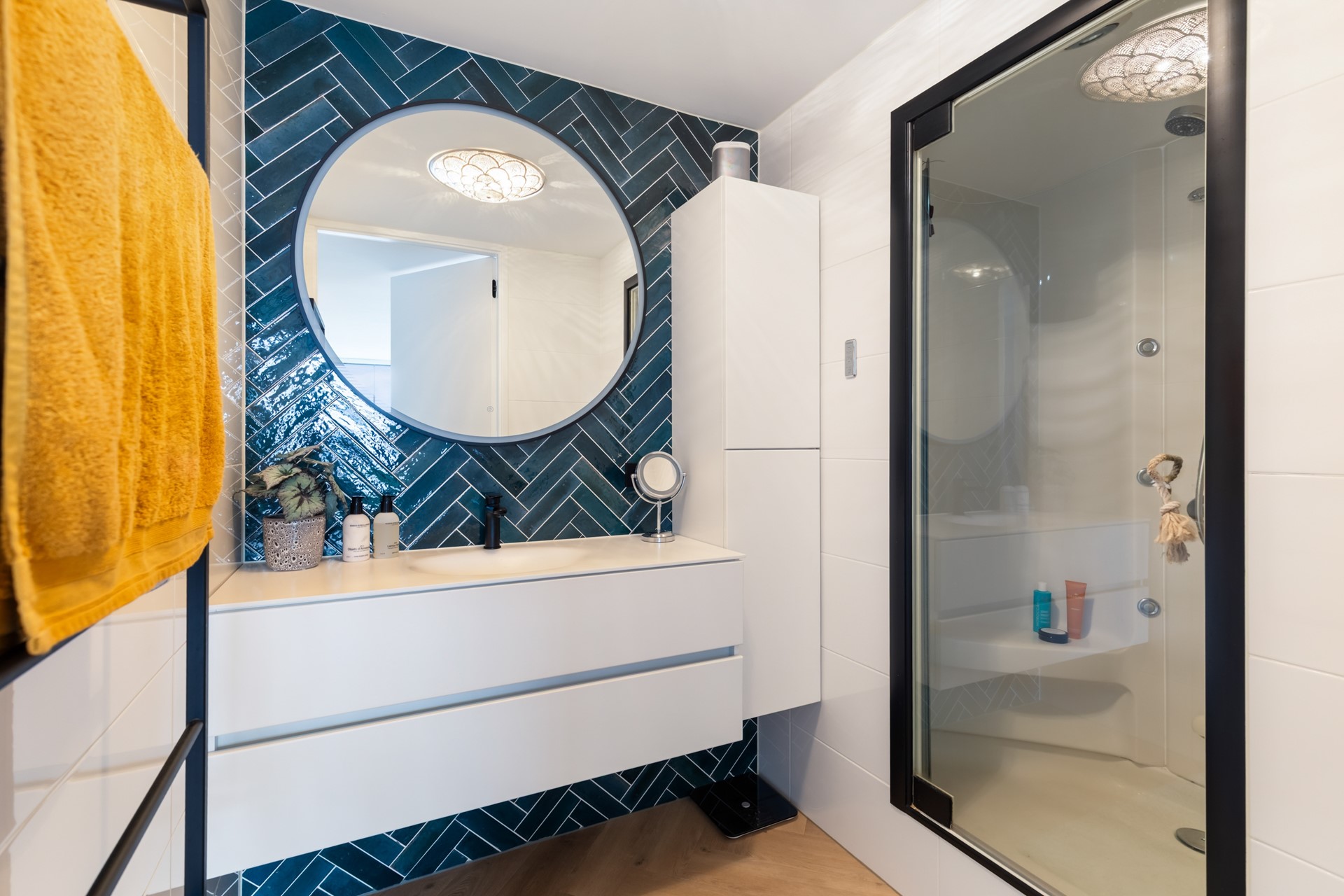 - Moderne badkamer met 2-persoons stoom/douchecabine en sunshower en wastafel