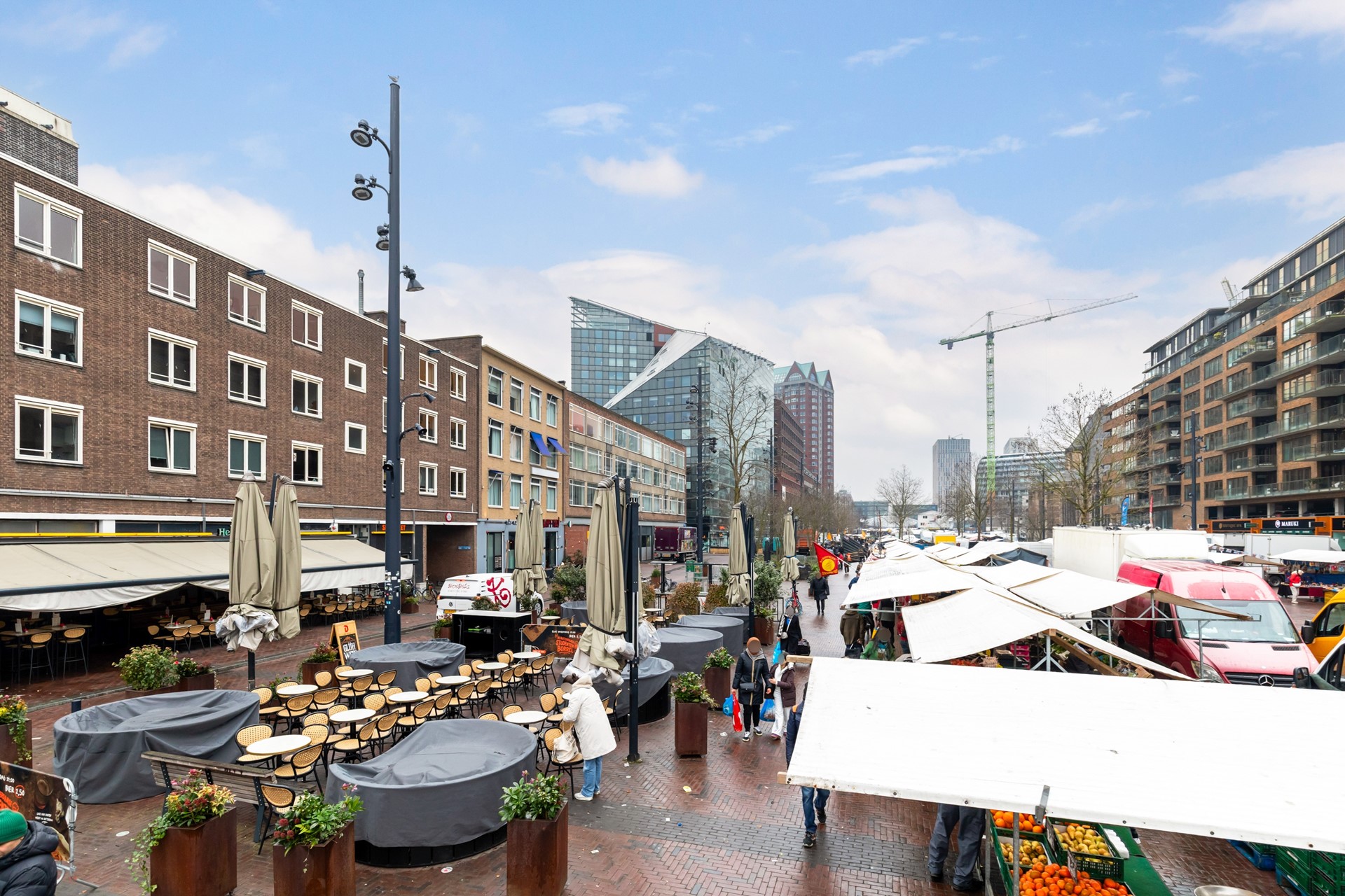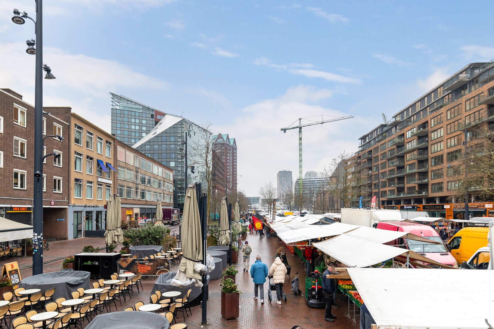 Gelegen tussen station Blaak, de Markthal en de populaire Meent, heeft u alle voorzieningen binnen handbereik. Winkelen doet u in de Koopgoot, ontspannen kan bij de vele trendy horecagelegenheden zoals Van Zanten, Thoms de Gele Kanarie etc etc. Supermarkten zoals Jumbo, Albert Heijn en Coop liggen op loopafstand. Ook het openbaar vervoer is uitmuntend bereikbaar; trein, metro, bus en tram bevinden zich namelijk om de hoek. Op de dinsdag en de zaterdag geniet u daarnaast ook nog eens van de vele verse producten op de Rotterdamse buitenmarkt. Hoe gemakkelijk kunt u het treffen!