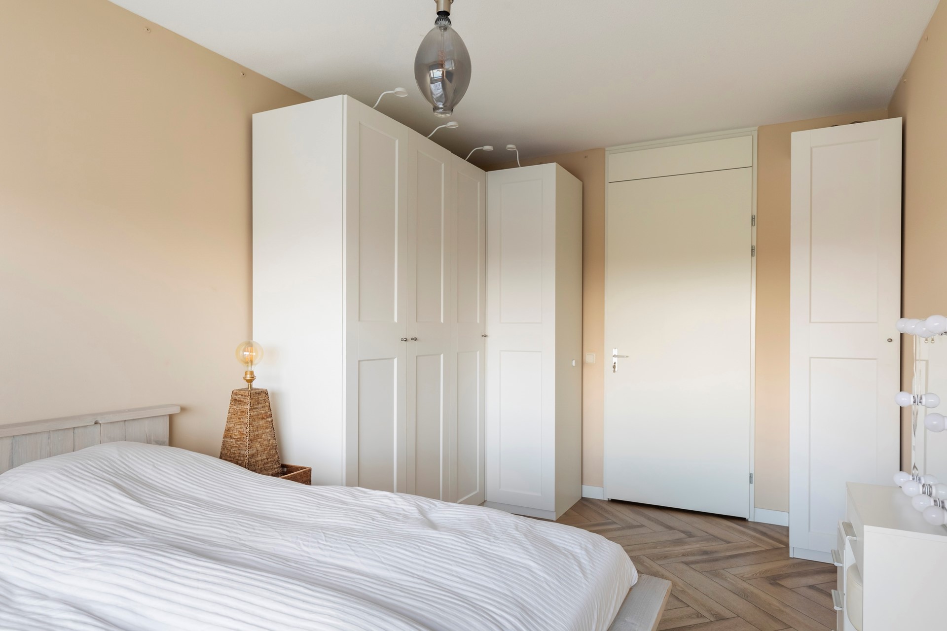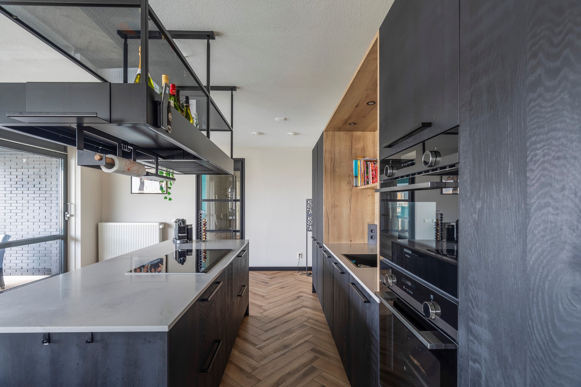 De ruime woonkamer is een ware blikvanger dankzij de grote raampartijen en het indrukwekkende uitzicht over de stad en de haven. De gelhaard maakt de woonkamer extra sfeervol en zorgt voor een gezellige plek om samen te komen. De nieuwe open keuken, uitgevoerd in warme tinten, is het hart van de woning. De keuken is uitgerust met een kookeiland, voorzien van een composiet werkblad en diverse hoogwaardige inbouwapparatuur. Het mooiste van alles? Terwijl je hier staat te koken, geniet je van een prachtig uitzicht over het water en de haven. De keuken is niet alleen praktisch, maar ook een plek waar je volop kunt genieten van het buitenleven terwijl je je culinaire creaties bereidt.