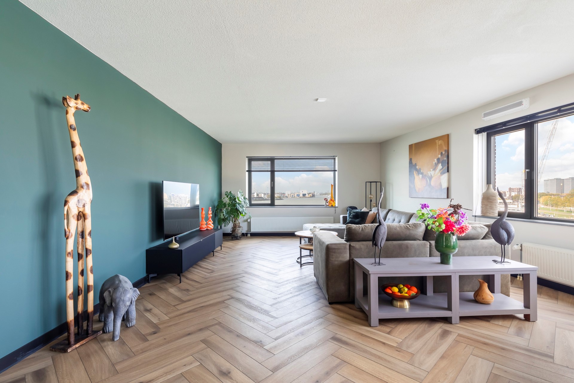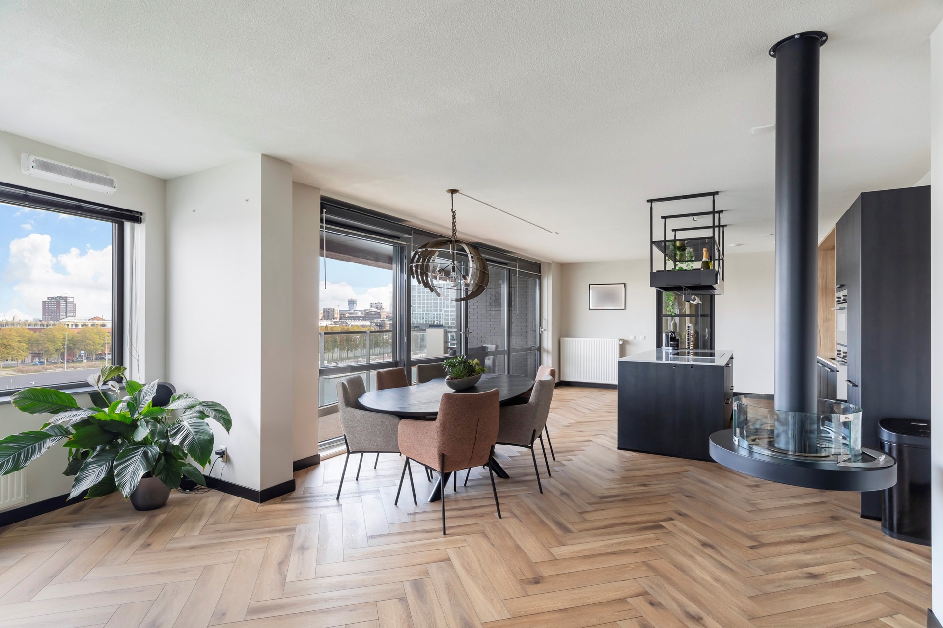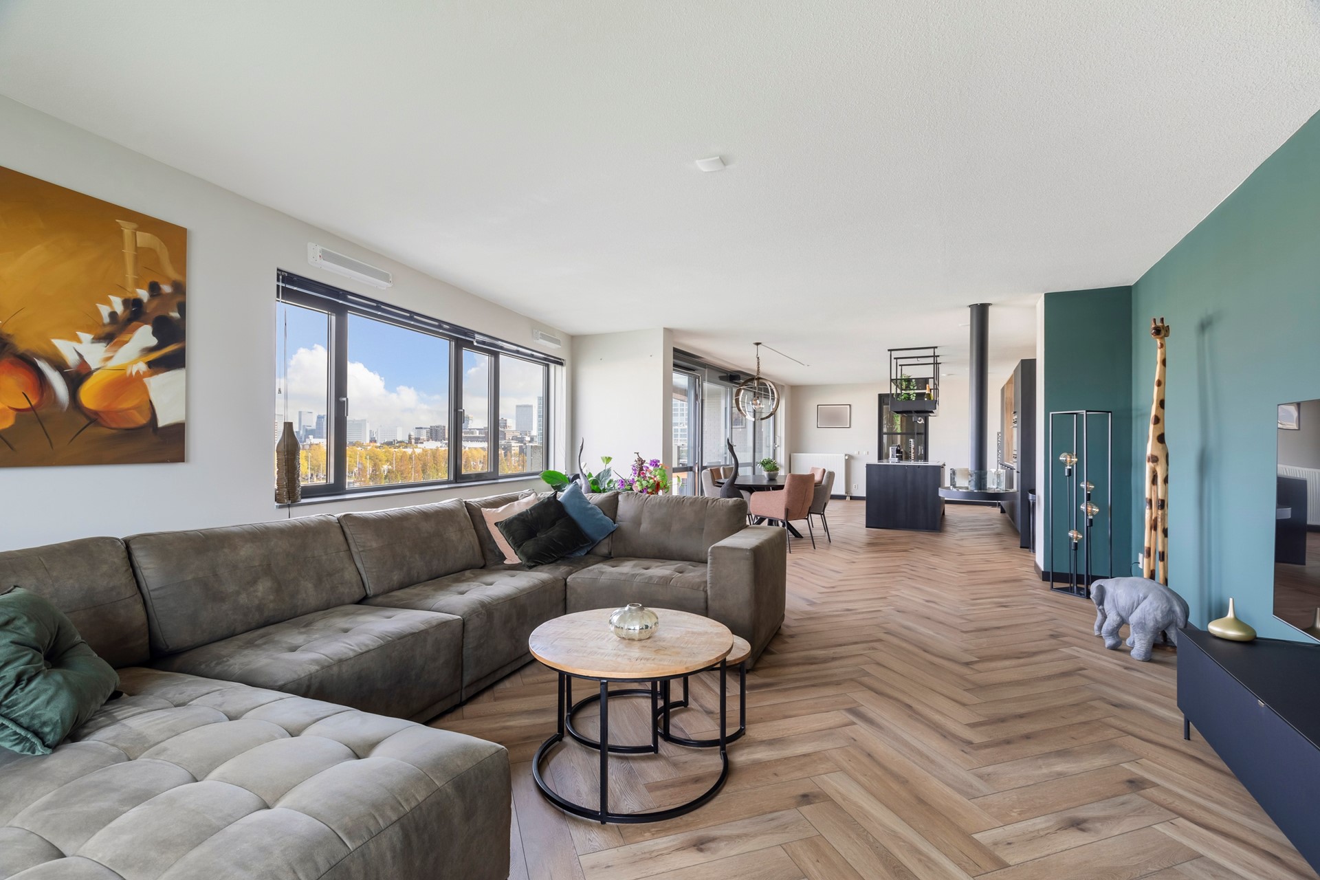 Wonen met een prachtig uitzicht over de Rotterdamse haven én de skyline van de stad? Dat kan in dit luxe en royale 4-kamerappartement van circa 135 m², gelegen op de 6e verdieping van een modern complex in het geliefde Lloydkwartier. De woning is recent gemoderniseerd en volledig instapklaar. Grote raampartijen zorgen voor een prachtige lichtinval en een panoramisch uitzicht over het water en de stad. Dit appartement, gebouwd in 2010 en voorzien van energielabel A, is een toonbeeld van eigentijdse elegantie, met een recent modernisering die het de perfecte balans geeft tussen stijl en comfort. De PVC-visgraatvloer en strak gestuukte wanden zorgt voor moderne uitstraling. De open keuken met kookeiland, luxe apparatuur en een composiet werkblad maakt koken tot een waar genoegen. Bovendien zorgt de gelhaard voor een extra vleugje sfeer en warmte, ideaal om de avonden gezellig door te brengen. Met drie slaapkamers, een ruim balkon/loggia en een eigen parkeerplaats is dit een ideale woning voor wie ruim, comfortabel en stijlvol wilt wonen in de stad.