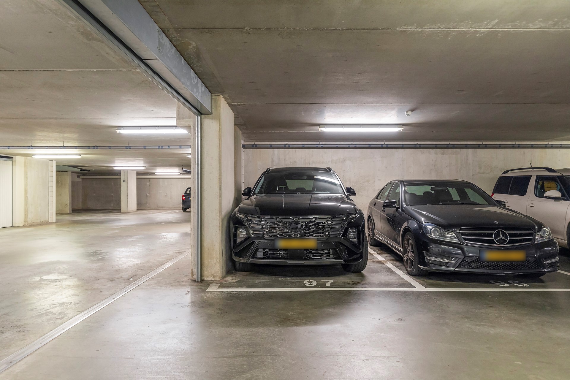 In de onderbouw bevindt zich een ruime privéberging, ideaal voor fietsen of extra opslag. Bij de woning hoort één eigen parkeerplaats in eigendom. Daarnaast is er de mogelijkheid een tweede parkeerplaats te huren direct bij het complex — een absolute meerwaarde in deze populaire stadswijk.