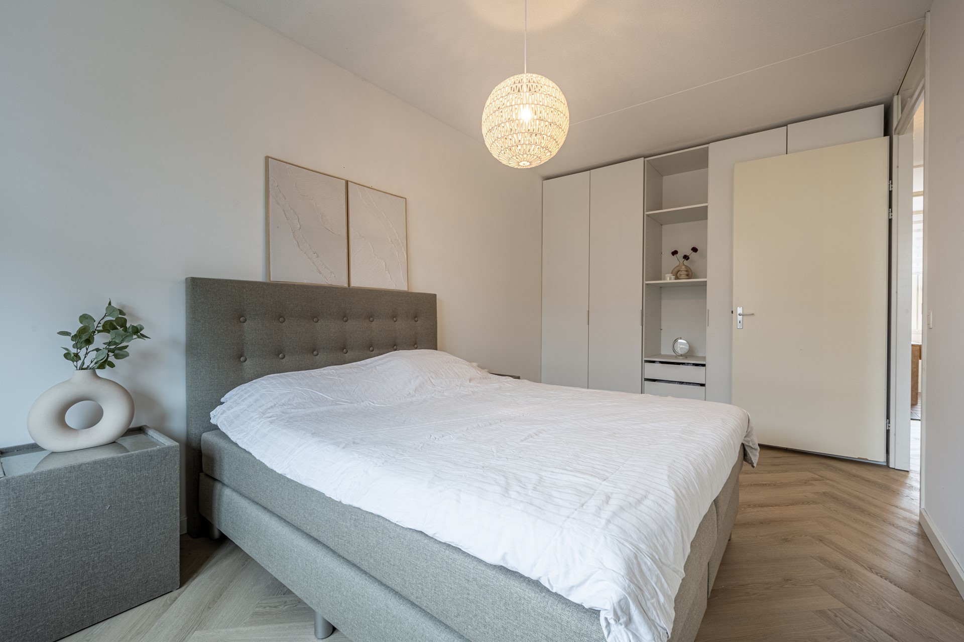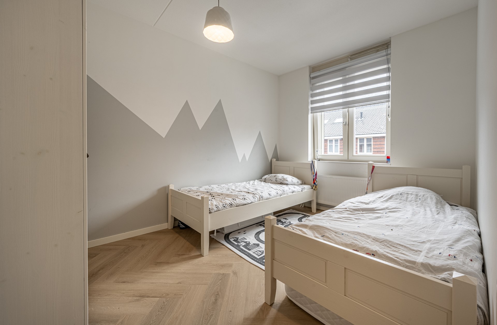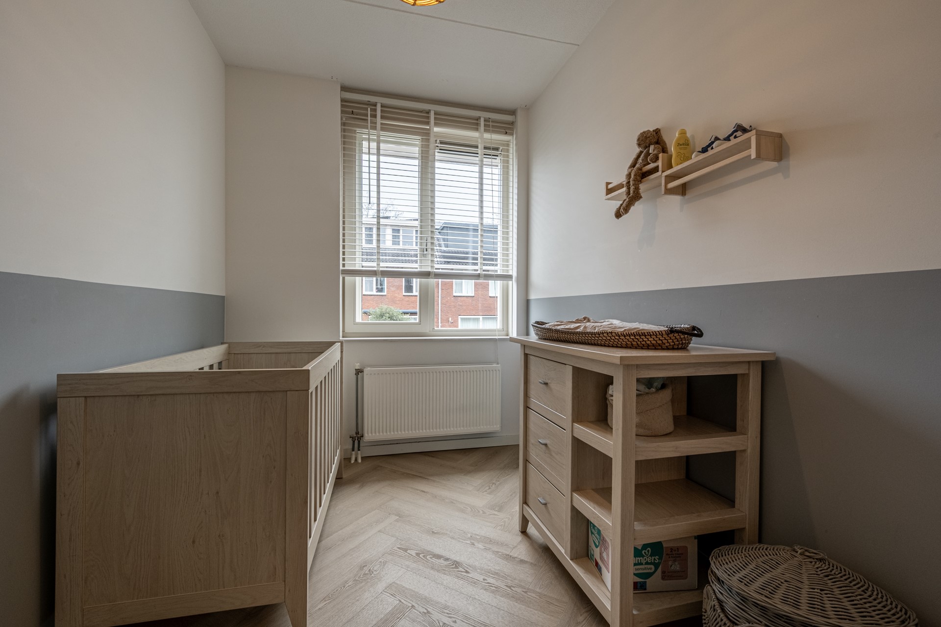 Op de eerste verdieping bevinden zich drie fijne slaapkamers, allemaal met een prettige lichtinval. Aan de achterzijde liggen de hoofdslaapkamer en een tweede slaapkamer; aan de voorzijde vind je een ruime derde kamer, ideaal als kinder- of werkkamer. De badkamer is modern en compleet uitgerust met een ruime douche, een tweede toilet, een wastafelmeubel met spiegel en een handdoekradiator.