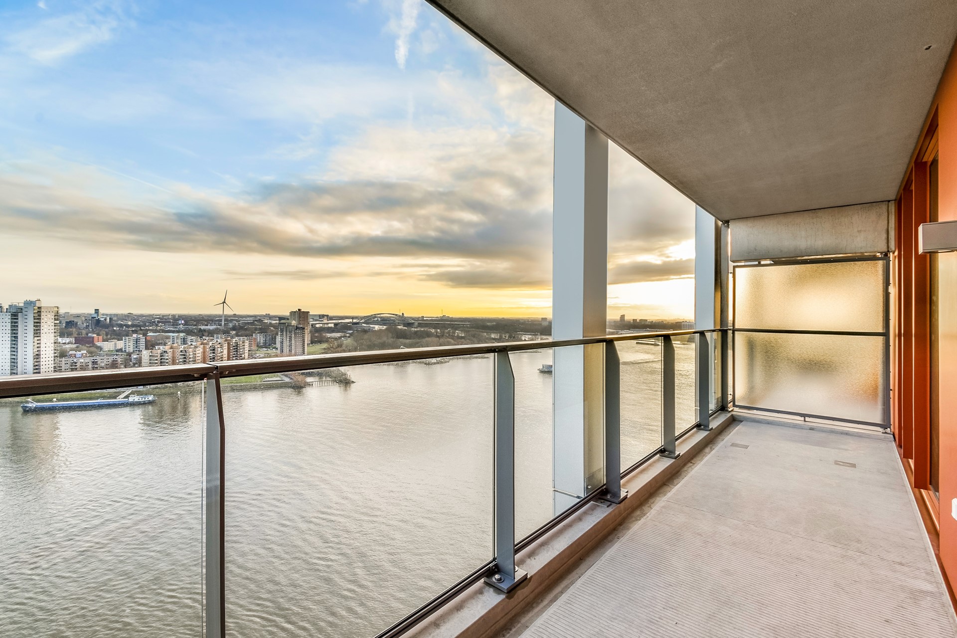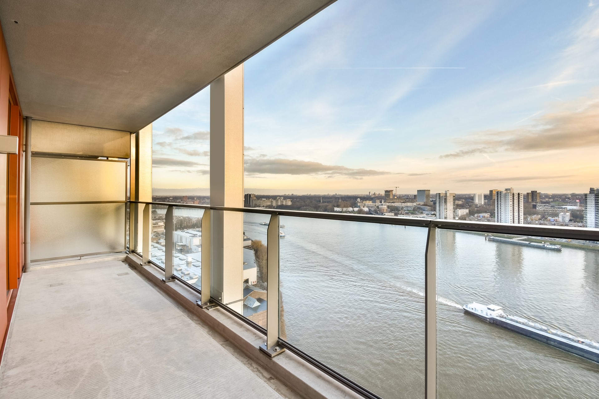- Vanaf de 19e verdieping heb je vanaf het ruime balkon een panoramisch uitzicht over de Maas;