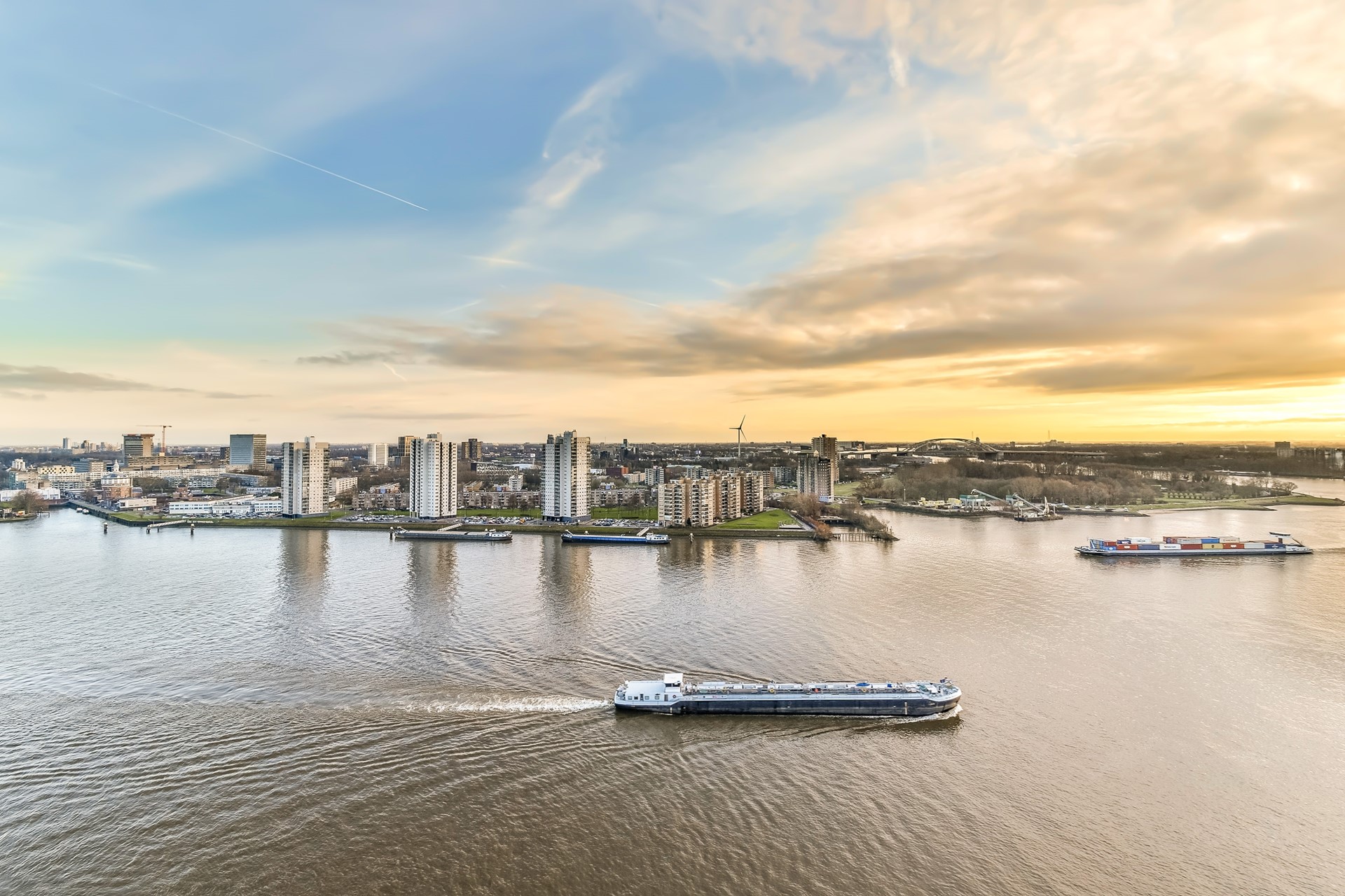 2. Panoramisch uitzicht over de Maas en de skyline van Rotterdam;