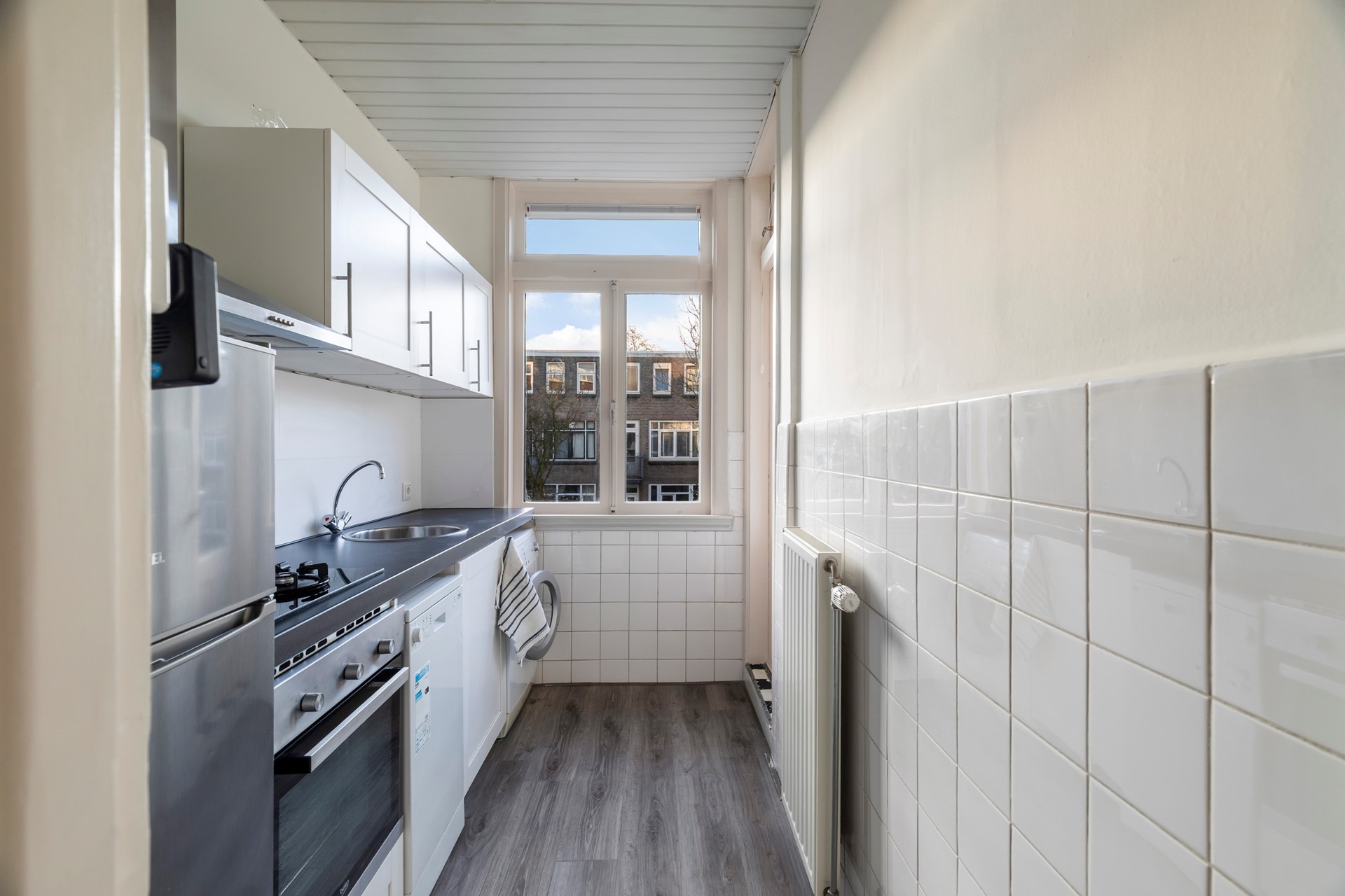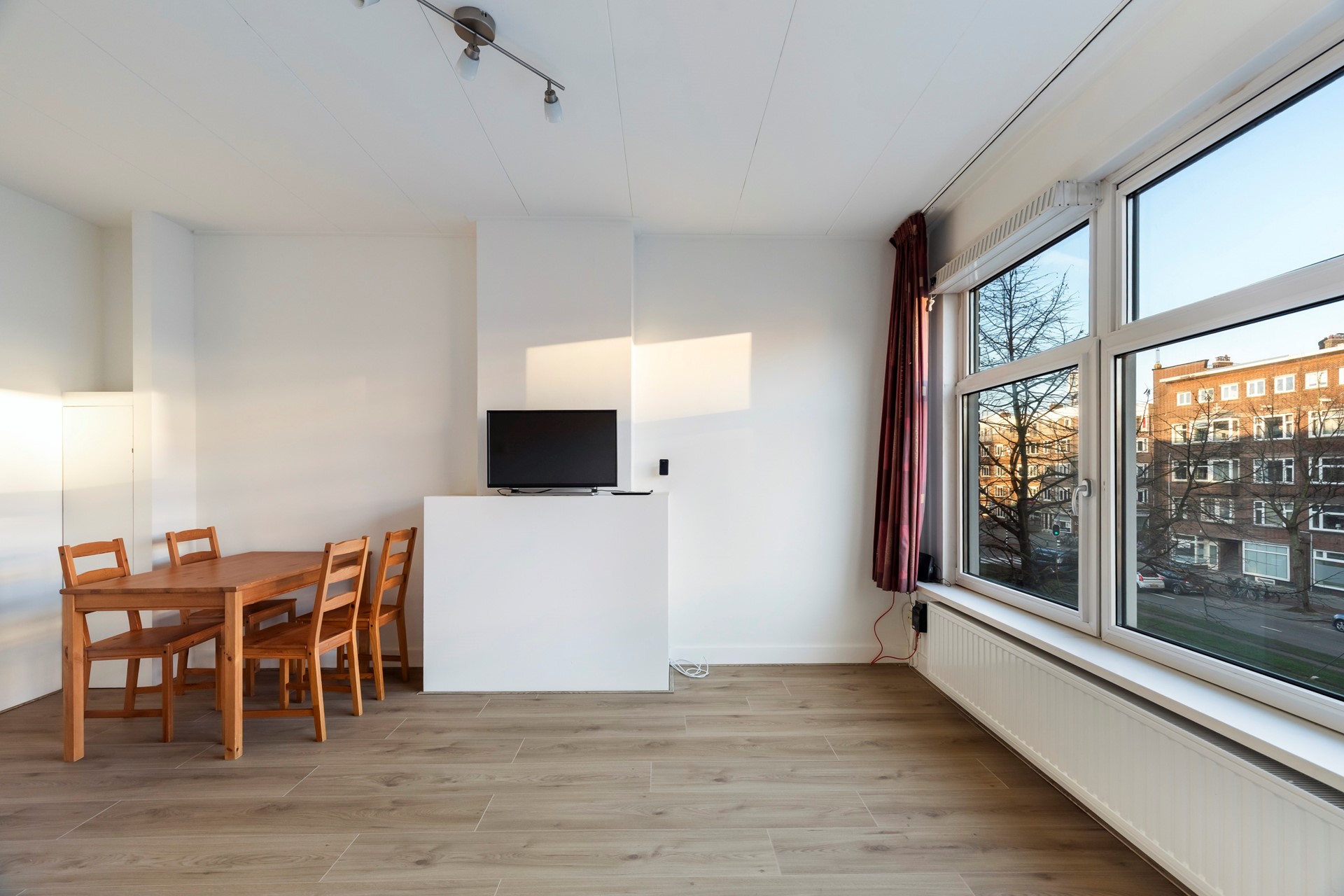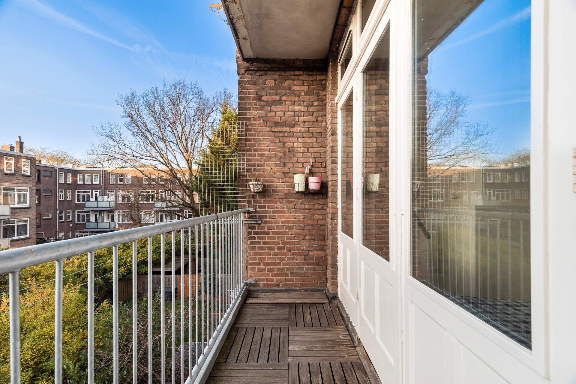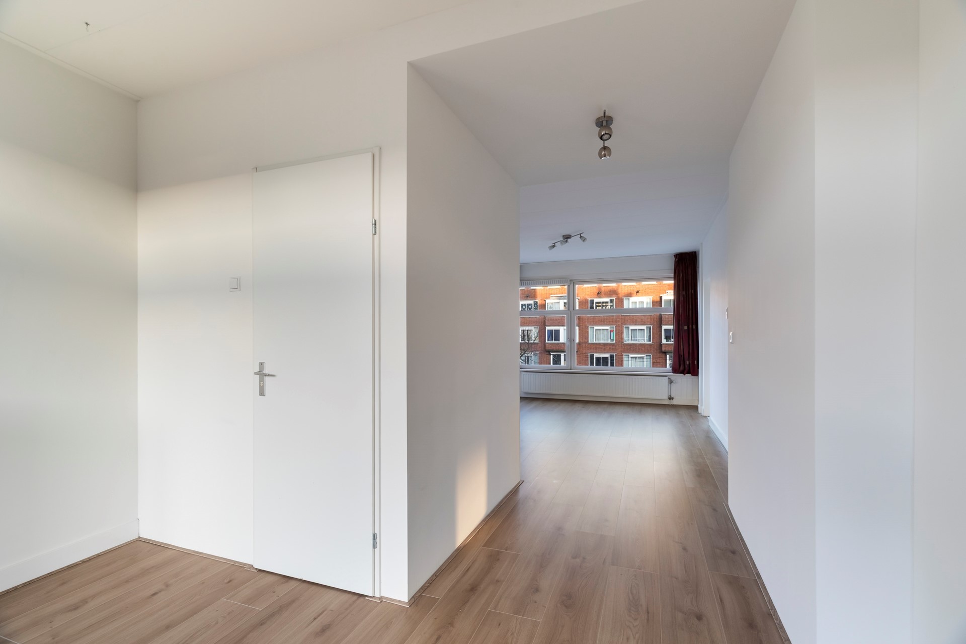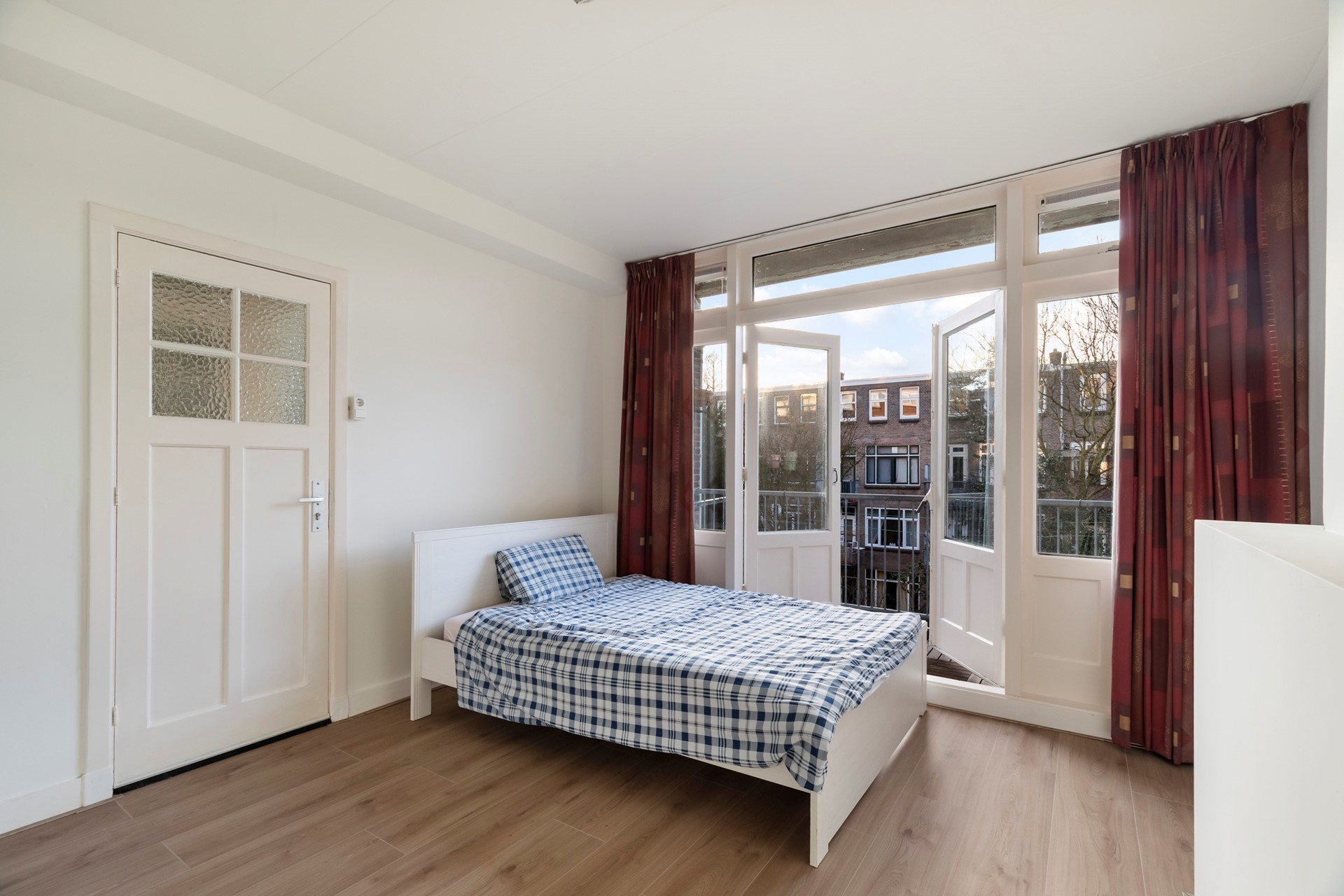 Modern en recent vernieuwd inbouwtoilet, afgewerkt met antracietkleurige tegels tot halverwege de wand en voorzien van een fontein. Strak en tijdloos uitgevoerd. Aan de voorzijde vind je een lichte, royale woonkamer met direct daaraan gekoppeld een aparte studieruimte. In de woonkamer zorgen de kunststof kozijnen en de slimme decibel reducerende ventilatiesleuven ervoor dat je binnen zit te genieten zonder te worden gestoord door het verkeer. Aan de achterzijde wacht de indrukwekkende masterslaapkamer met houten openslaande deuren naar het op het zuidwesten gelegen balkon. Je bent hier verzekerd van privacy en rust: het balkon kijkt uit over de achtergelegen tuinen en biedt volop ruimte voor lange zomeravonden buiten. De ensuite badkamer (ook vernieuwd in 2016) is v.v. mechanische ventilatie, een wastafel, handdoekenradiator en inloopdouche. Alles is netjes en modern betegeld.