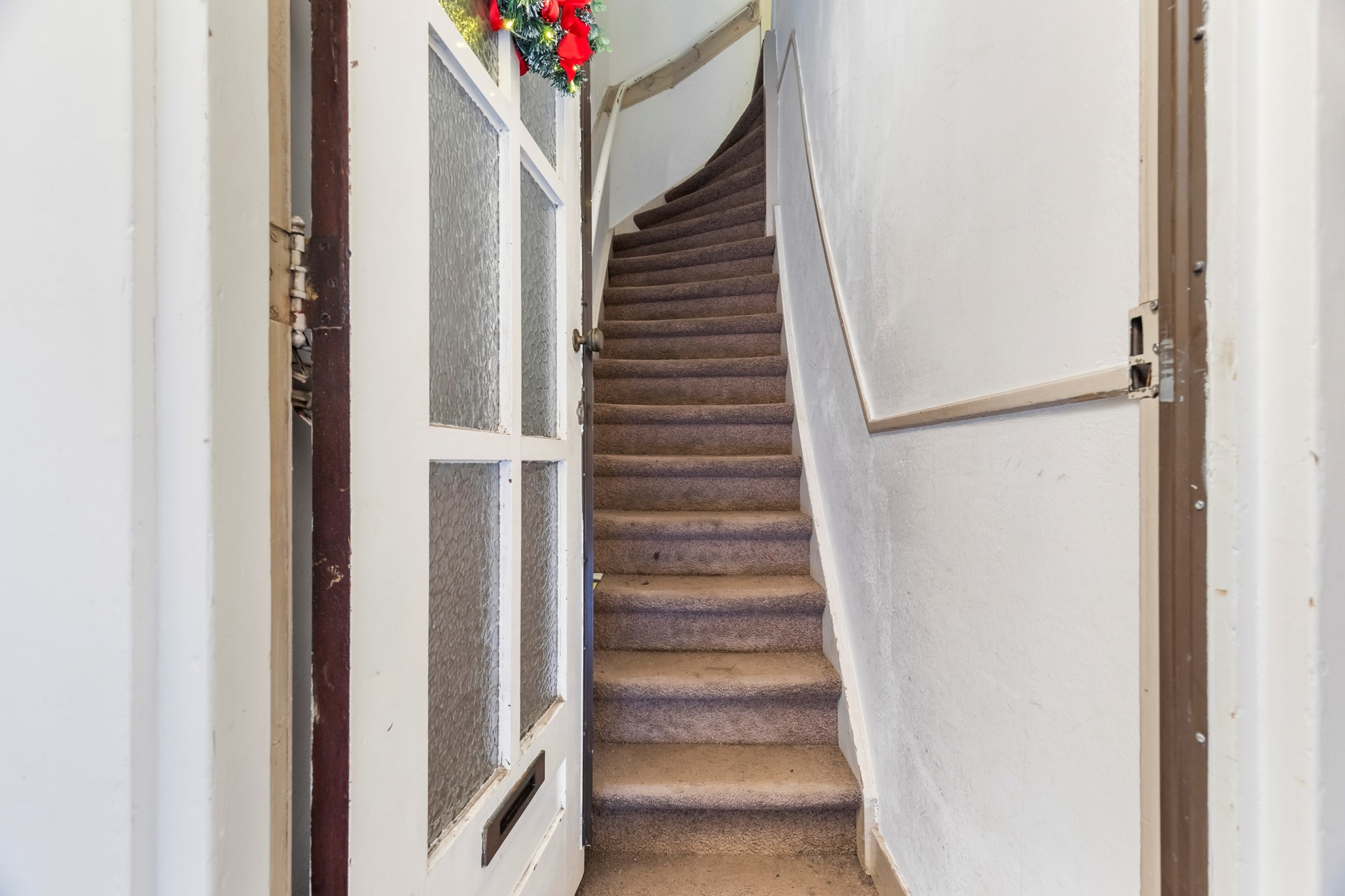 Eigen entree op de begane grond. Bij binnenkomst bereikt u de trap die u naar de eerste woonlaag leidt.