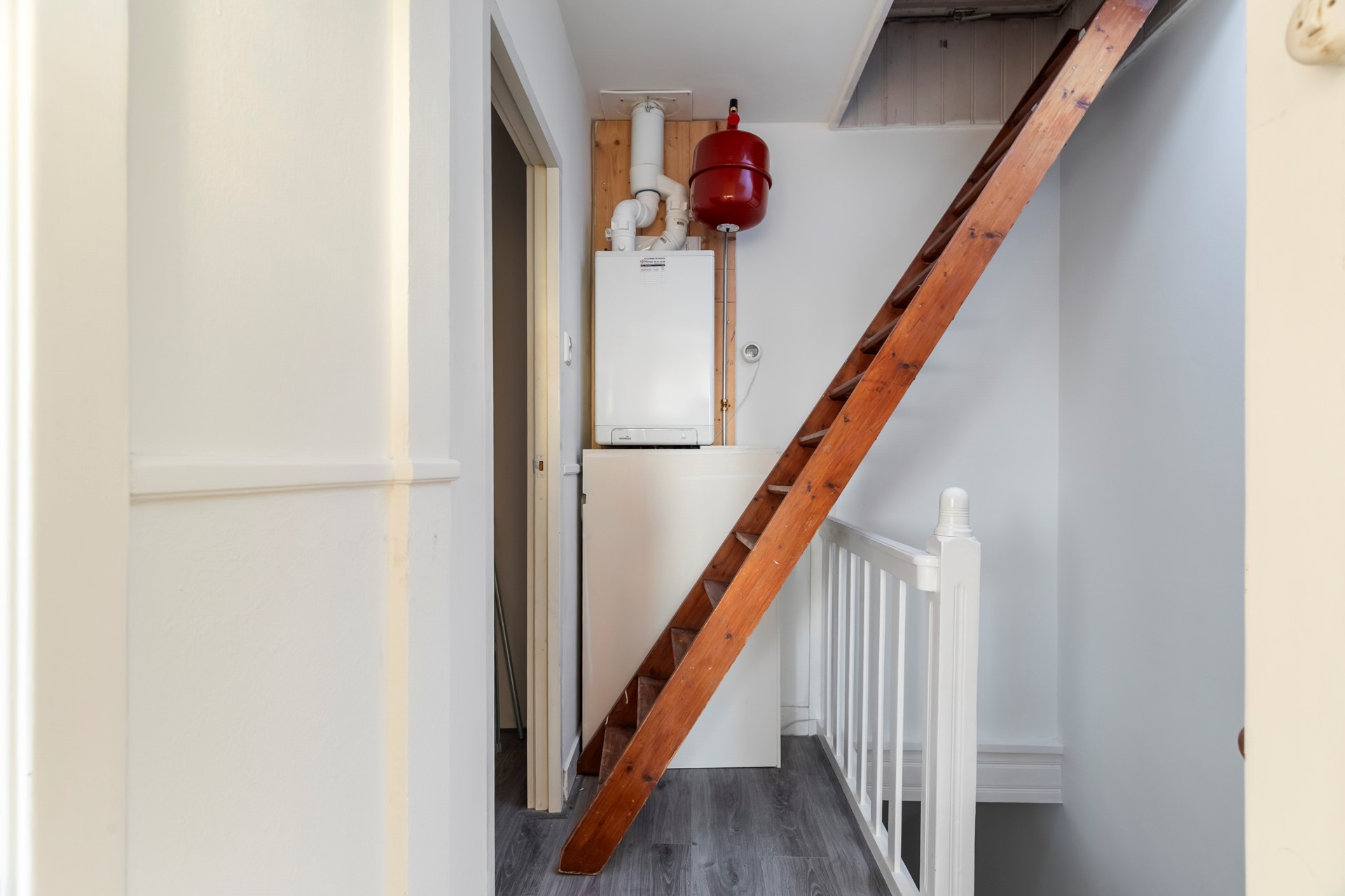 Vanaf de overloop heeft u toegang tot de slaapkamer, woonkamer en handige bergkast voor extra ruimte. Hier hangt tevens de cv-ketel (Intergas, eigendom, bj. 2022). Daarnaast is er op deze verdieping een eigen inbouwtoilet (2016) aanwezig, afgewerkt met antracietkleurige tegels en voorzien van een fontein. Vanaf de overloop is het dak bereikbaar in geval van brand. De woning is overal voorzien van brandmelders;