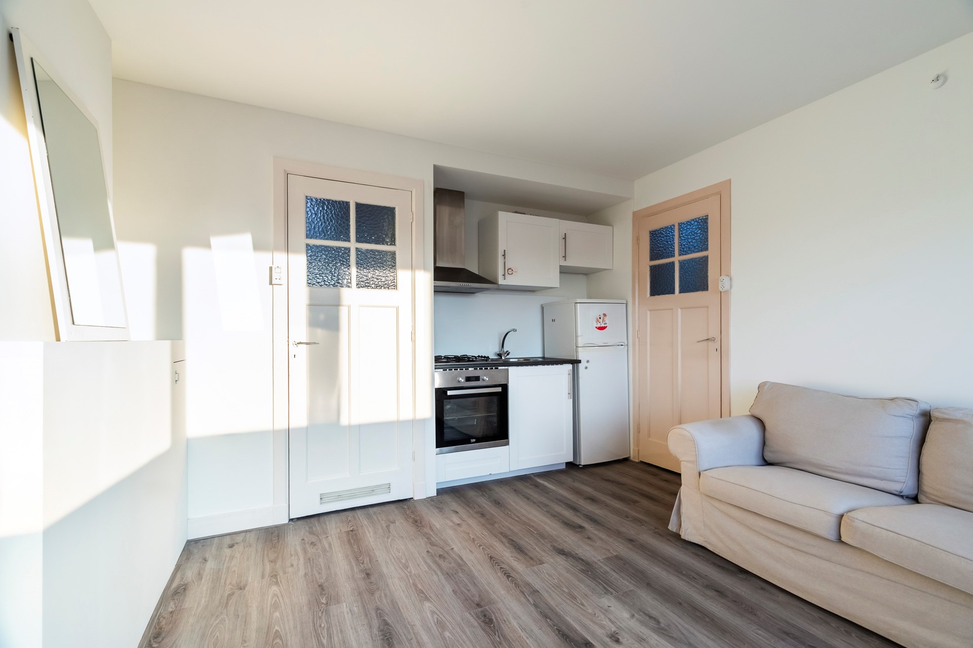 De woonkamer op deze verdieping is ruim en prettig ingedeeld en beschikt over een compacte keukenopstelling. Deze keuken is uitgerust met een oven, een 4-pits gasfornuis en een losse koelkast, waardoor de verdieping uitstekend zelfstandig te gebruiken is;