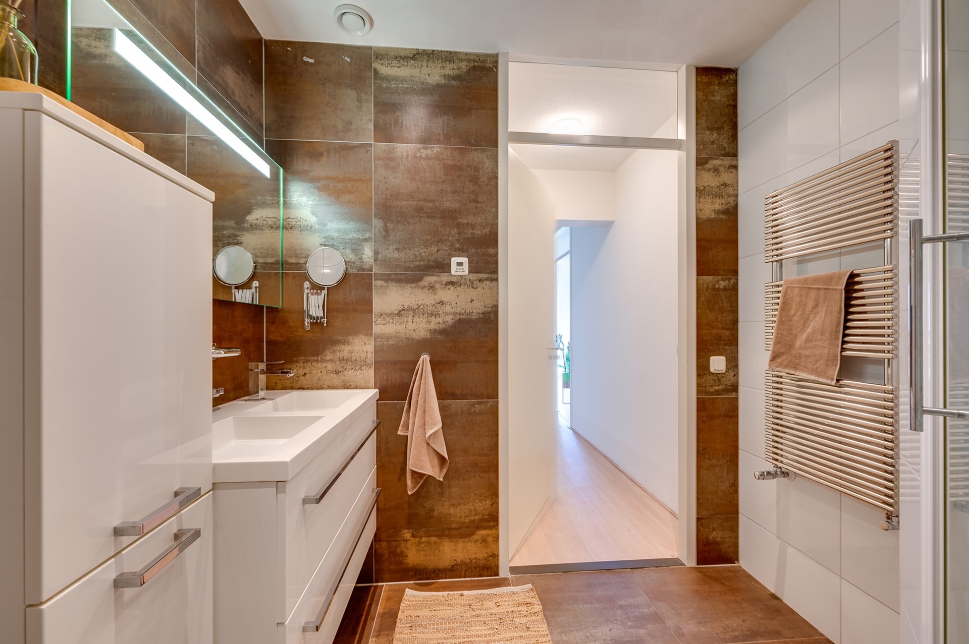 Badkamervoorzieningen Douche, Dubbele wastafel, Vloerverwarming, Wasmachineaansluiting