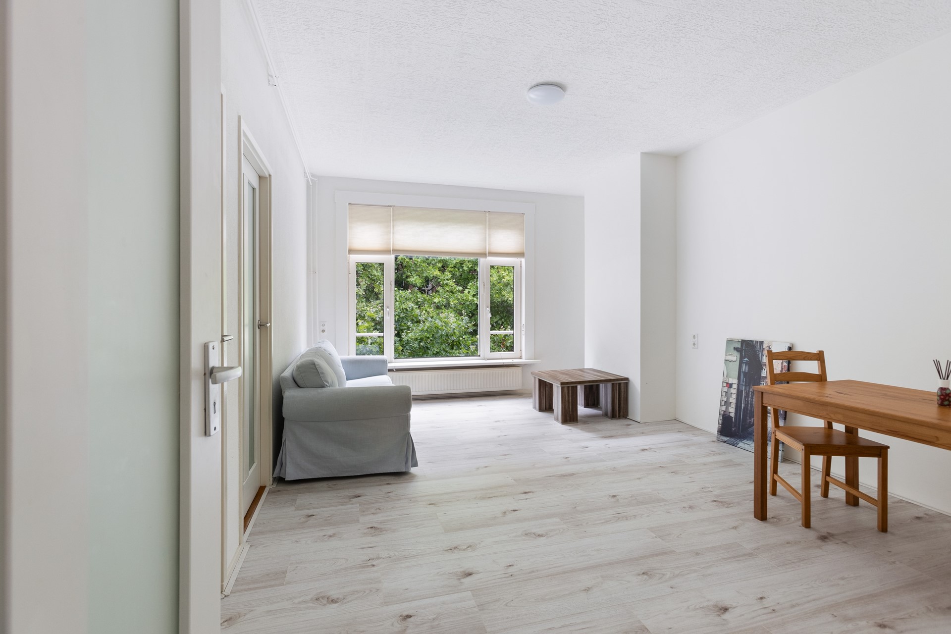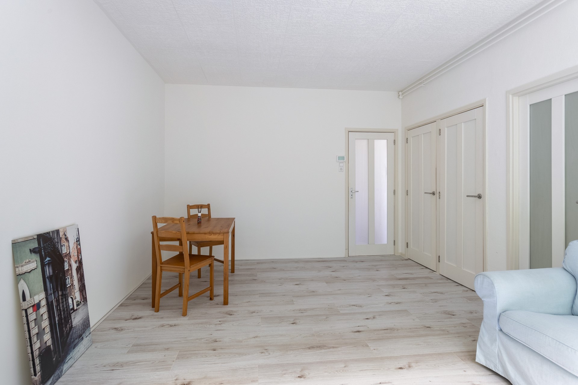 De ruime woonkamer biedt genoeg plek voor een gezellige zithoek én een knusse eettafel – ideaal voor lange borrelavonden of gewoon om na je werk even lekker te relaxen. Dankzij de slimme indeling voelt het appartement van ongeveer 60 m² verrassend ruim aan.