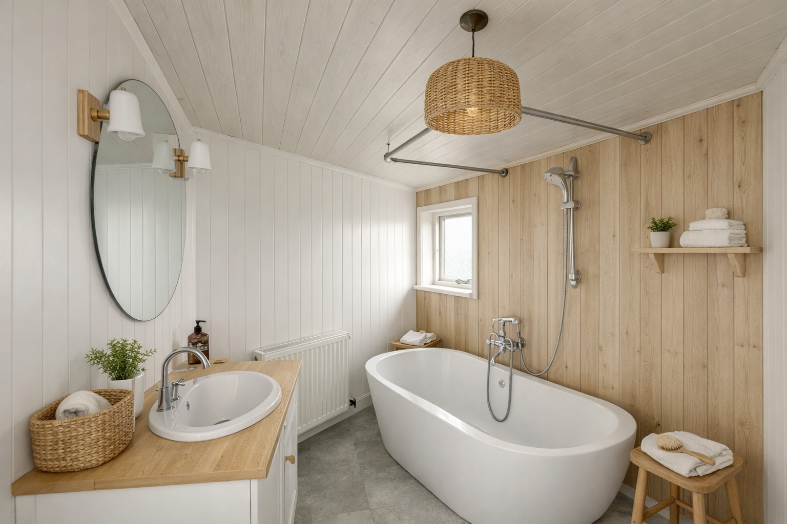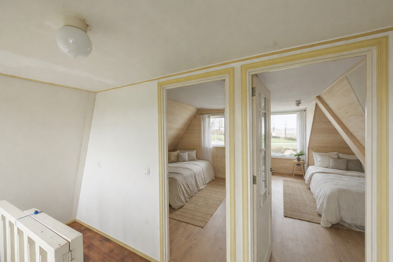 Via de hal met toilet kom je in de sfeervolle woonkamer met een mooie schouw, een hoog balkenplafond en een prachtig wijds uitzicht. De keuken is gesloten, maar die kun je bij de woonkamer betrekken. Op de begane grond is er ook een slaapkamer en een badkamer met een ligbad en een wastafelmeubel. Levensloopbestendig dus.