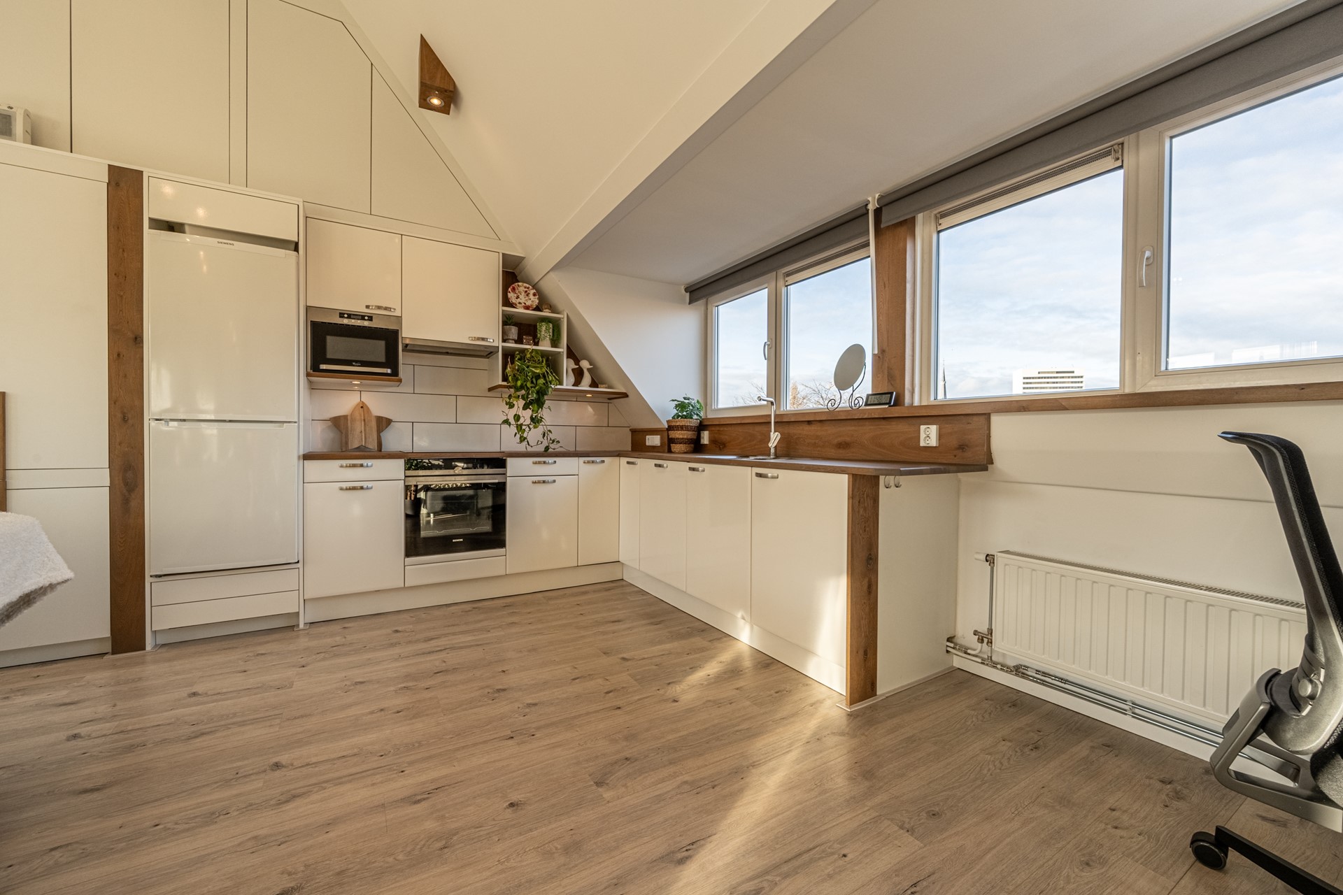 Daarnaast staat Schiedam bekend om haar klassieke Nederlandse windmolens – een uniek onderdeel van het stadsbeeld – die vanaf de tweede verdieping van de woning zelfs te bewonderen zijn.