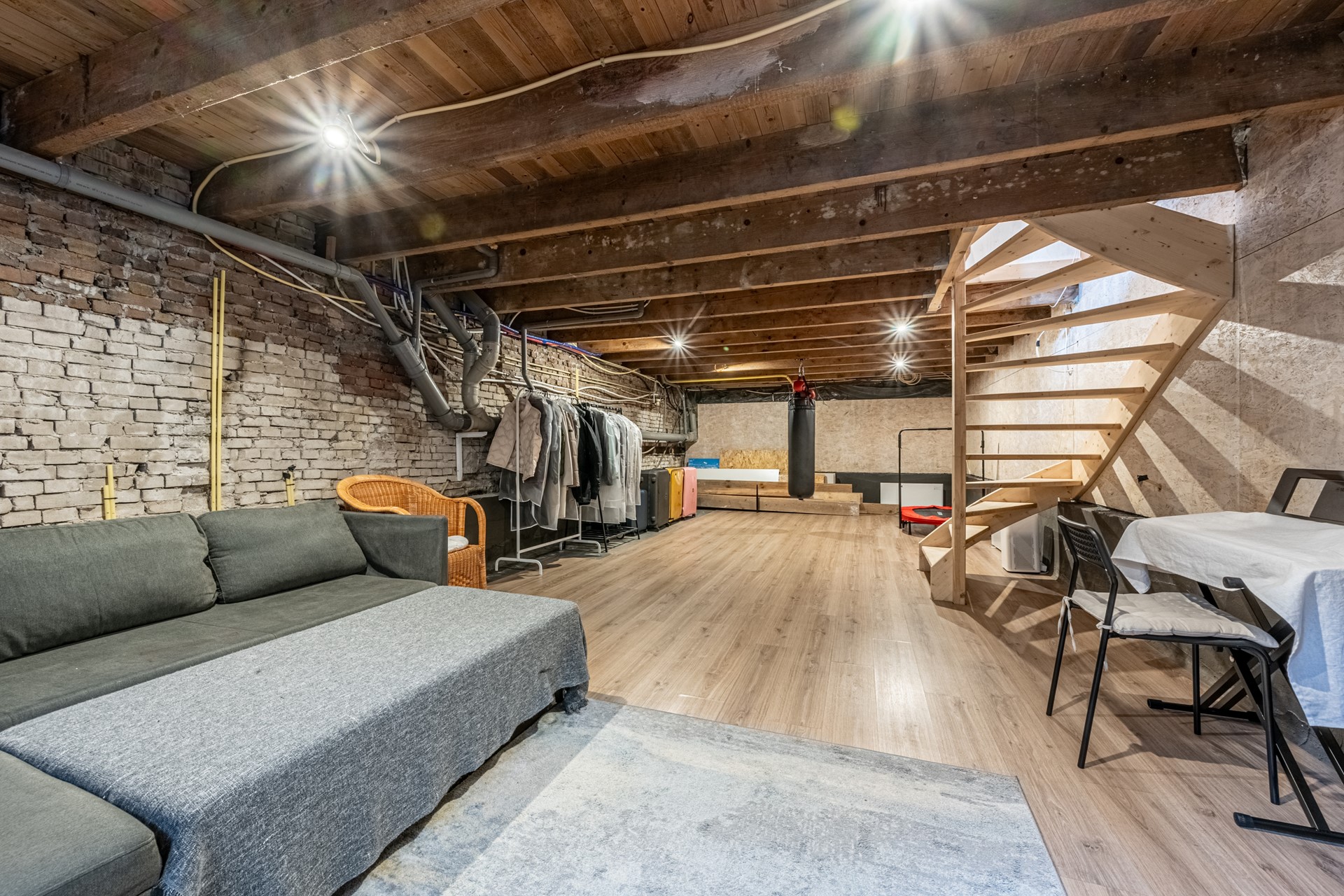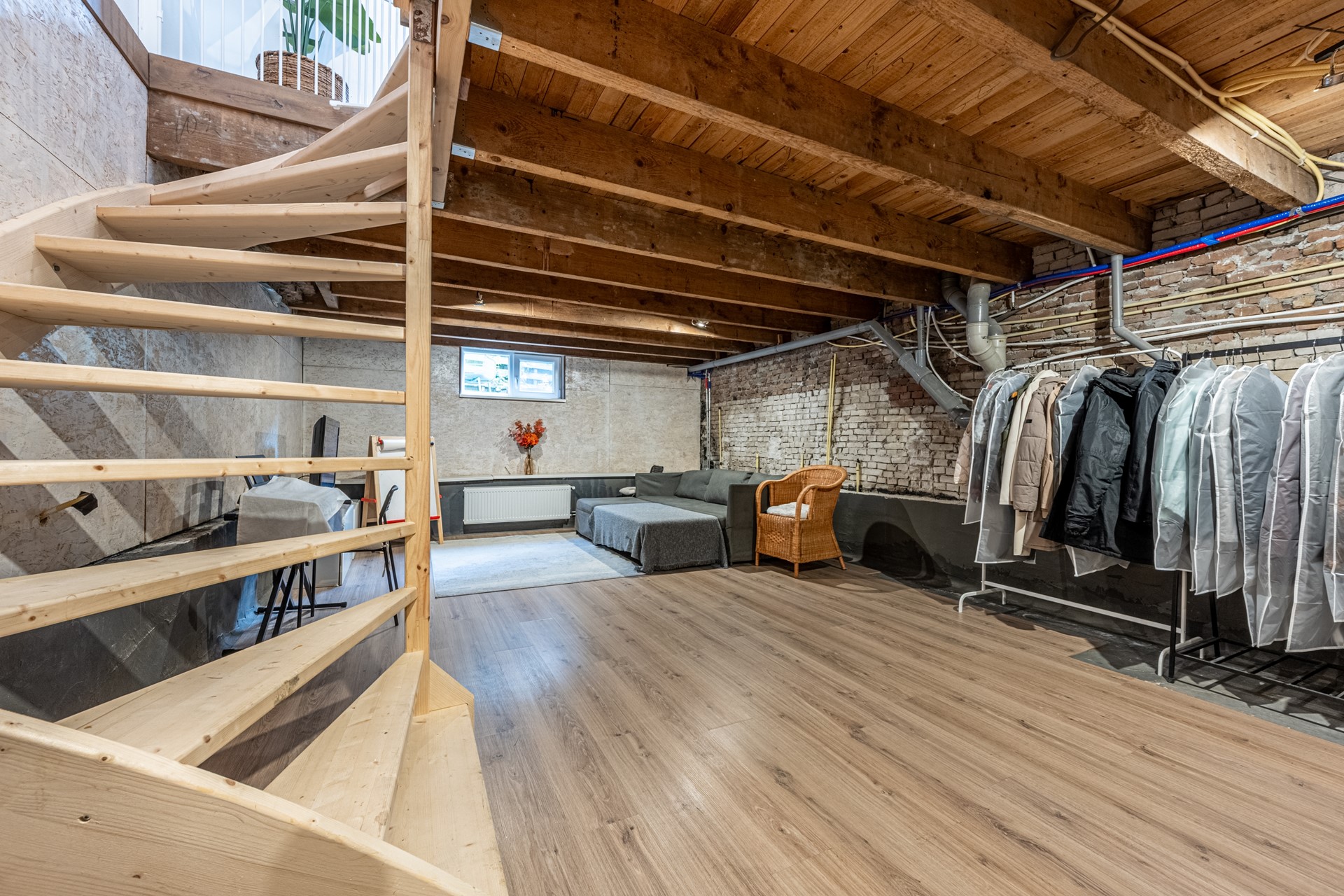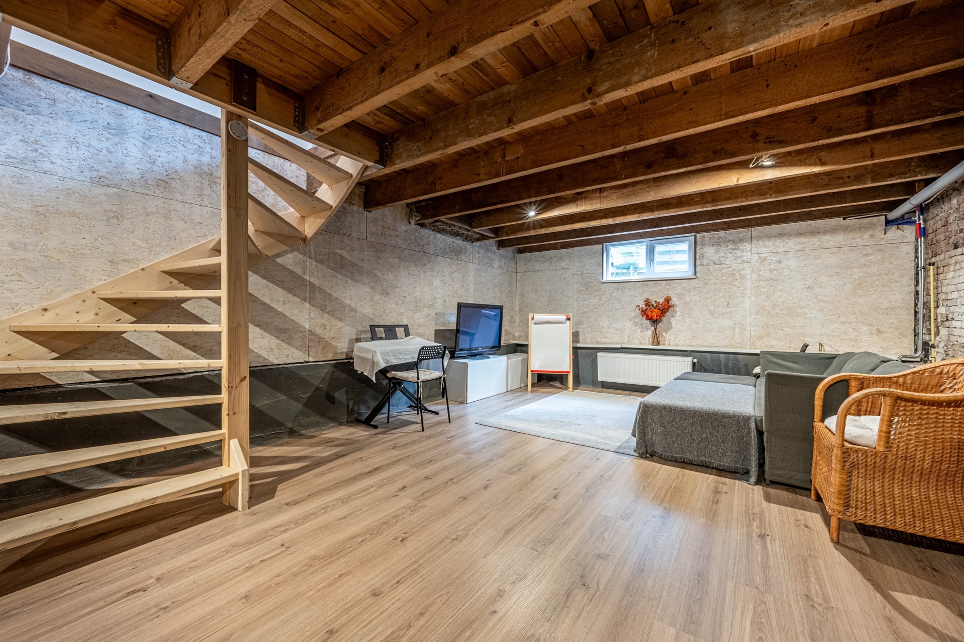 With a ceiling height of 2.14 meters, this is far more than just a basement — it is a full-fledged additional living level. Ideal as a bedroom, gym, studio, playroom… the possibilities are endless. The space is watertight and equipped with a window frame and laminate flooring.
