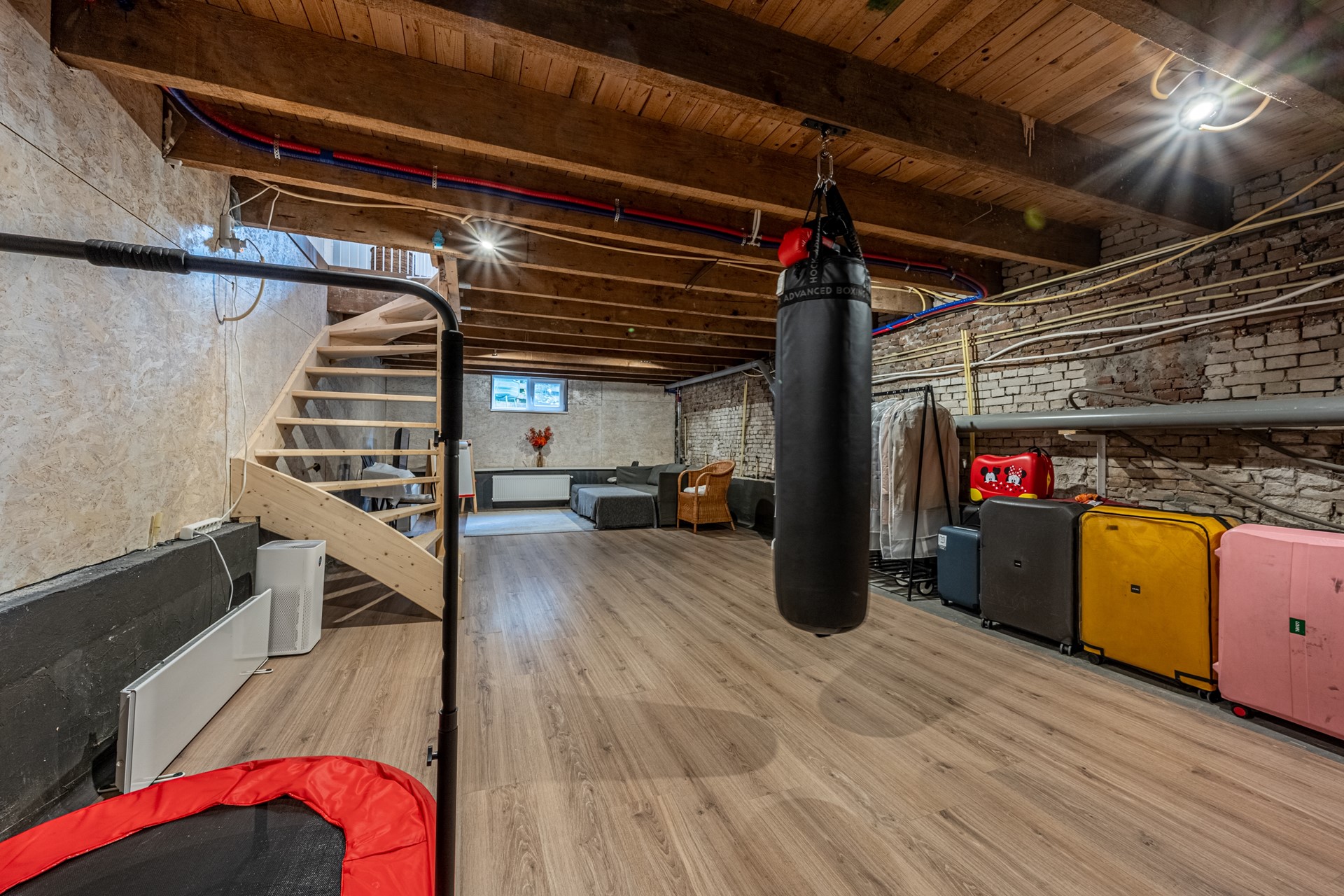 Met 2,14 meter hoogte is dit geen gewone kelder, maar een volwaardige extra verdieping die je volledig naar wens kunt inrichten: slaapkamer, gym, studio, speelruimte… alles kan. De ruimte is waterdicht afgewerkt en voorzien van kozijn en laminaatvloer.