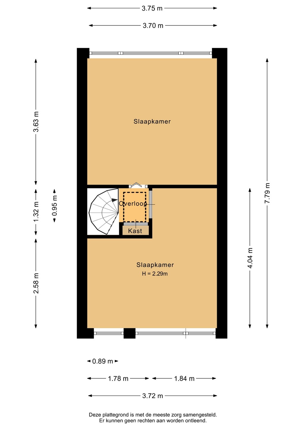 Voor de afmetingen en indeling, zie de plattegrond.
