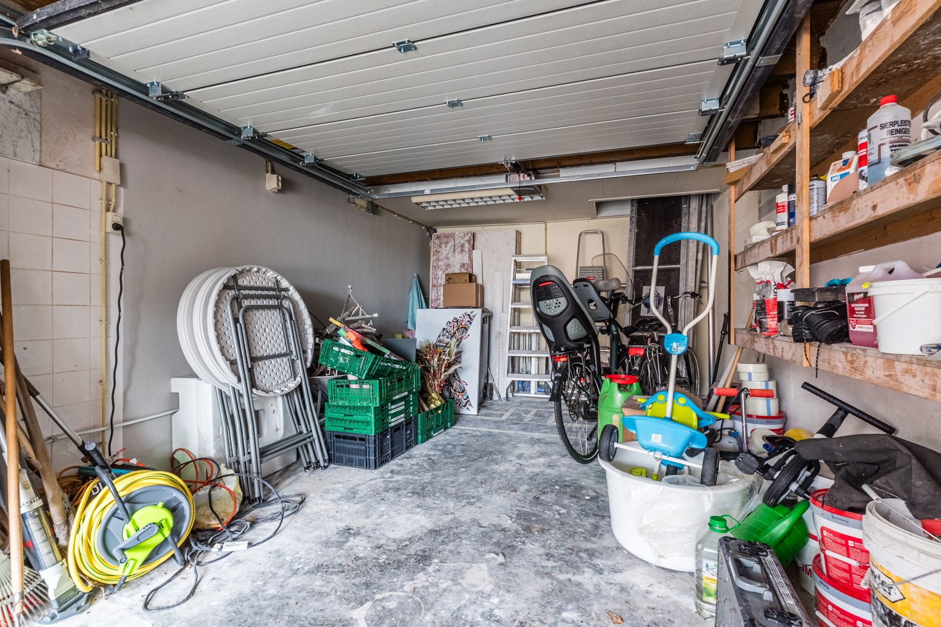 Via de keuken bereik je de bijkeuken, met aansluitpunten voor witgoed en plaats voor een extra koelkast. Vervolgens kom je in de royale aanbouw, uitgerust met grote glaspartijen, een schuifdeur richting de woonkamer en een airco-installatie. Dankzij de hoeveelheid daglicht en de directe toegang tot de tuin is deze ruimte geschikt als speelkamer, werkruimte of tweede leefruimte.