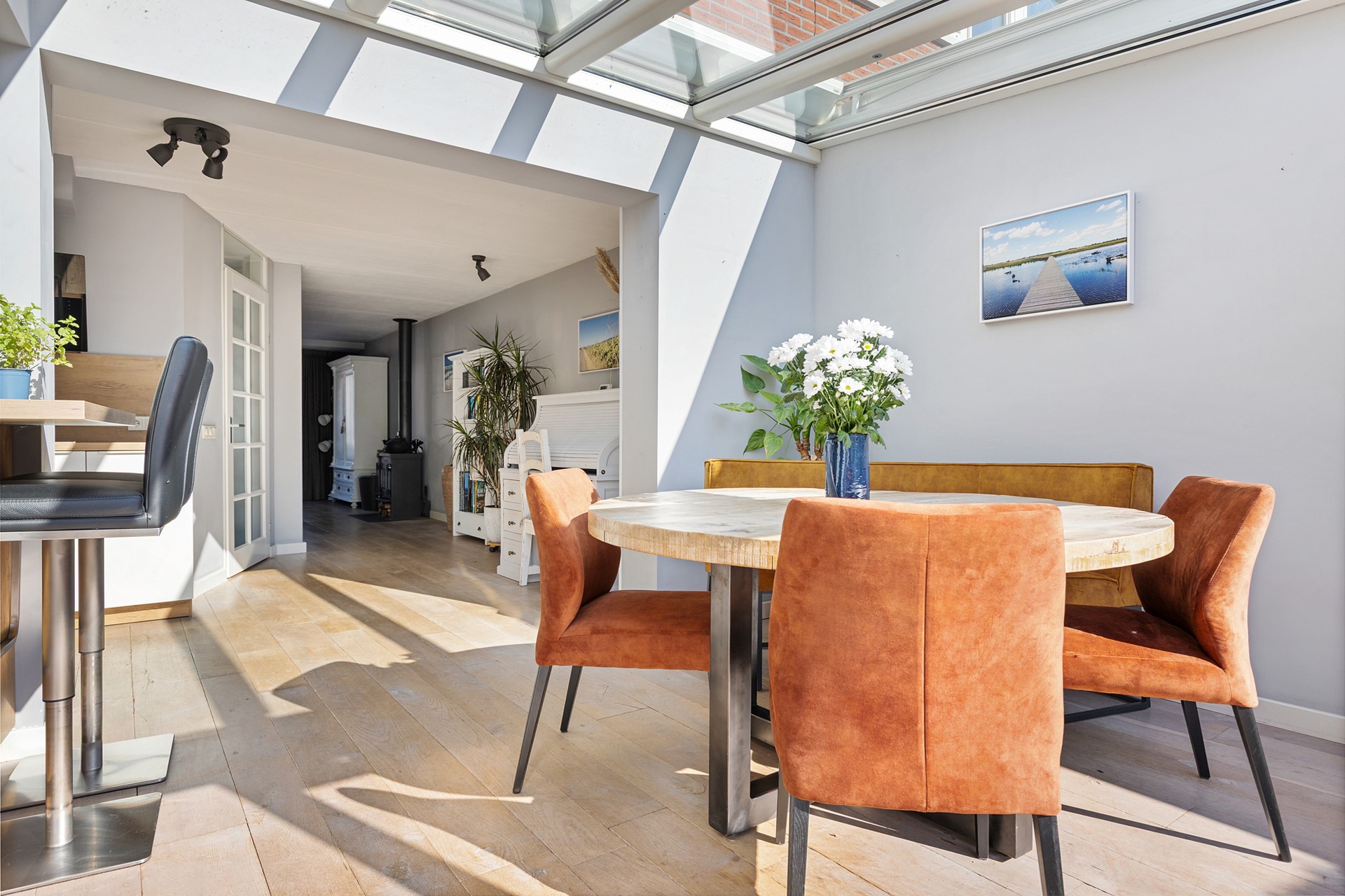 De woning ligt aan een groene en rustige straat met eigen oprit en een zonnige, omheinde tuin op het zuidwesten. De moderne keuken, de unieke geïsoleerde serre met glazen dak, en de sauna met buitendouche maken dit huis tot een heerlijk thuis waar binnen- en buitenleven samenkomen.