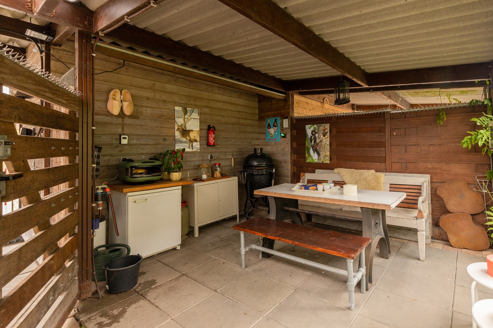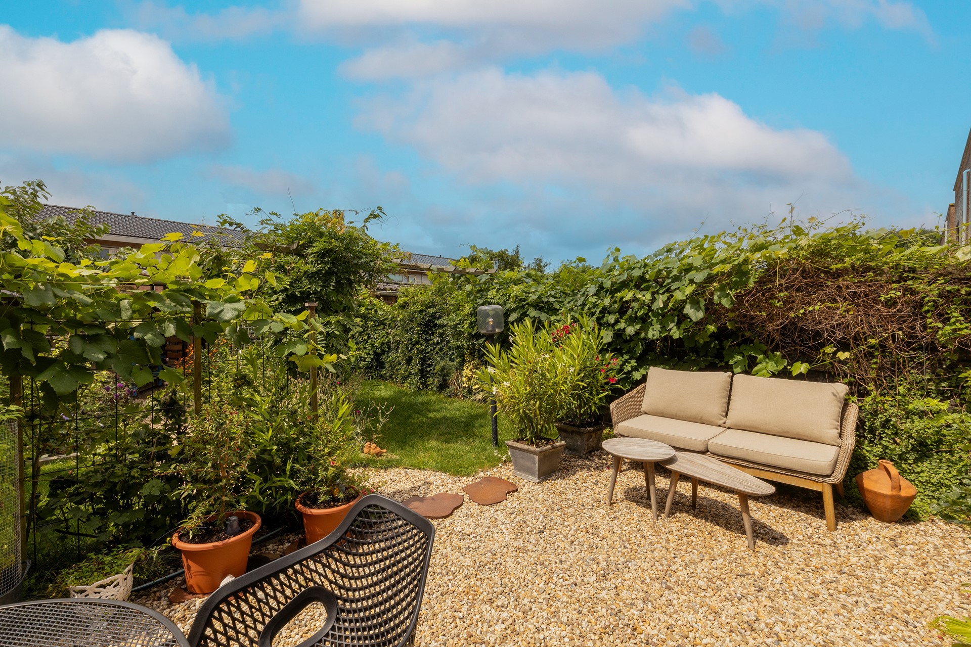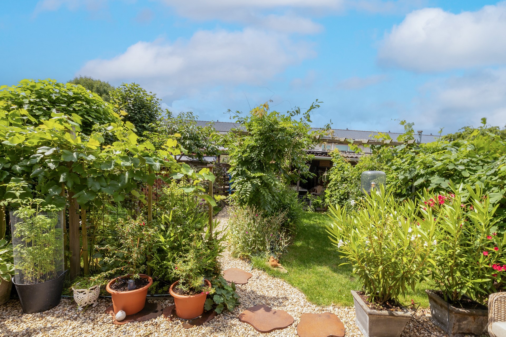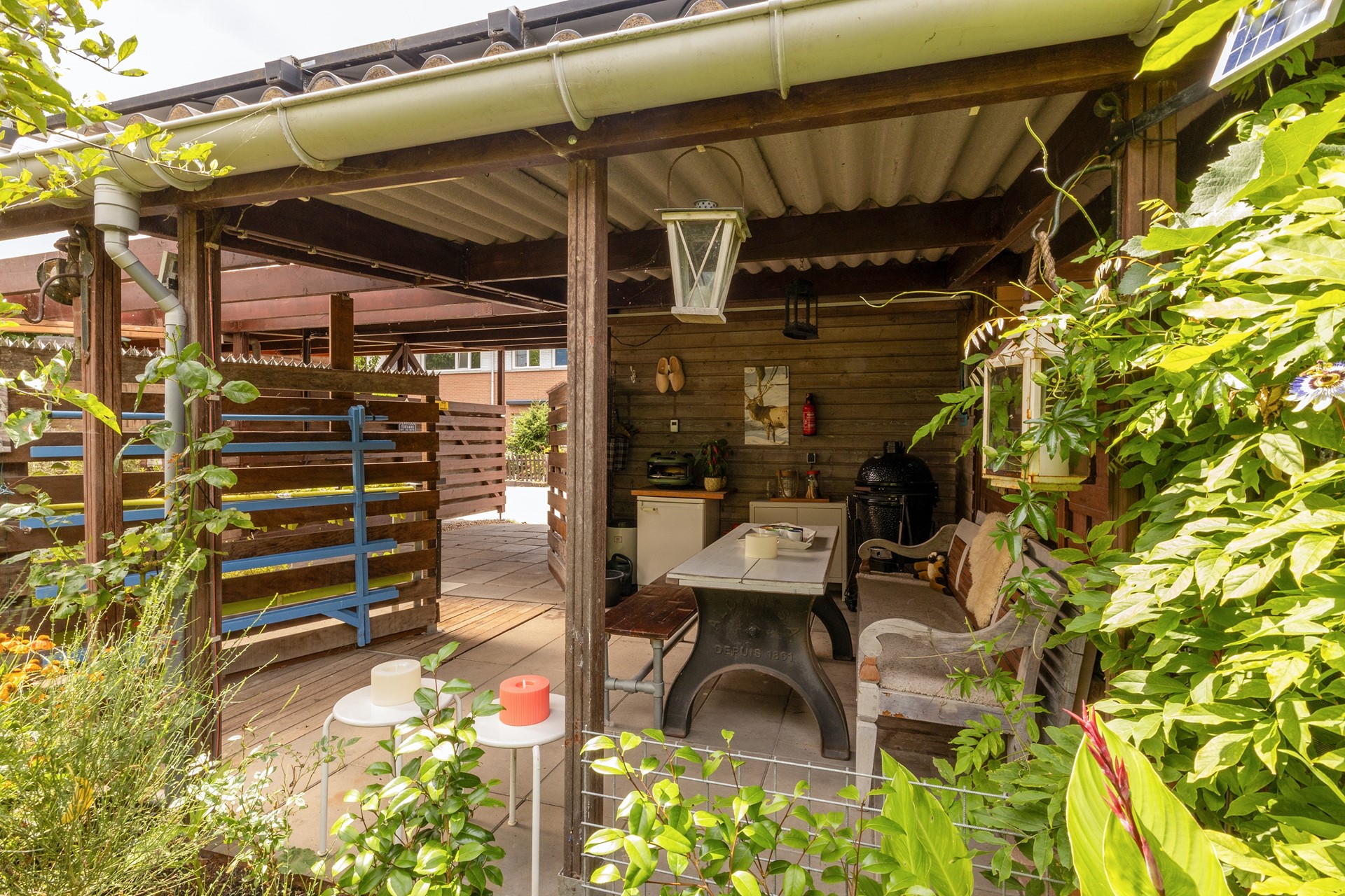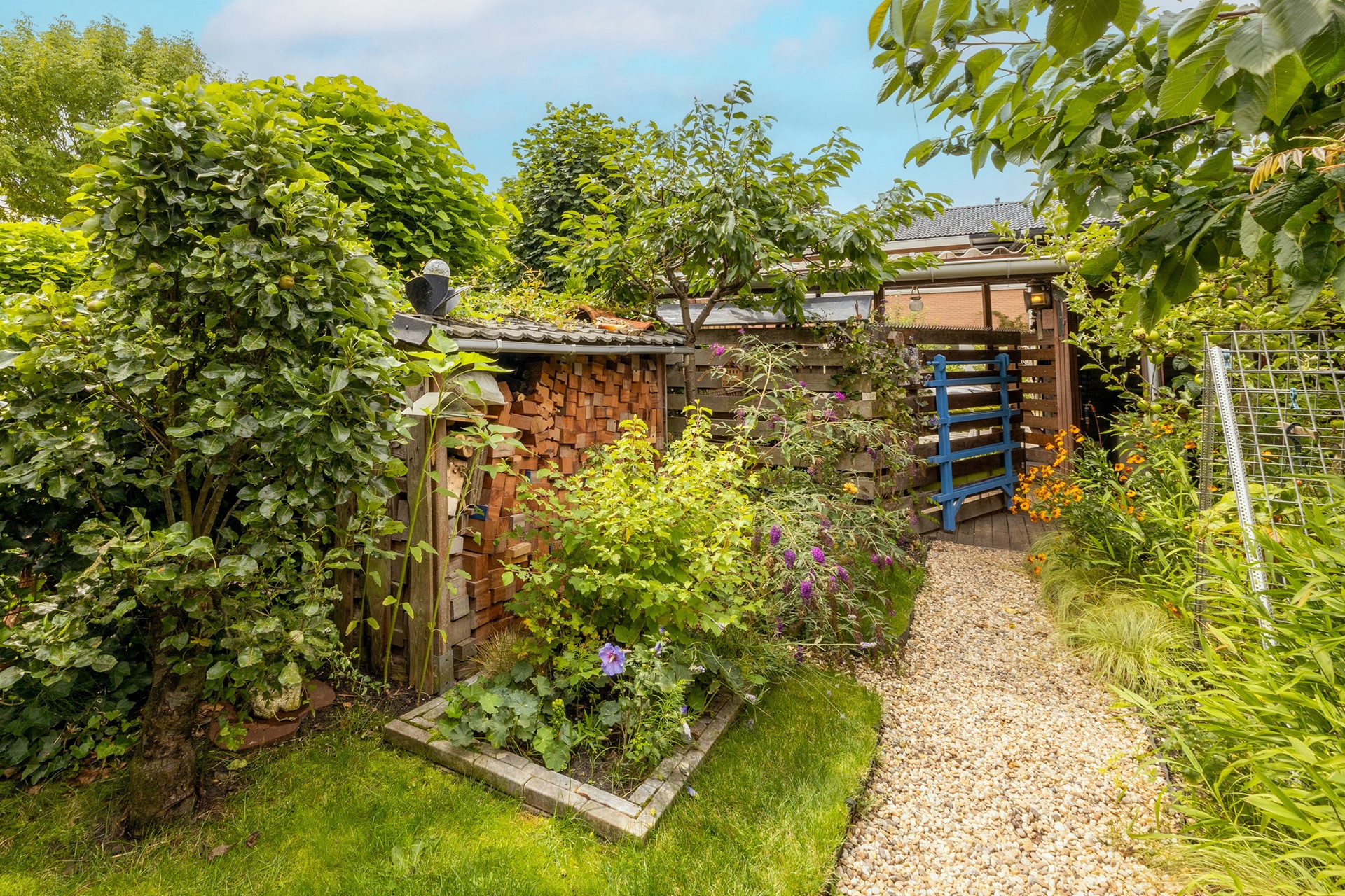 Tijd om alle pluspunten in en om de tuin te bekijken. Het is fantasievol en mooi ontworpen. Heel veel privacy (onderheid terras), veel groen zowel in de tuin zelf als in diverse potten, gezellige zitjes in het grind of op het stukje gazon, een pergola en ook nog een ruime overkapping voor de lounchebank en een ‘achterom’ met een eigen overdekte parkeerplek. Er liggen maar liefs 26 zonnepanelen op deze overkapping, met bovendien een oplaadvoorziening voor de elektrische auto. Verder nog plaats genoeg in de afgesloten berging voor de fiets, de hobbyspullen of de bbq. Werkelijk aan alle wensen kan worden voldaan in deze complete nette woning. Neem gerust contact met ons op voor meer informatie of voor een vrijblijvende bezichtiging.