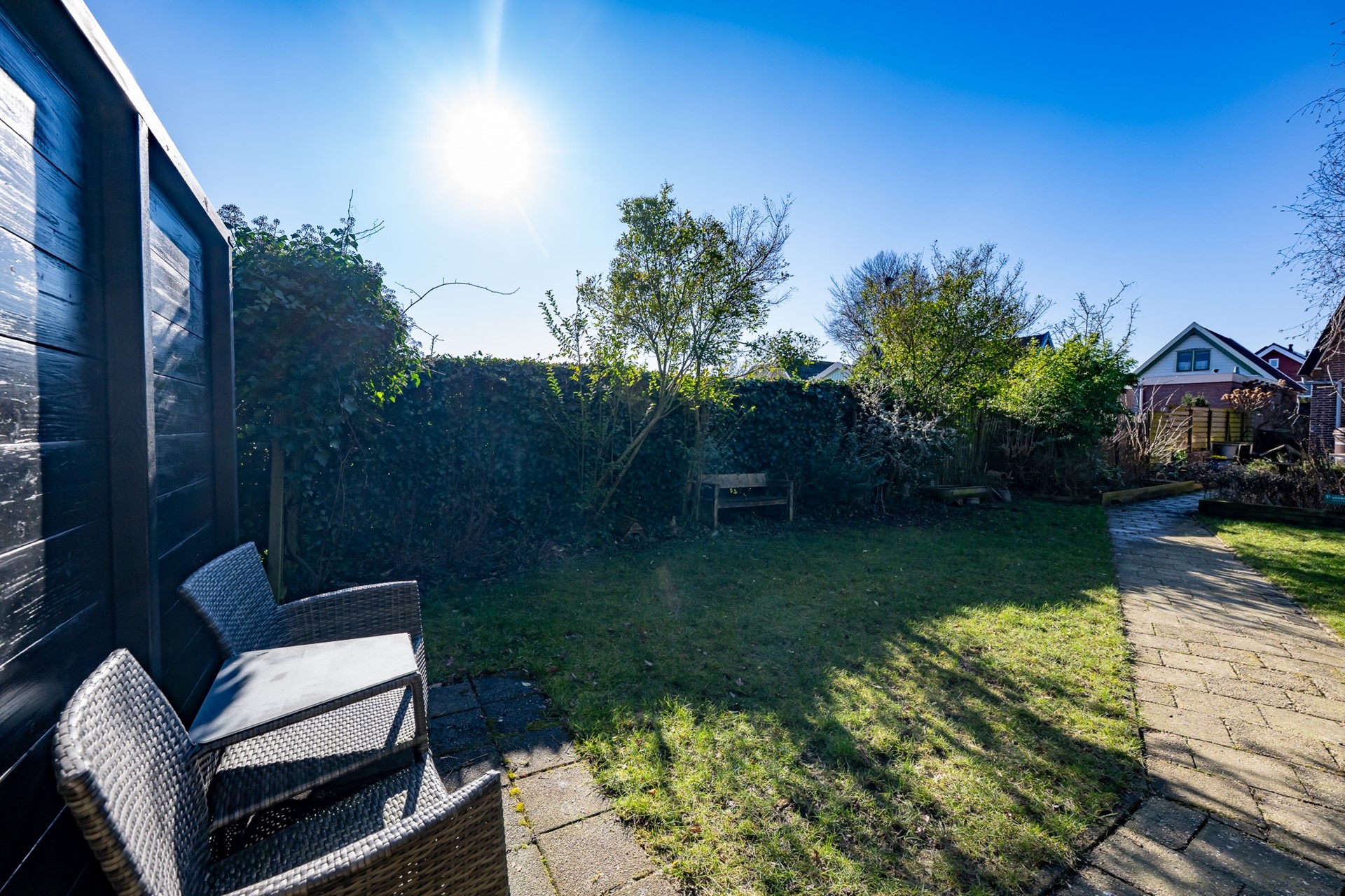 Het perceel van 570 m² biedt volop ruimte en privacy. De tuin is een heerlijke plek om te ontspannen, te spelen of te werken. Achterin de tuin bevindt zich een ruim terras met hout gestookte hottub, een fantastische plek om het hele jaar door te genieten.