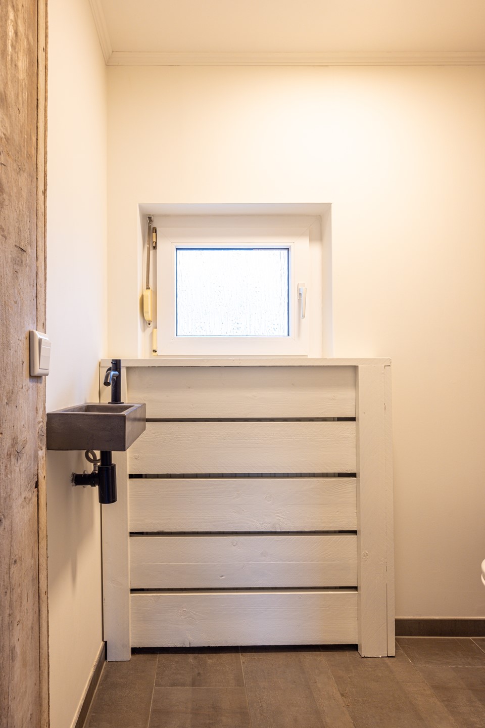 Op deze verdieping bevindt zich bovendien een tweede toilet. Dit toilet is uitgevoerd met een zwevend closet en een fonteintje, wat extra gemak biedt in het dagelijks gebruik.