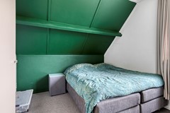 Op de tweede verdieping is de vierde slaapkamer met een vaste trap bereikbaar en heeft daarnaast extra bergruimte op de overloop.