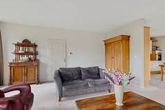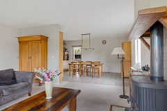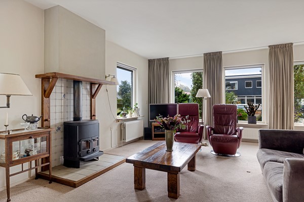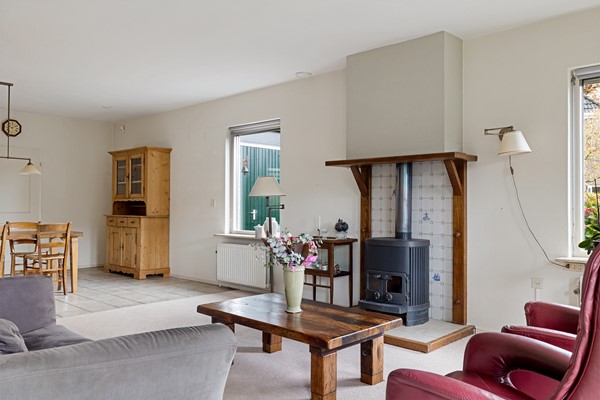 De hoekligging met extra zijramen zorgt voor veel lichtinval in de woning. De woonkamer vind je aan de straatzijde. Aan de muur is een schouw met een houtkachel geplaatst. Vanuit je luie stoel kun je heerlijk de straat in kijken.
