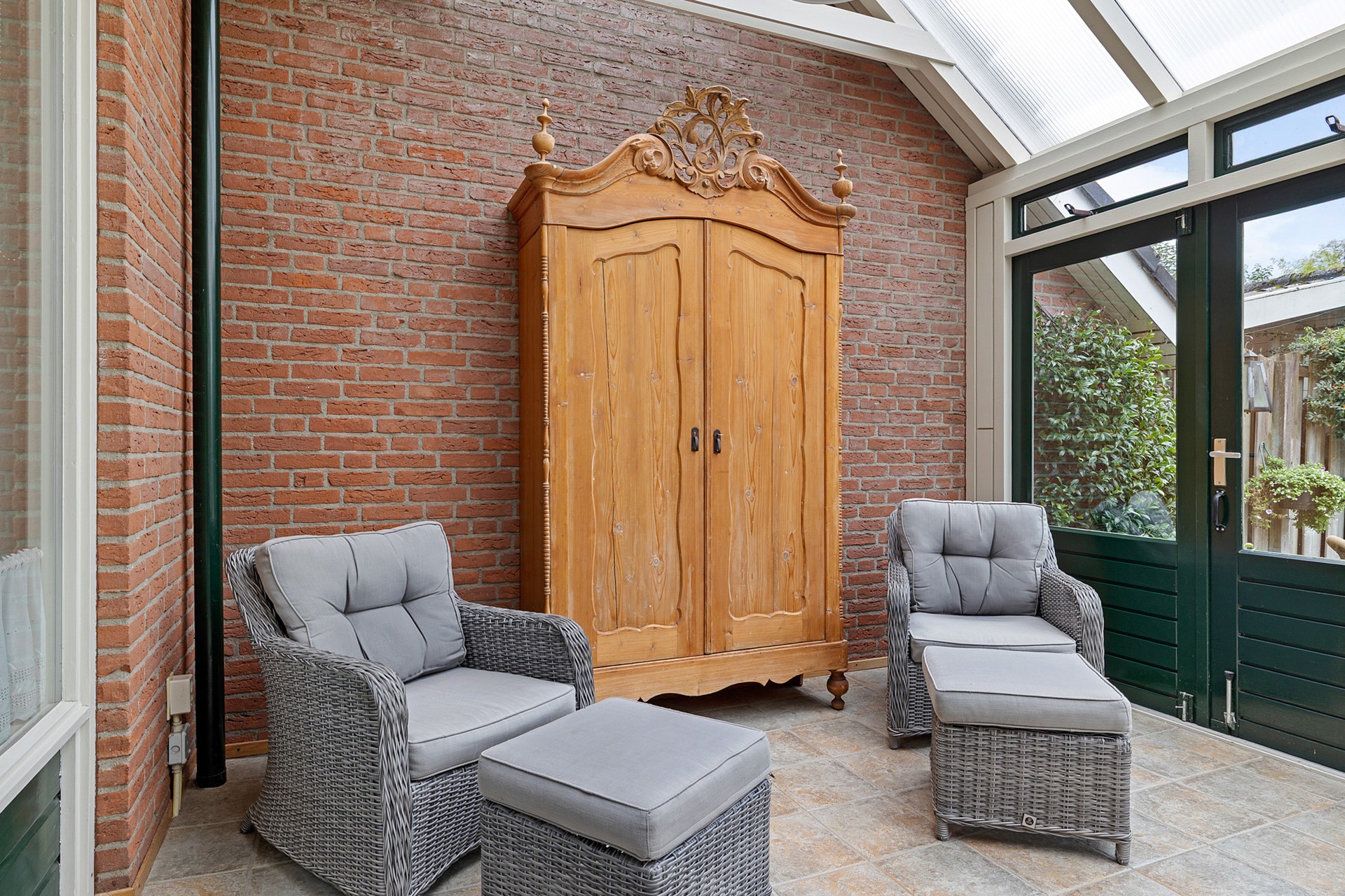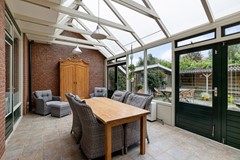 Een fijne lichte ruimte waar je snel kunt zitten. Niet alleen omdat er vloerverwarming aanwezig is, ook omdat je zicht hebt op de mooie achtertuin op het zuidoosten.