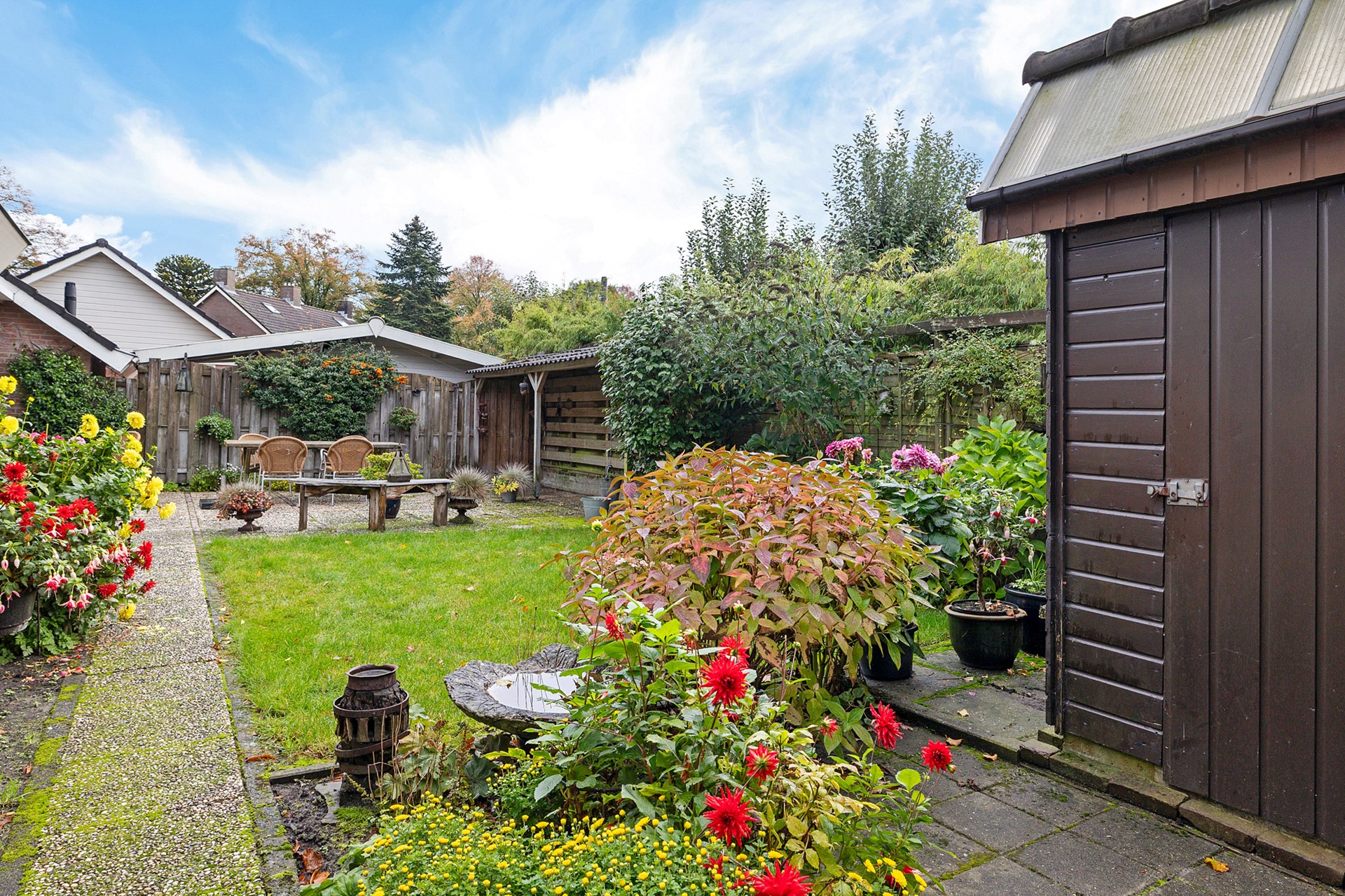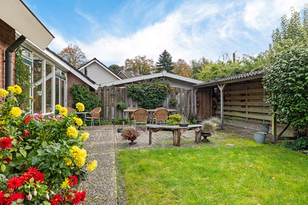 De tuin is voorzien van bestrating, gras en diverse beplanting. Er is een houten overkapping aanwezig voor houtopslag en een schuur voor je tuingereedschap. Wat je ook met de tuin wilt gaan doen, qua zonnige ligging zit je hier zeker goed.