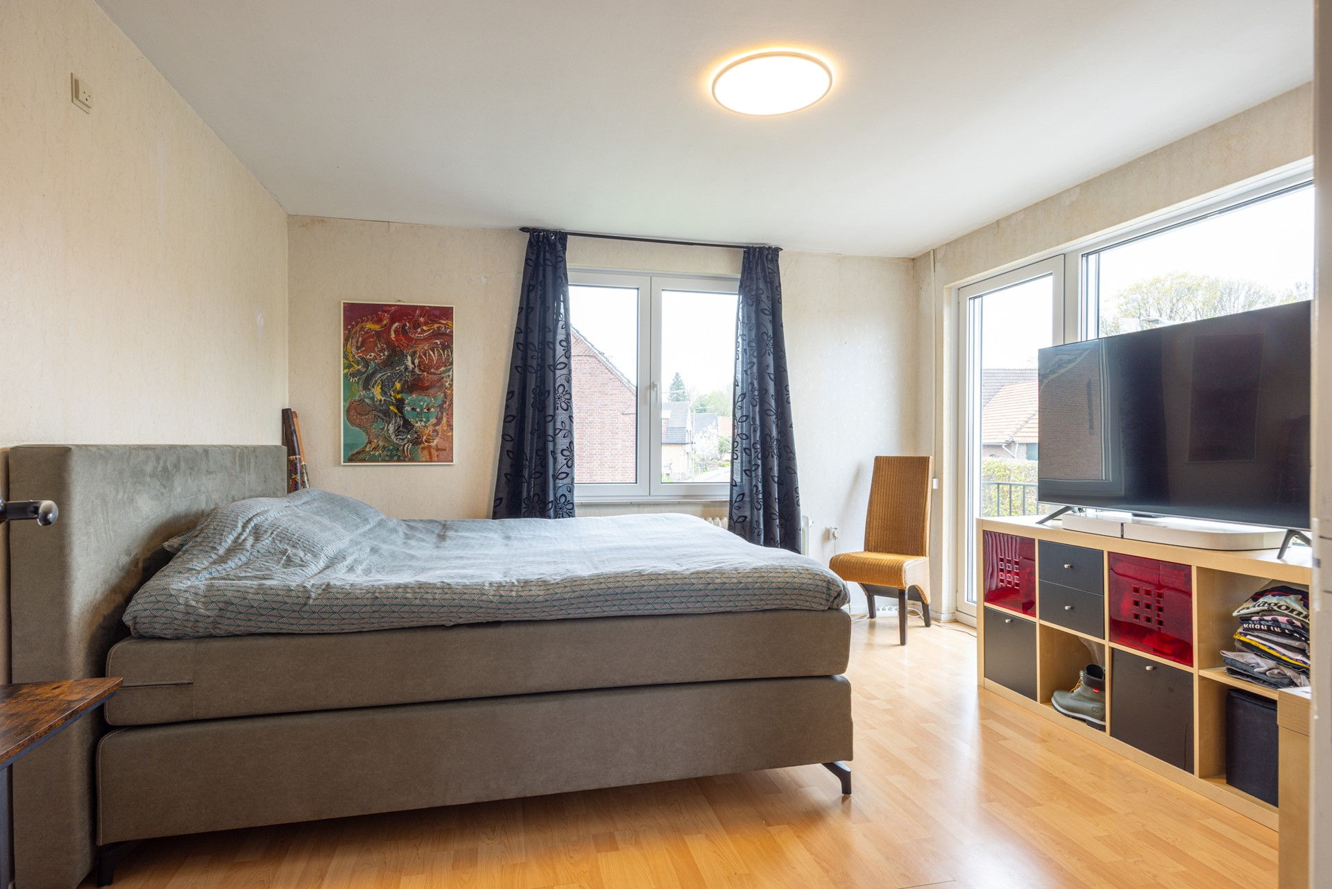 De master bedroom is gelegen aan de voorzijde van de woning en is voorzien van elektrische rolluiken en toegang tot het balkon aan de voorzijde, met uitzicht over de straatzijde.