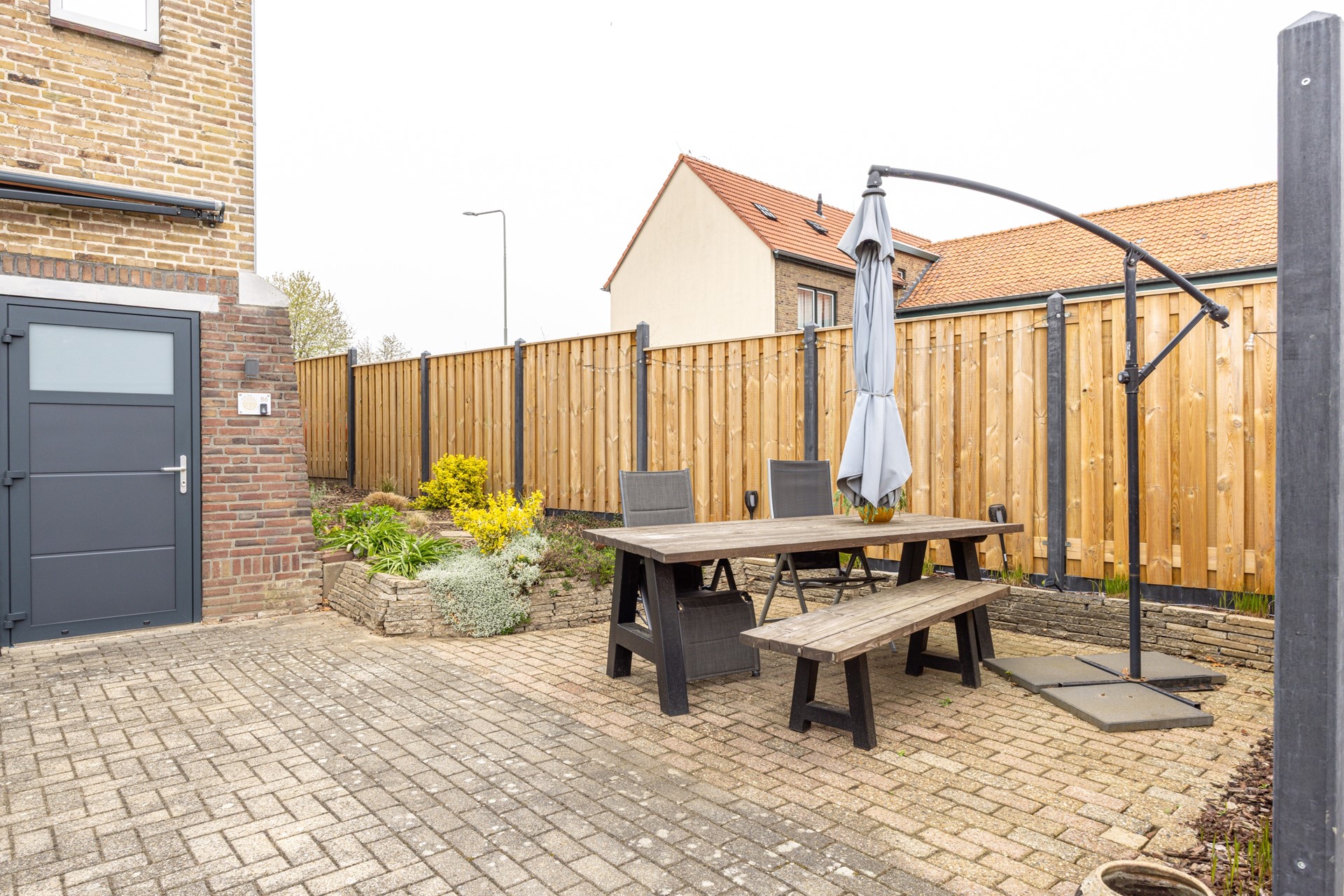 De achtertuin is ruim opgezet en sluit direct aan op het vrije uitzicht over het achtergelegen groen. Door de diepte en de ligging heb je hier volop ruimte om de tuin naar eigen wens in te richten, met verschillende plekken om te zitten of te gebruiken. De tuin is bereikbaar via een grote poort en is in juli 2025 voorzien van een nieuwe schutting, wat zorgt voor een nette en verzorgde afbakening van het perceel.