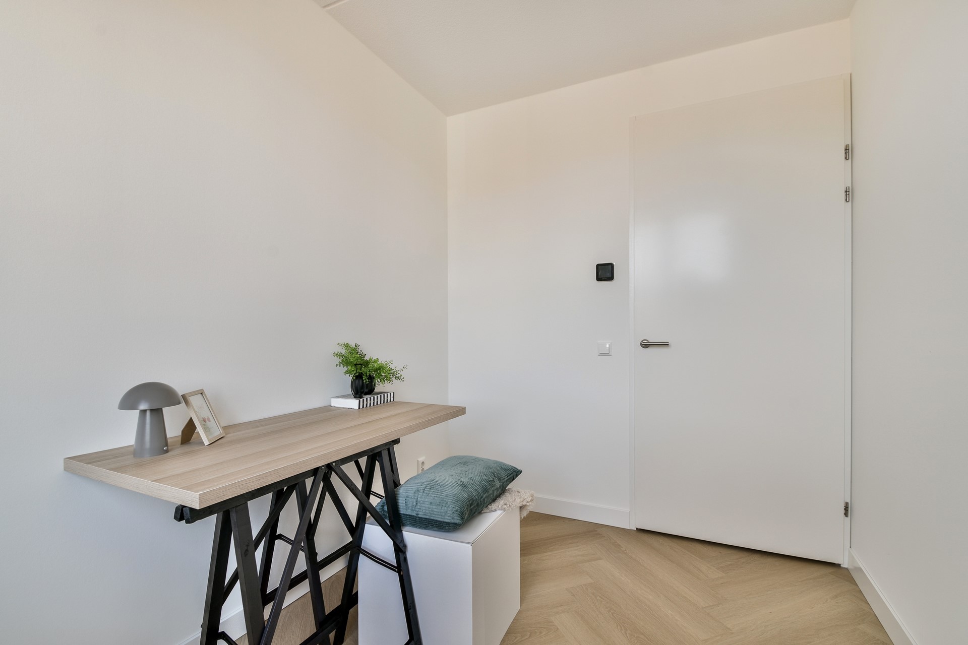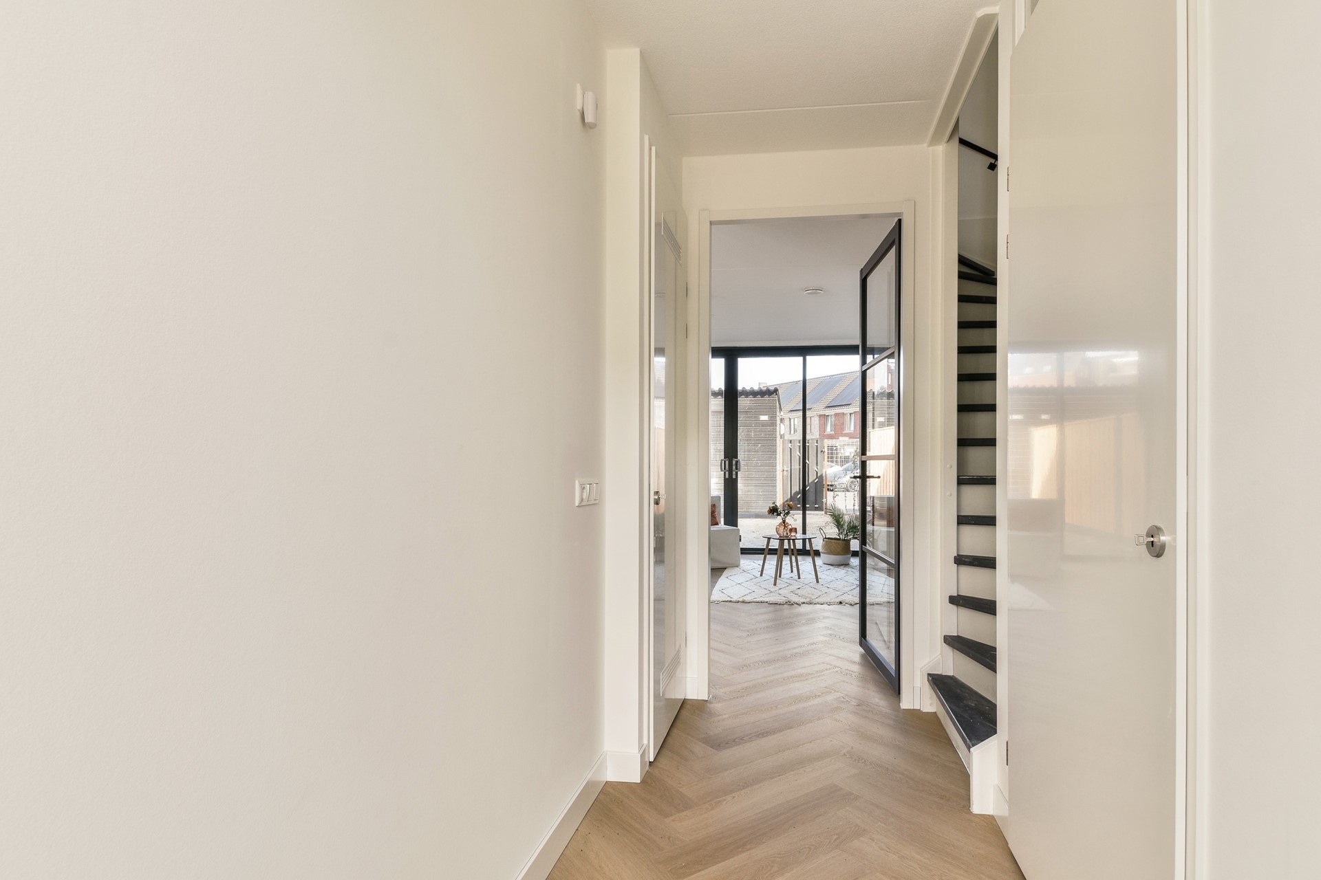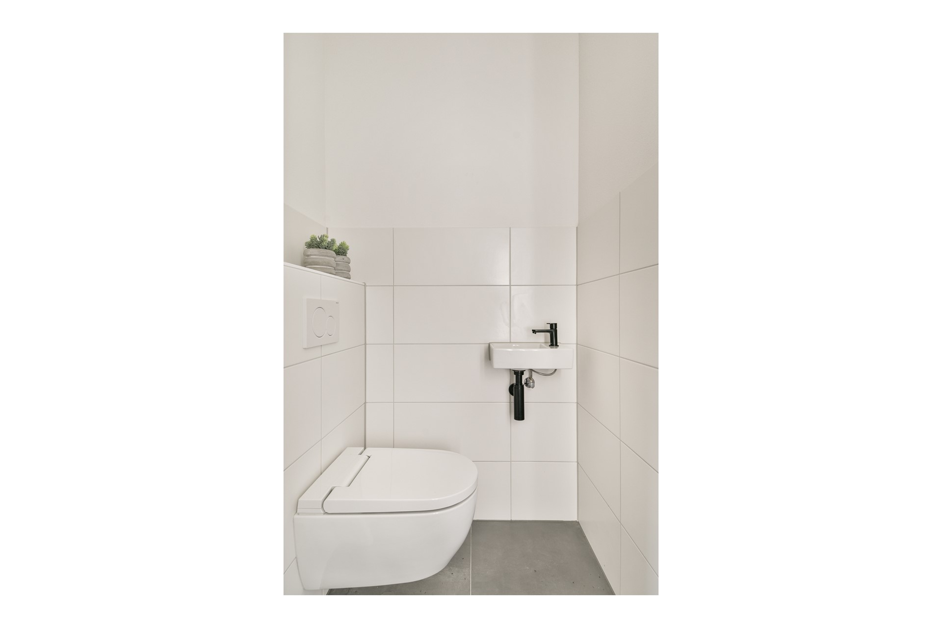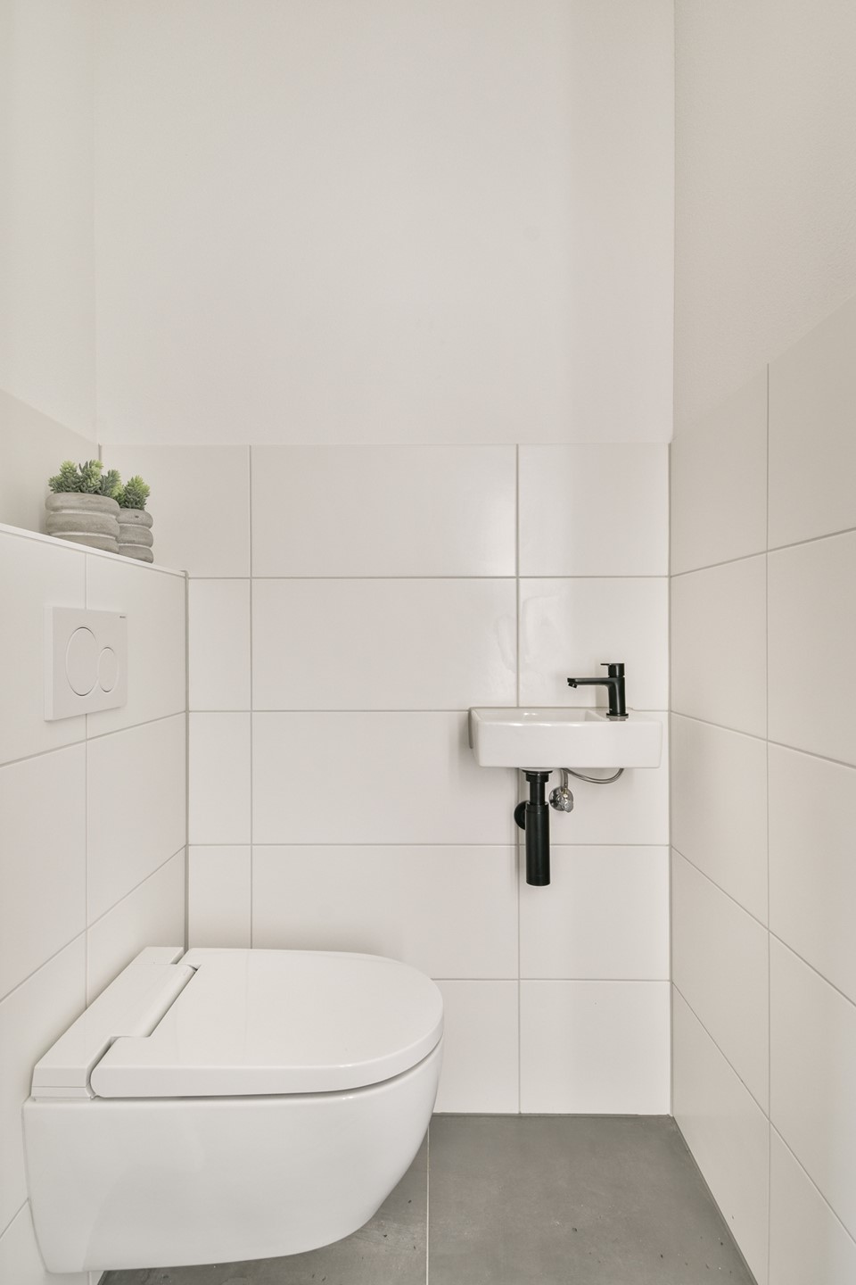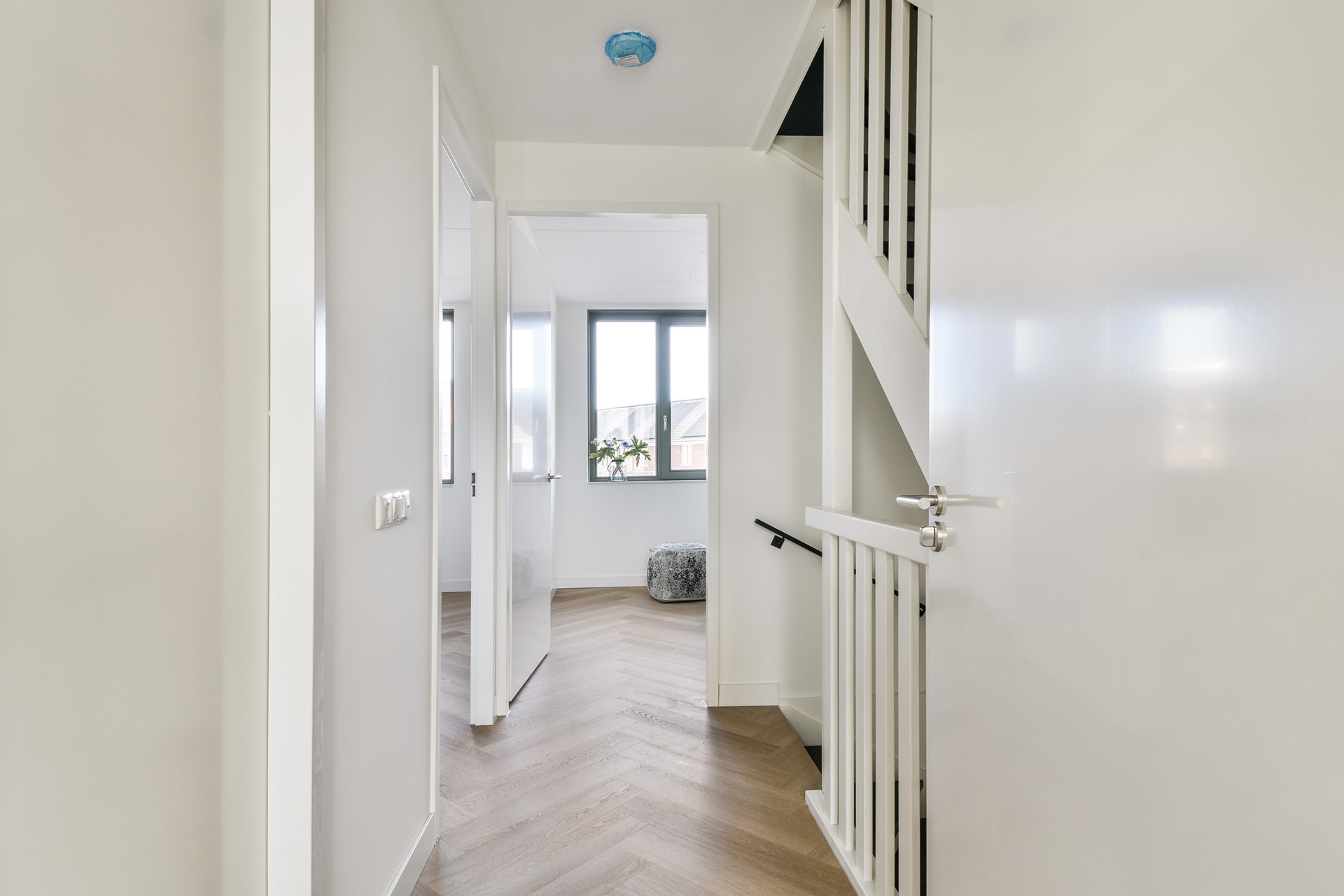 Bij binnenkomst word je verwelkomd in de lichte en moderne hal, die toegang biedt tot het toilet, de trapopgang, de woonkamer én een praktische berging. In deze berging bevindt zich de nieuwe warmtepomp, netjes weggewerkt maar goed bereikbaar. Alles in de woning is recent opgeleverd en volledig ongebruikt, waardoor je hier een frisse start maakt.