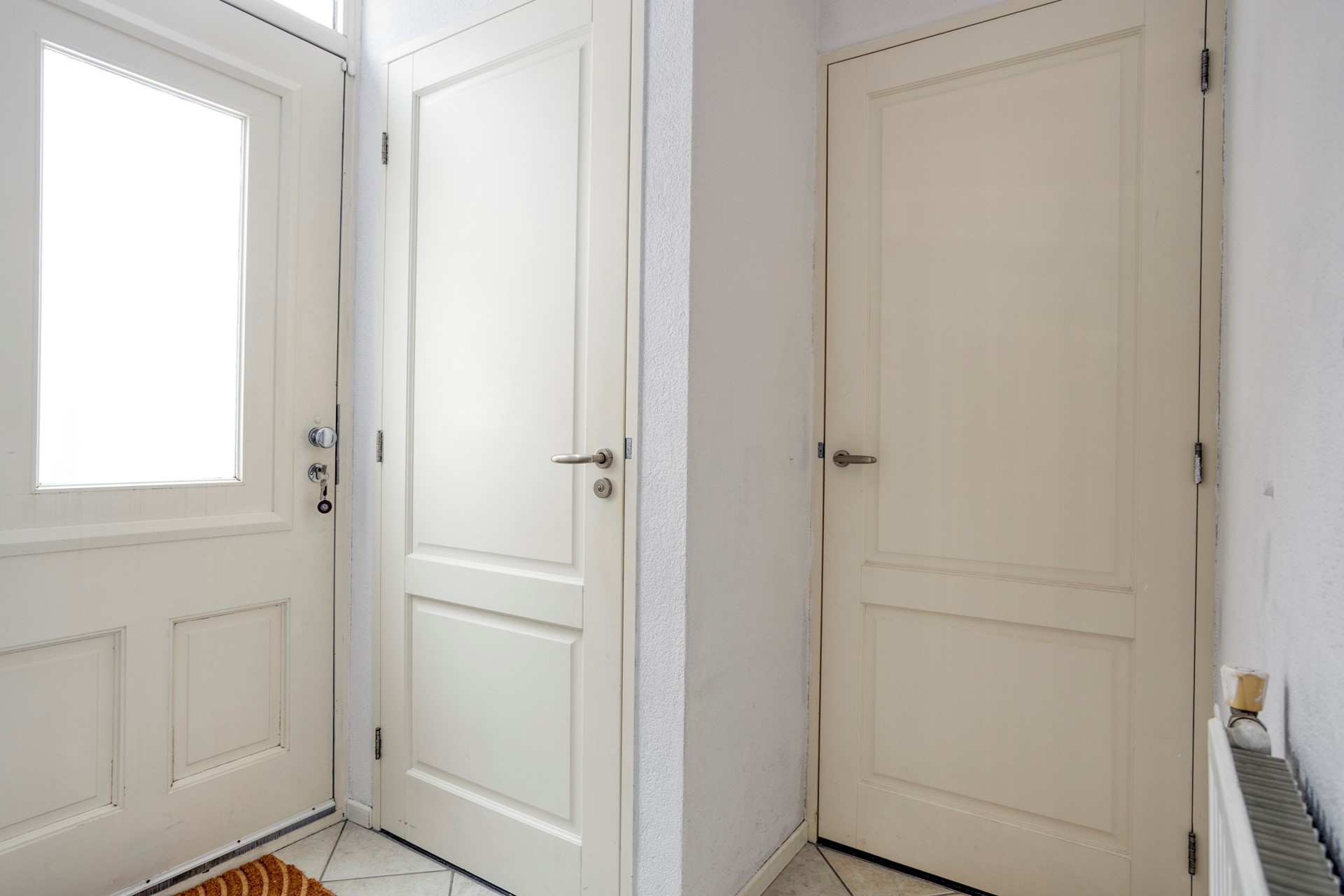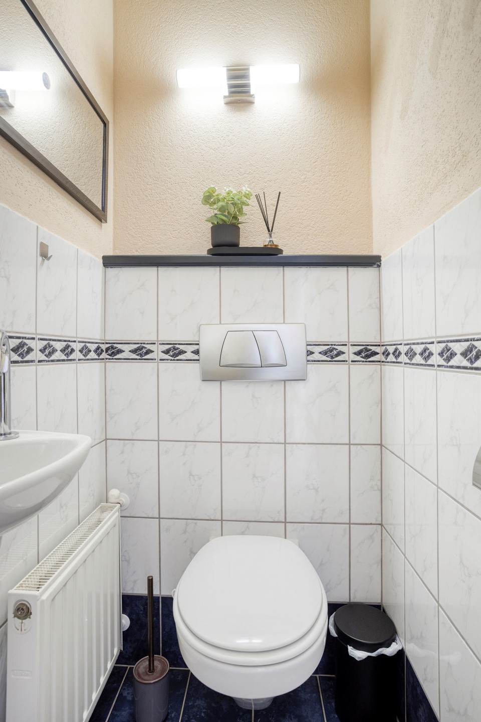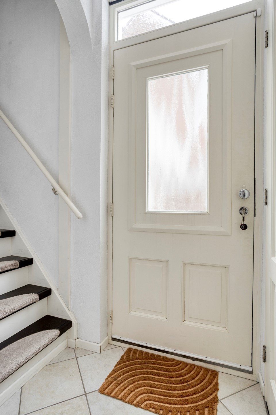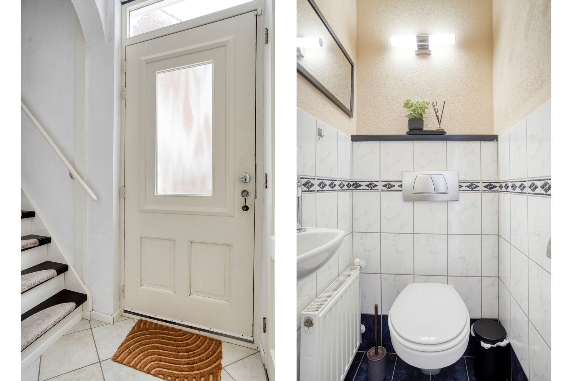 Via de verzorgde entree kom je in de hal met een nette tegelvloer, lichte wandafwerking en plafondafwerking. Hier bevinden zich de meterkast, het toilet en de trapopgang naar de eerste verdieping. Het toilet is voorzien van een fonteintje.