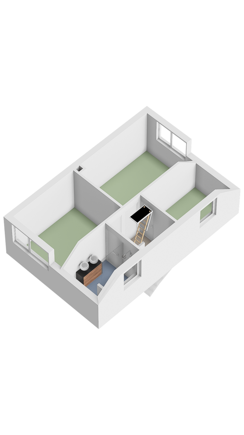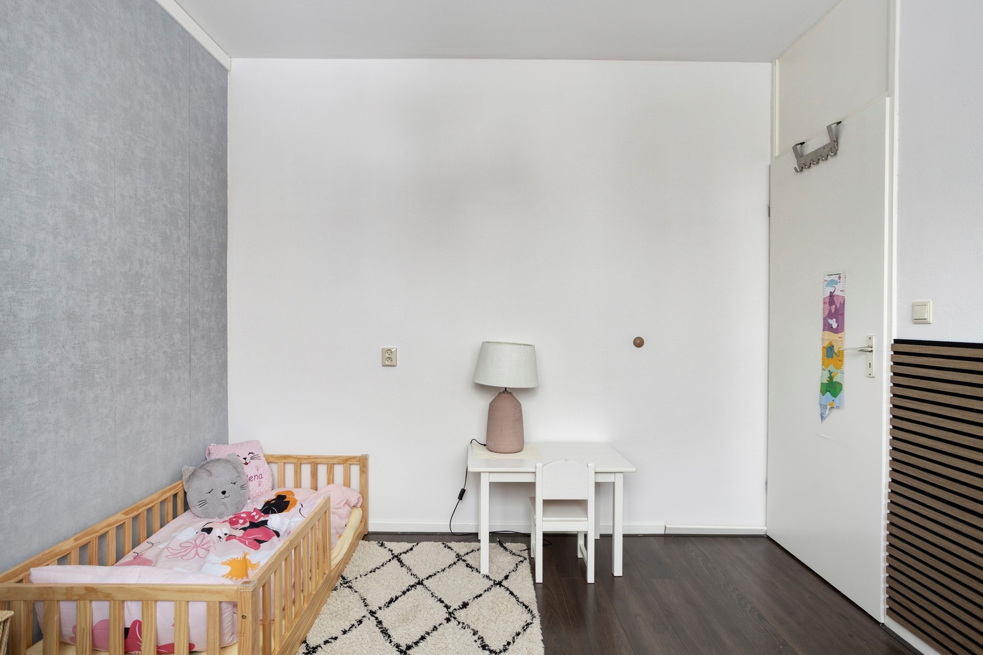 De overloop geeft toegang tot drie slaapkamers, allen keurig afgewerkt en voorzien van laminaatvloeren.