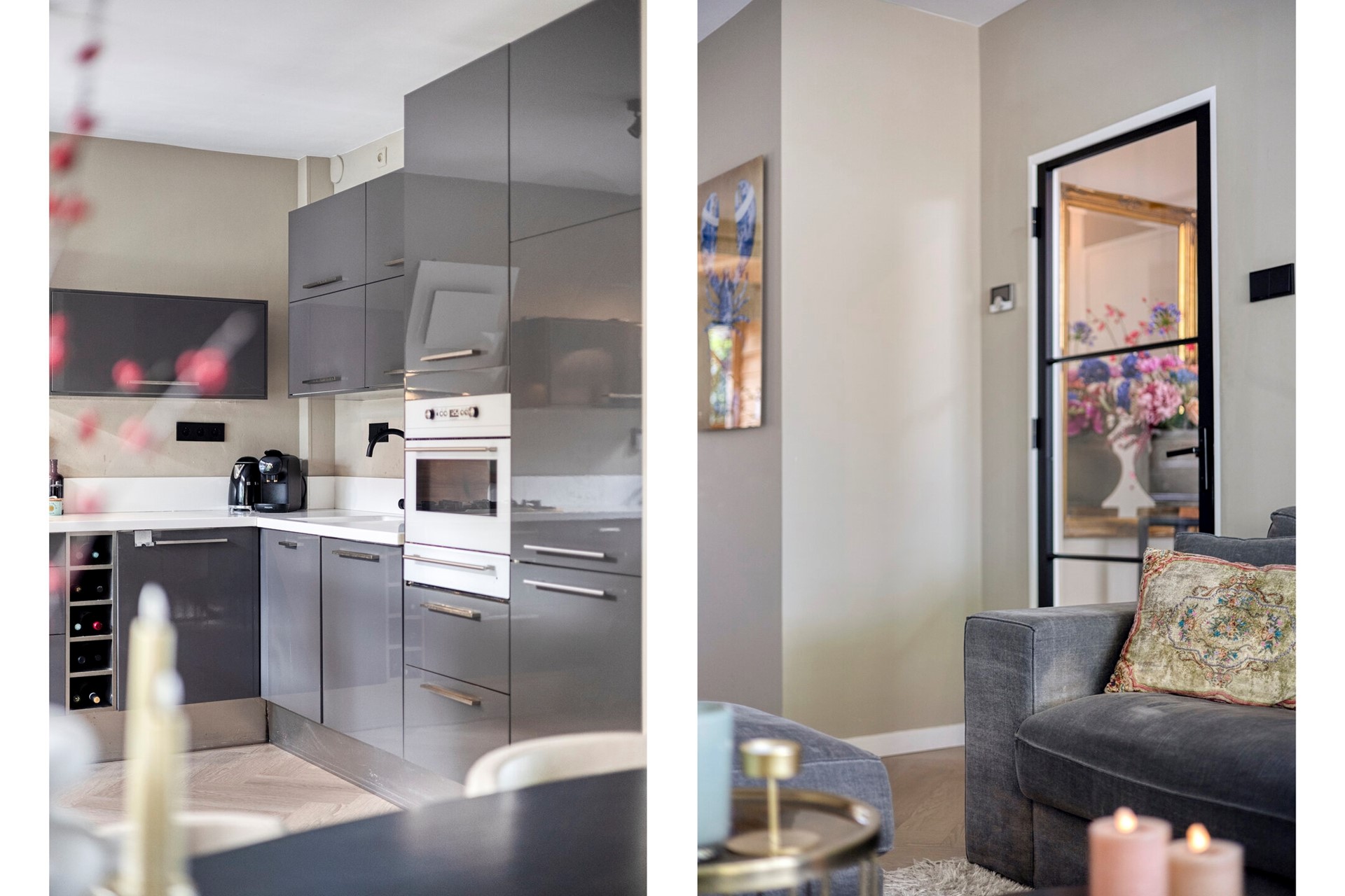 Via een mooie industriële deur, kom je in de woonkamer met aan de voorzijde ruimte voor een grote zithoek. Hier kunnen jullie heerlijke avondjes doorbrengen - met de voetjes omhoog voor de tv - met hele gezin, of lekker met een goed boek en een drankje. De airco (2024) die hier hangt kan koelen en verwarmen.