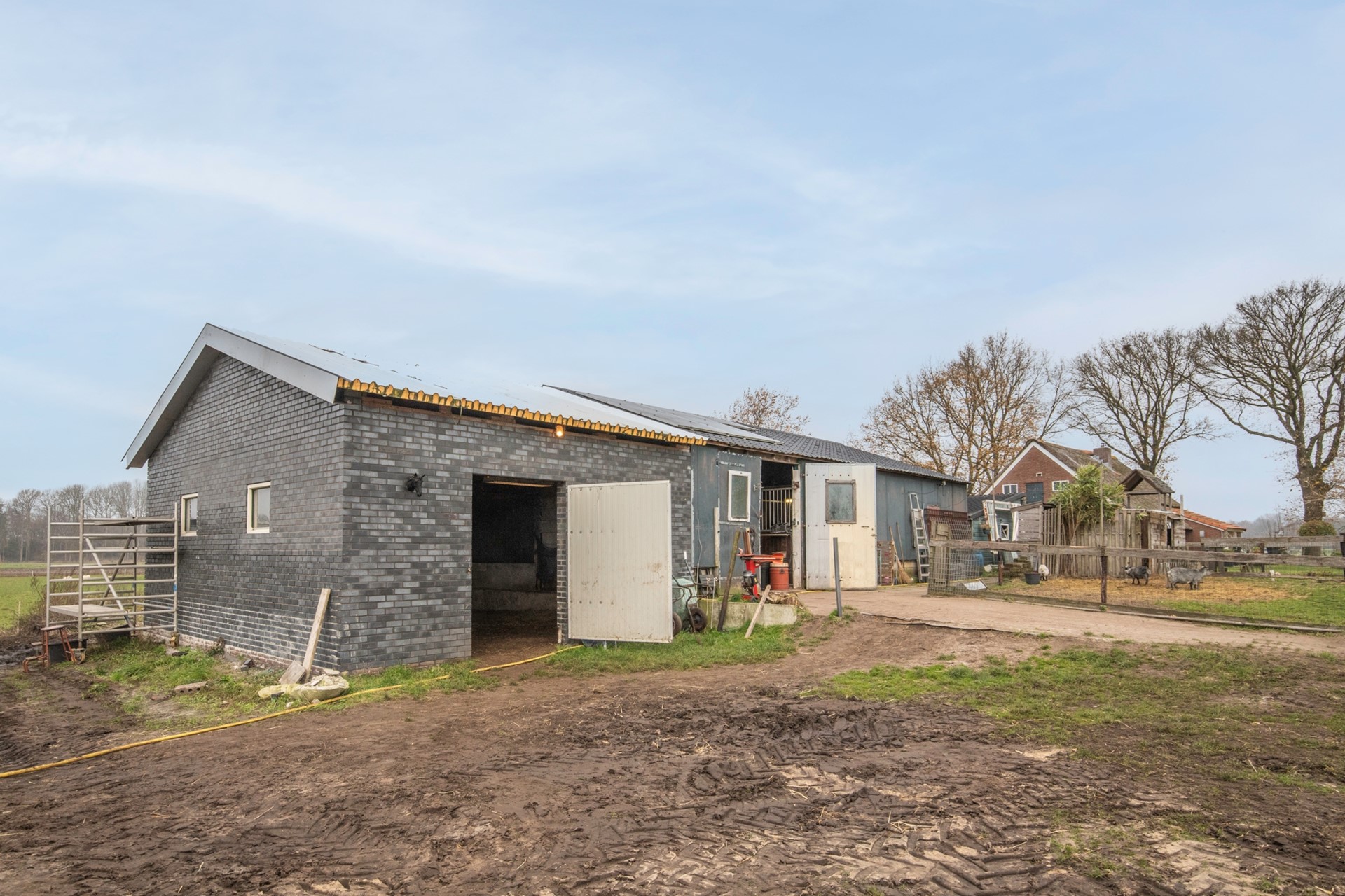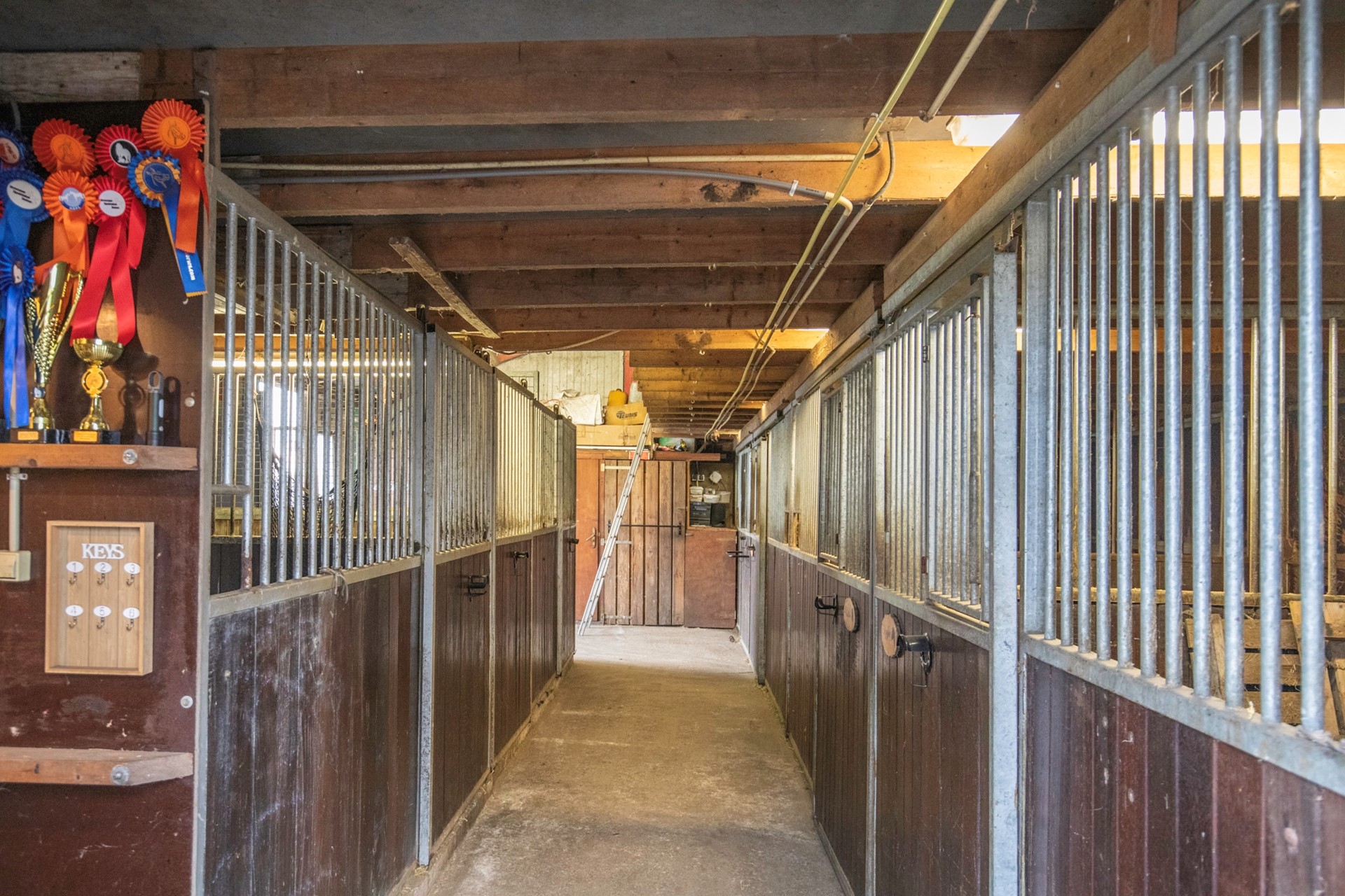 Op het erf bevindt zich een ruime paardenstalling, oorspronkelijk gebouwd in 1981, en in 2025 uitgebreid met een nieuw achterste gedeelte. Deze schuur vormt een praktische en veelzijdige ruimte voor paardenliefhebbers en biedt alle faciliteiten voor het houden en verzorgen van dieren.