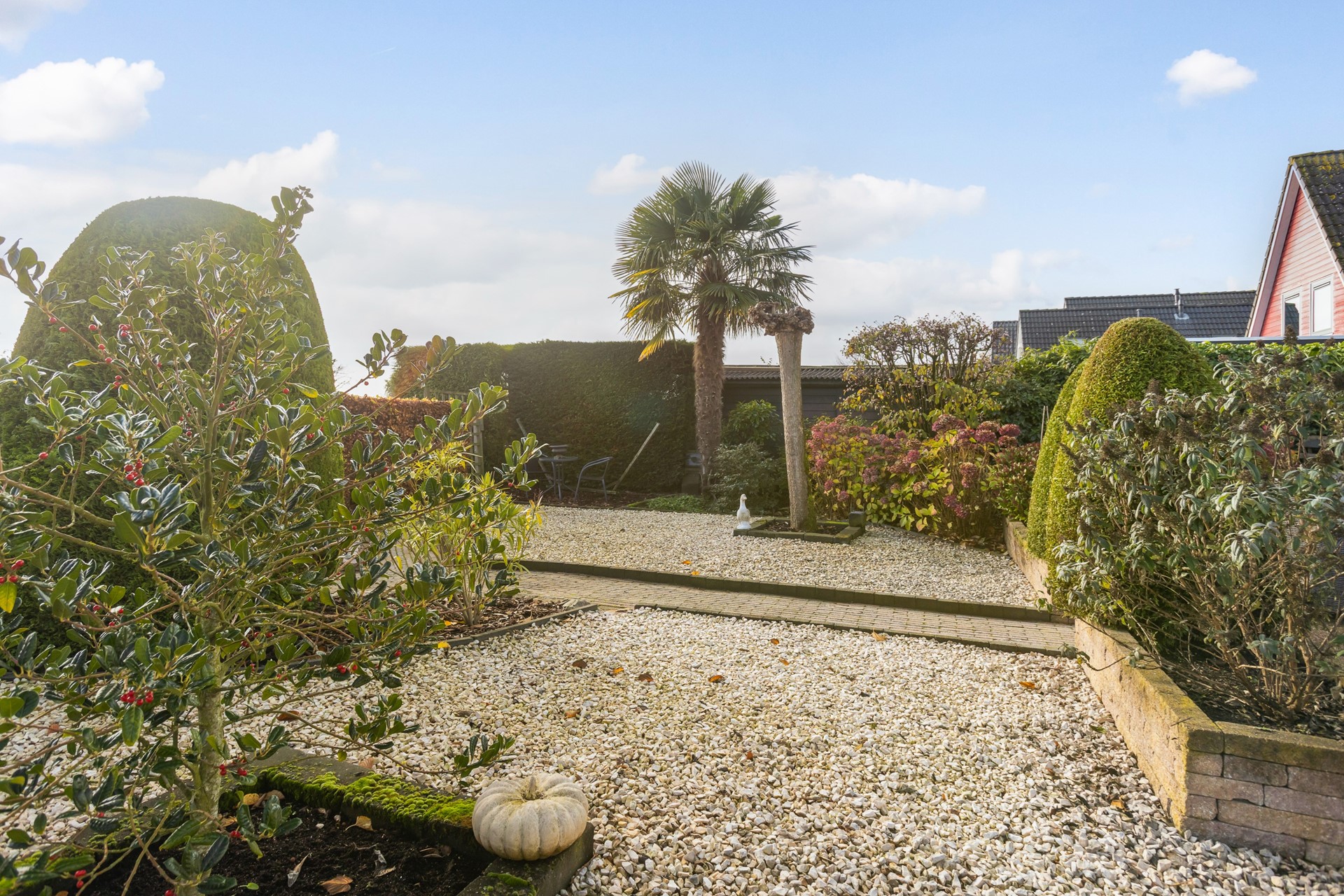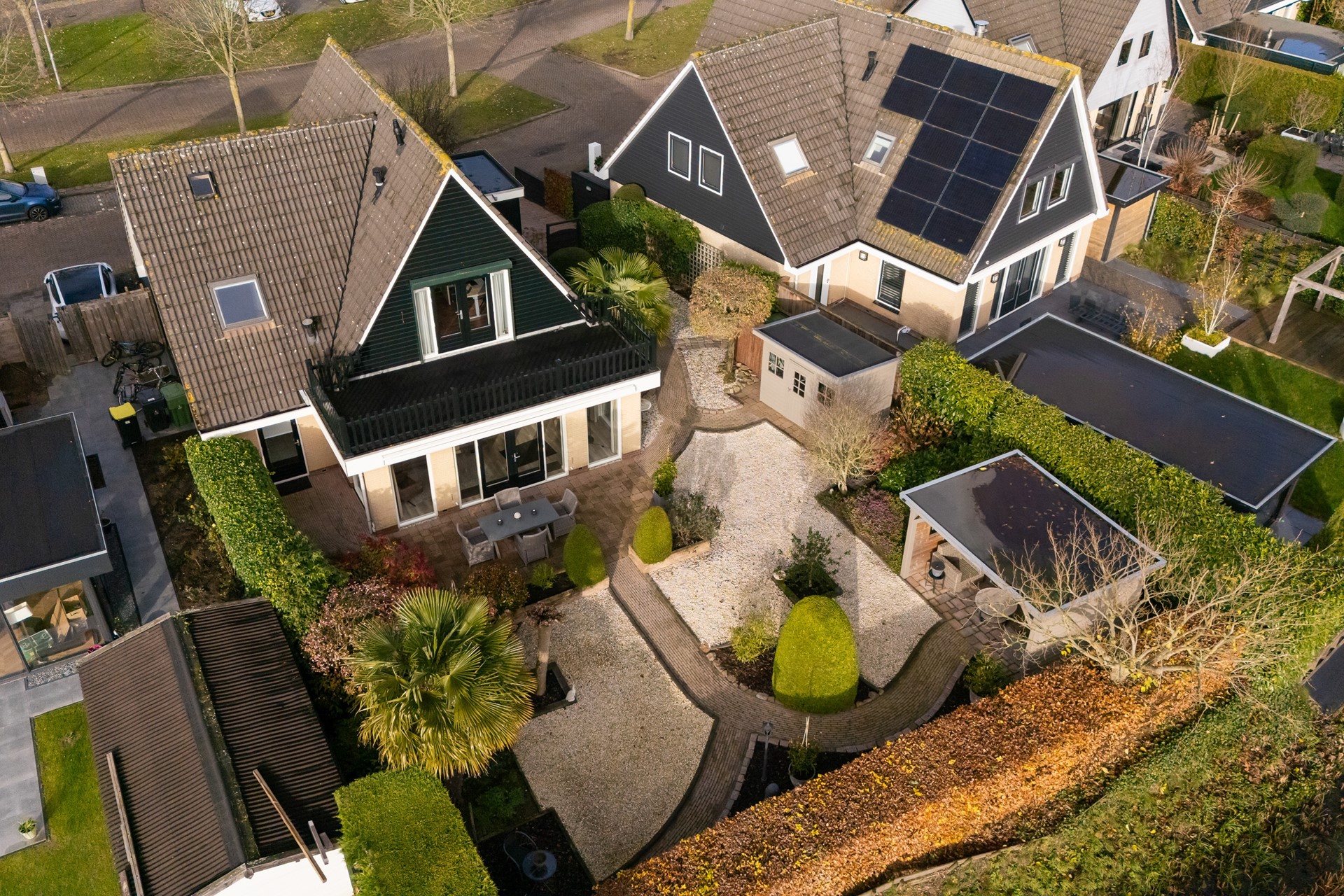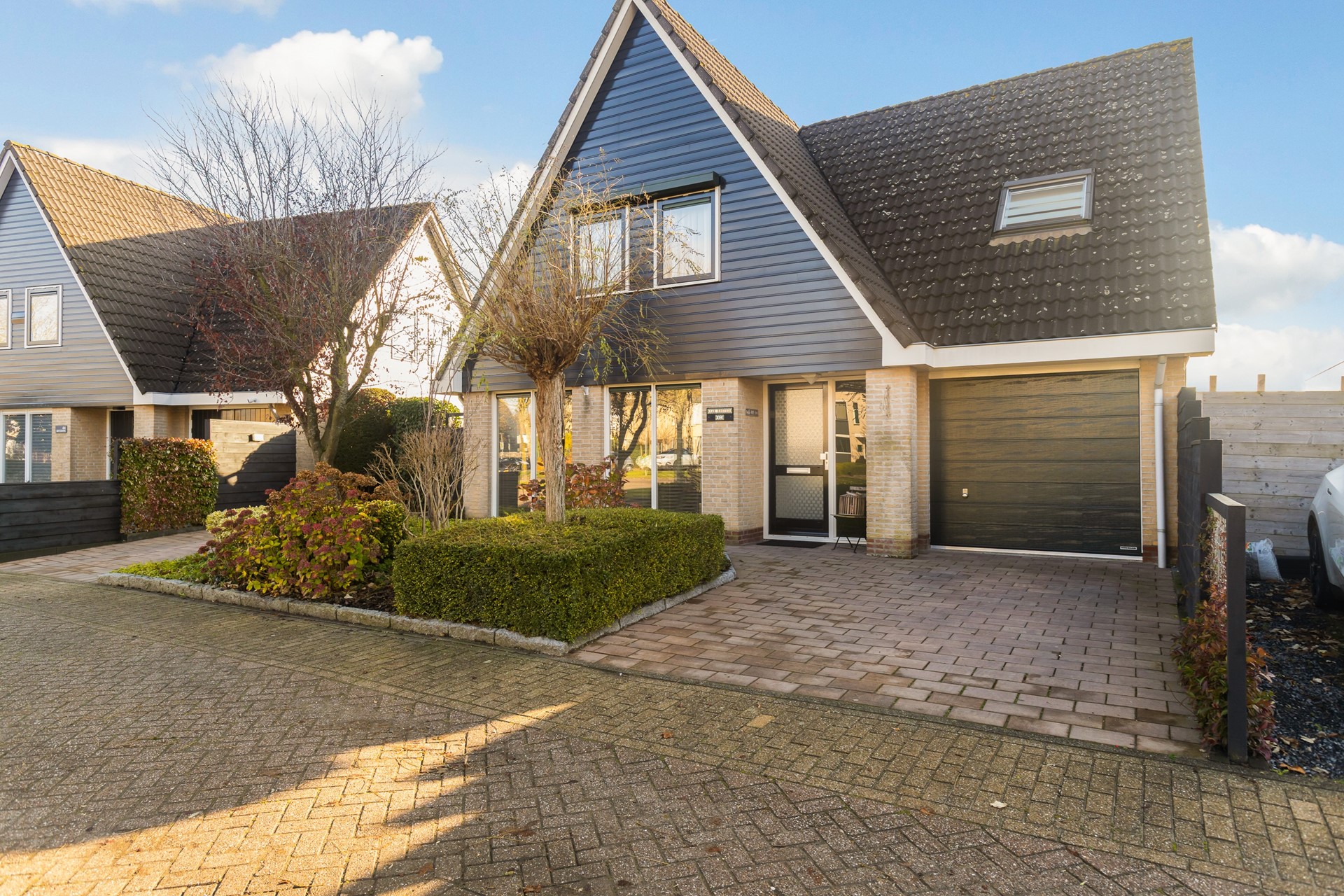 Wanneer je door de straat rijdt, dan valt het niet op, maar wanneer je goed kijkt, dan zie je pas waarin deze woning afwijkt van de andere woningen; Deze woning is (in 2001) op de begane grond maar liefst 3 meter uitgebouwd, daarboven bevindt zich – aansluitend aan de hoofdslaapkamer - een groot en zonnig dakterras.