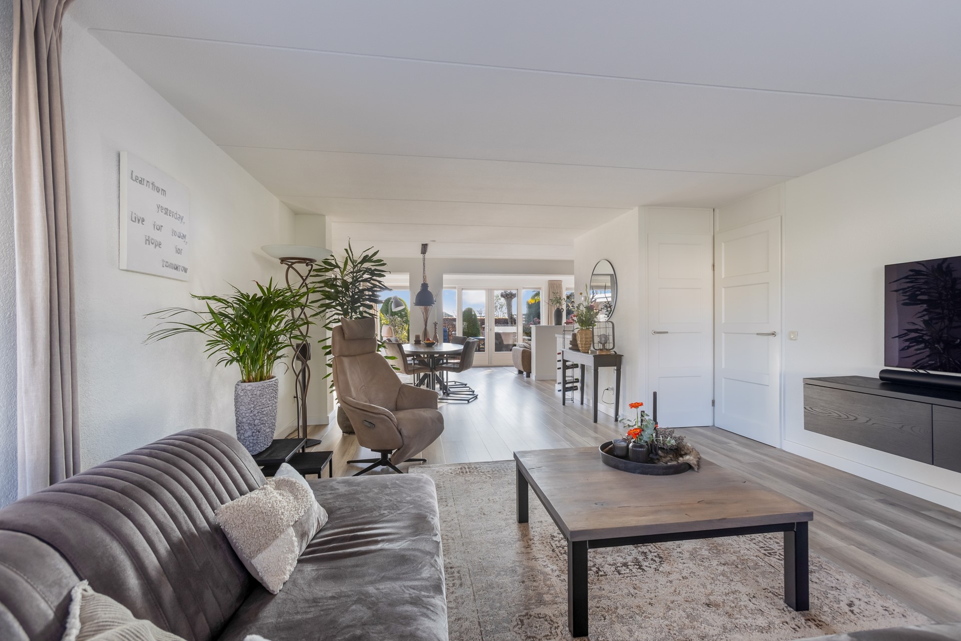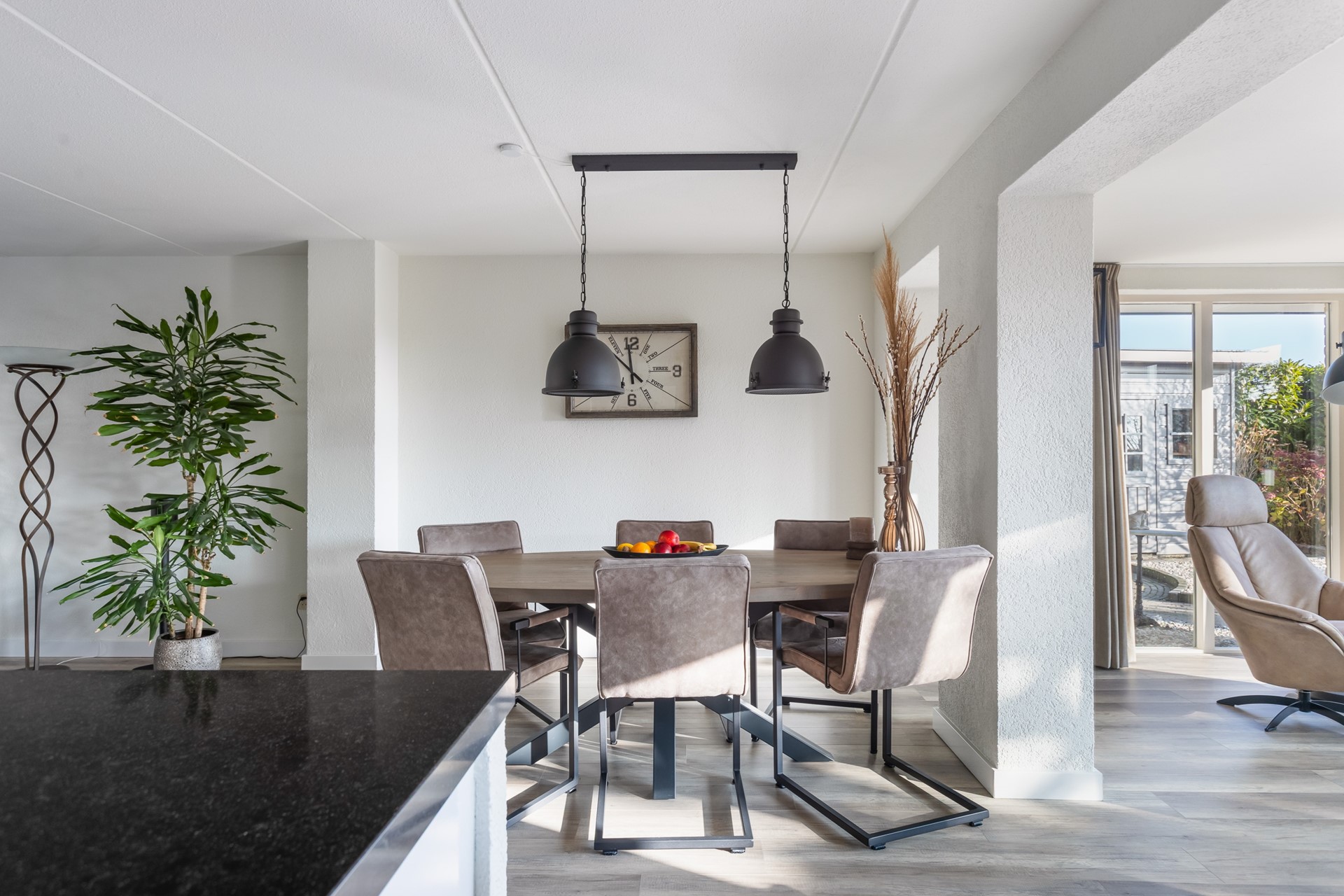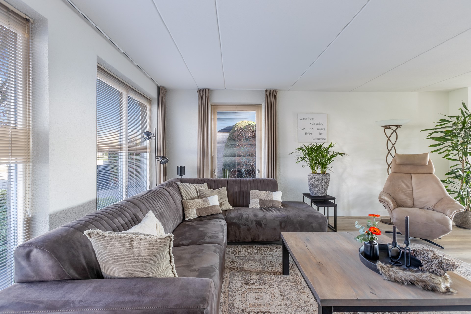 Het is niet dat mijn opdrachtgevers hier niet prettig wonen, integendeel. Ten tijde van de aankoop bestond het gezin uit 3 personen. En nu 'nummer drie' uitgevlogen is', is het huis wel heel groot geworden, voor met zijn tweeën. Tel daarbij op: 1) de lokroep van de geboortestreek, 2) het feit dat de geboortestreek dichterbij het uitgevlogen kind is, 3) het feit dat de ouders die nog in de geboortestreek wonen ouder worden, 4) er iets bijzonder moois en levensloopbestendigs op het pad (regeren is vooruitzien) kwam!