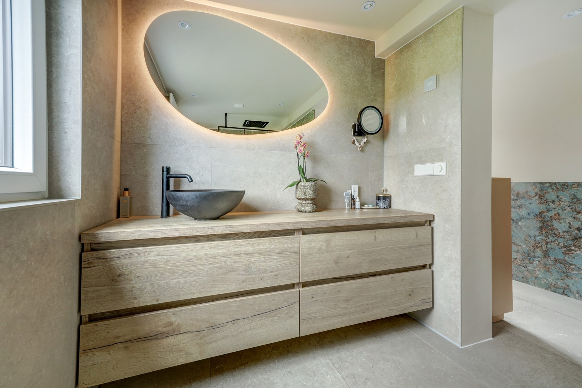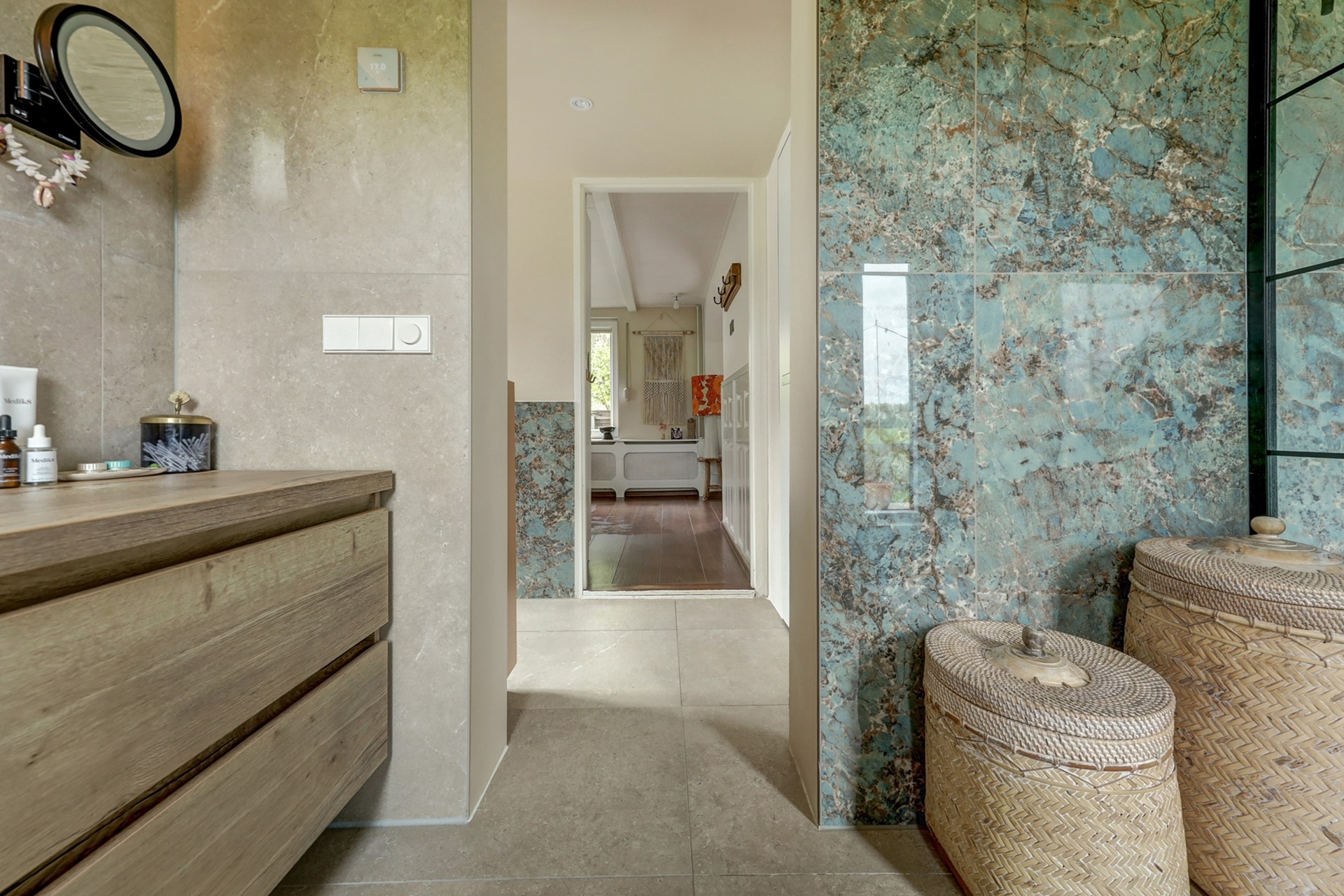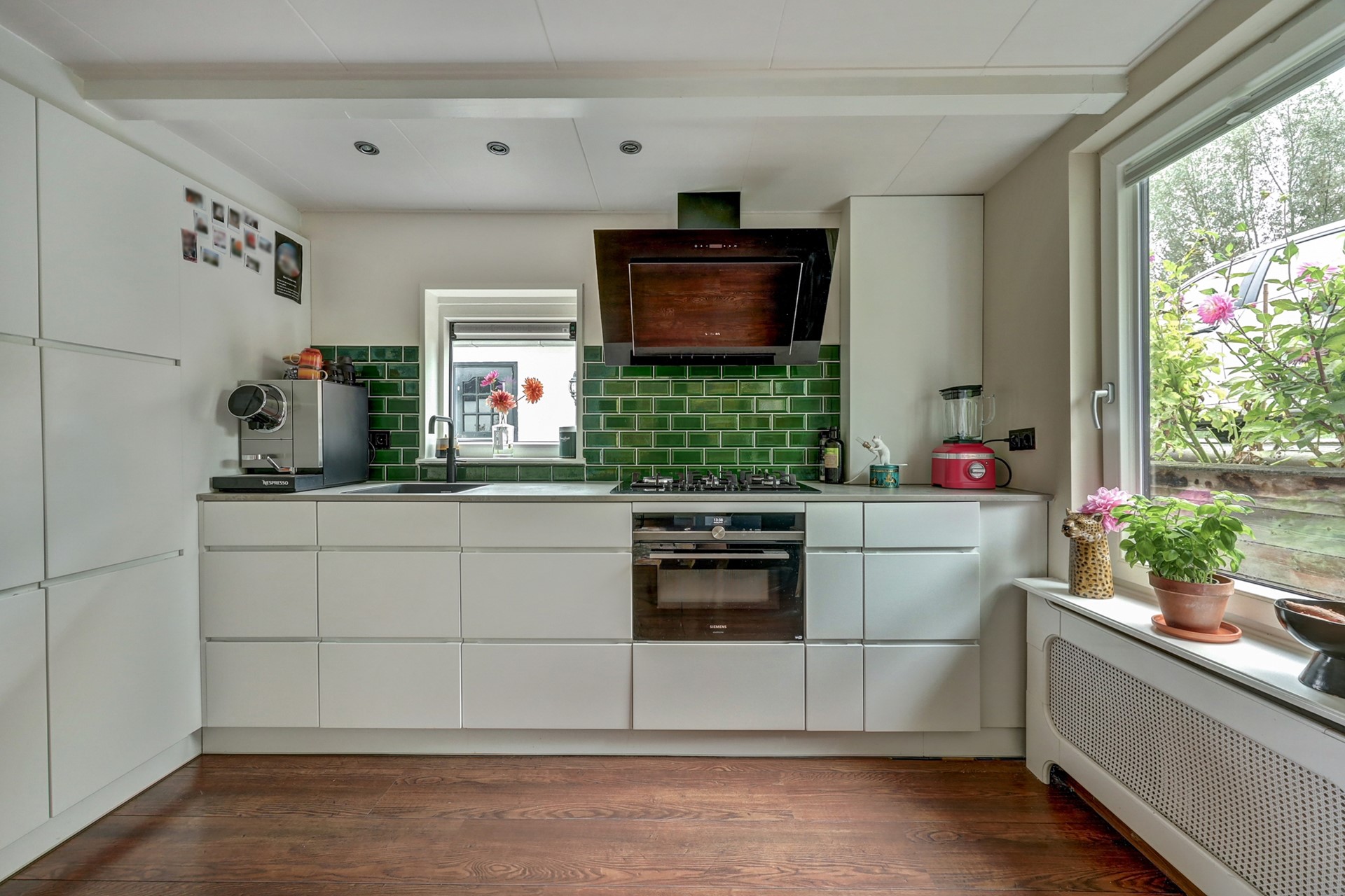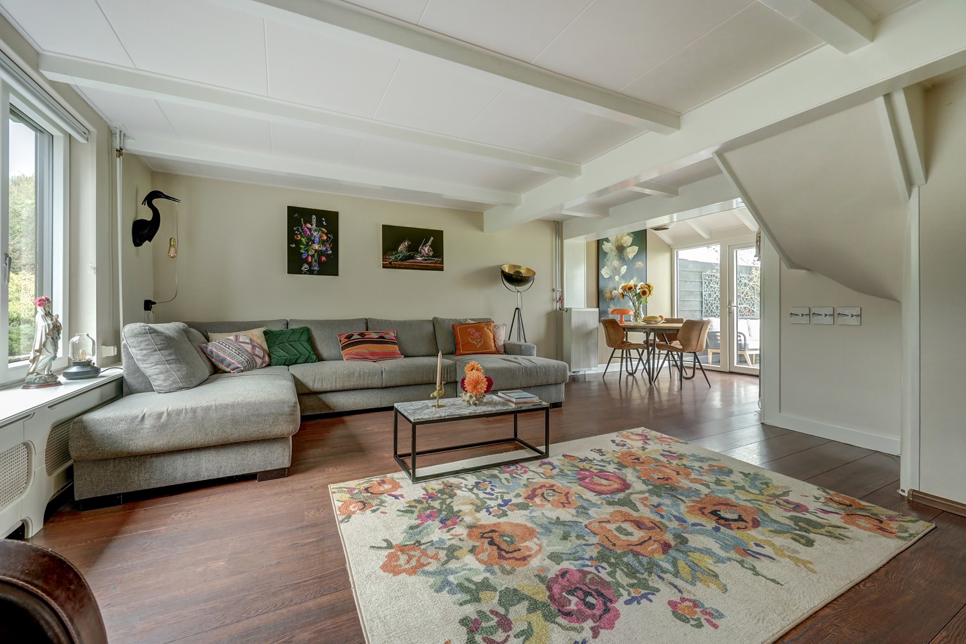 De indeling is als volgt: entree in de zijgevel, met aan rechterzijde het toilet (2024) en de luxe – in 2024 vernieuwde - badkamer (328 x 188 met inloopdouche, elektrische vloerverwarming en badkamermeubel met wastafel), recht vooruit de trapopgang en aan linkerzijde de in 2020 geplaatste moderne inbouwkeuken, ruim voorzien van inbouwapparatuur en van een Quooker. Vanuit de keuken bereikt u de sfeervolle en smaakvol afgewerkte woonkamer van 28 m², met balkenplafond, buitengewoon veel lichtinval, exclusieve duette shades plisés, openslaande tuindeuren en vrij uitzicht over het achtergelegen polderlandschap.