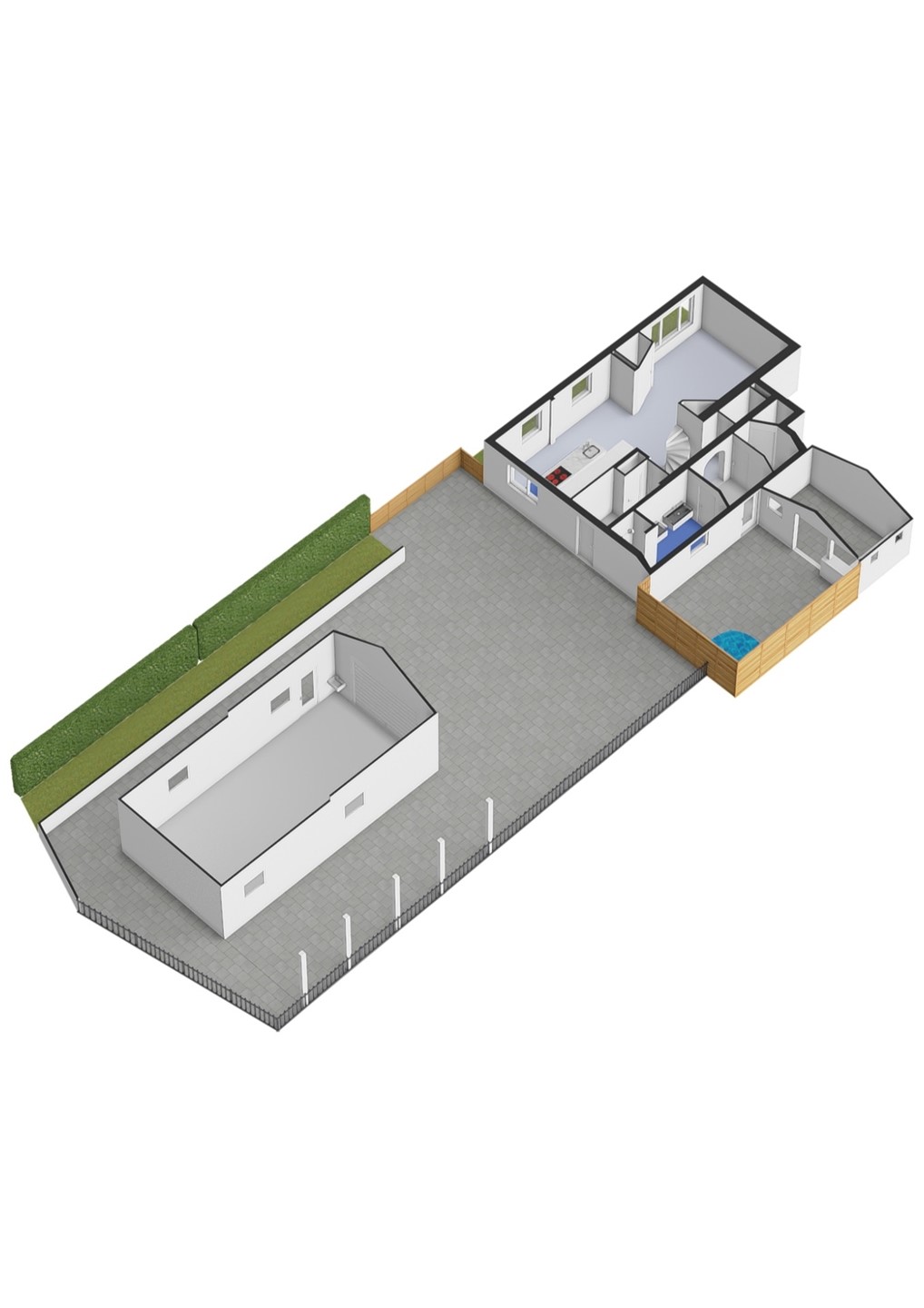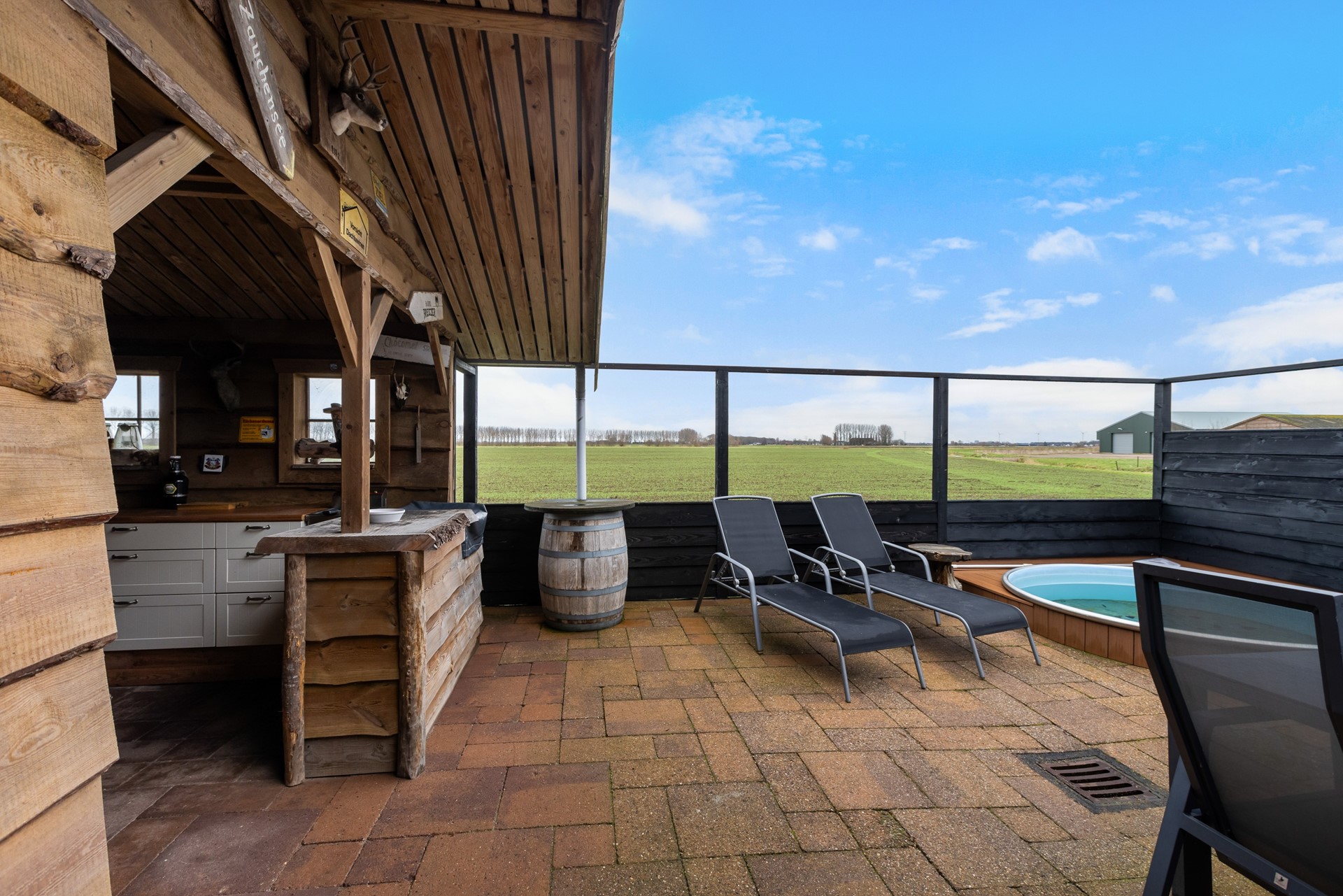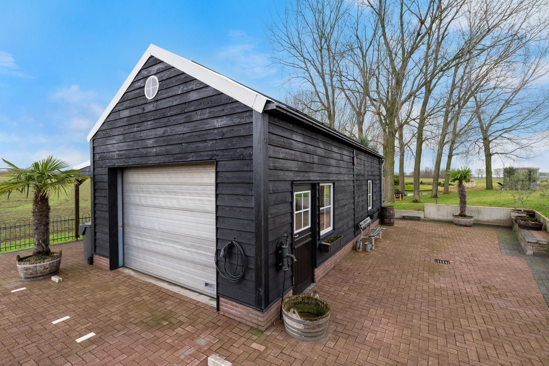 Er is zelfs een zwembadje in de tuin! De tuin is afgescheiden met een hek en een elektrische poort, waardoor de honden netjes en veilig op het eigen terrein blijven. En aansluitend aan de eigen grond wordt nog een stuk dijkweiland gehuurd van de boer, die er schuin achter woont. De boer staat niet onwelwillend tegenover het opnieuw verhuren, de koper zal dat t.z.t. met de achterbuurman moeten bespreken.