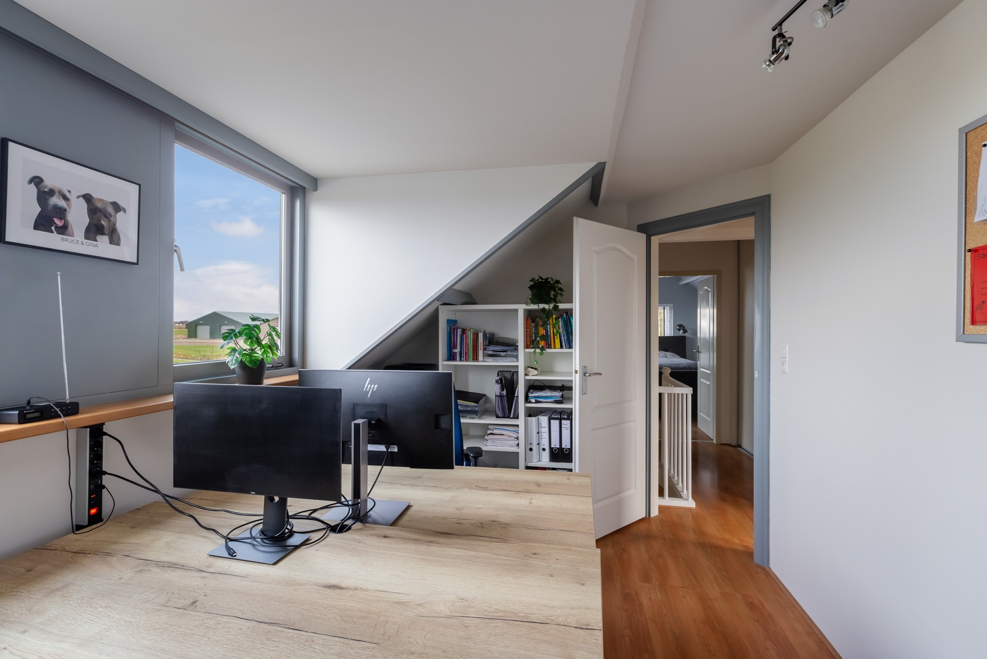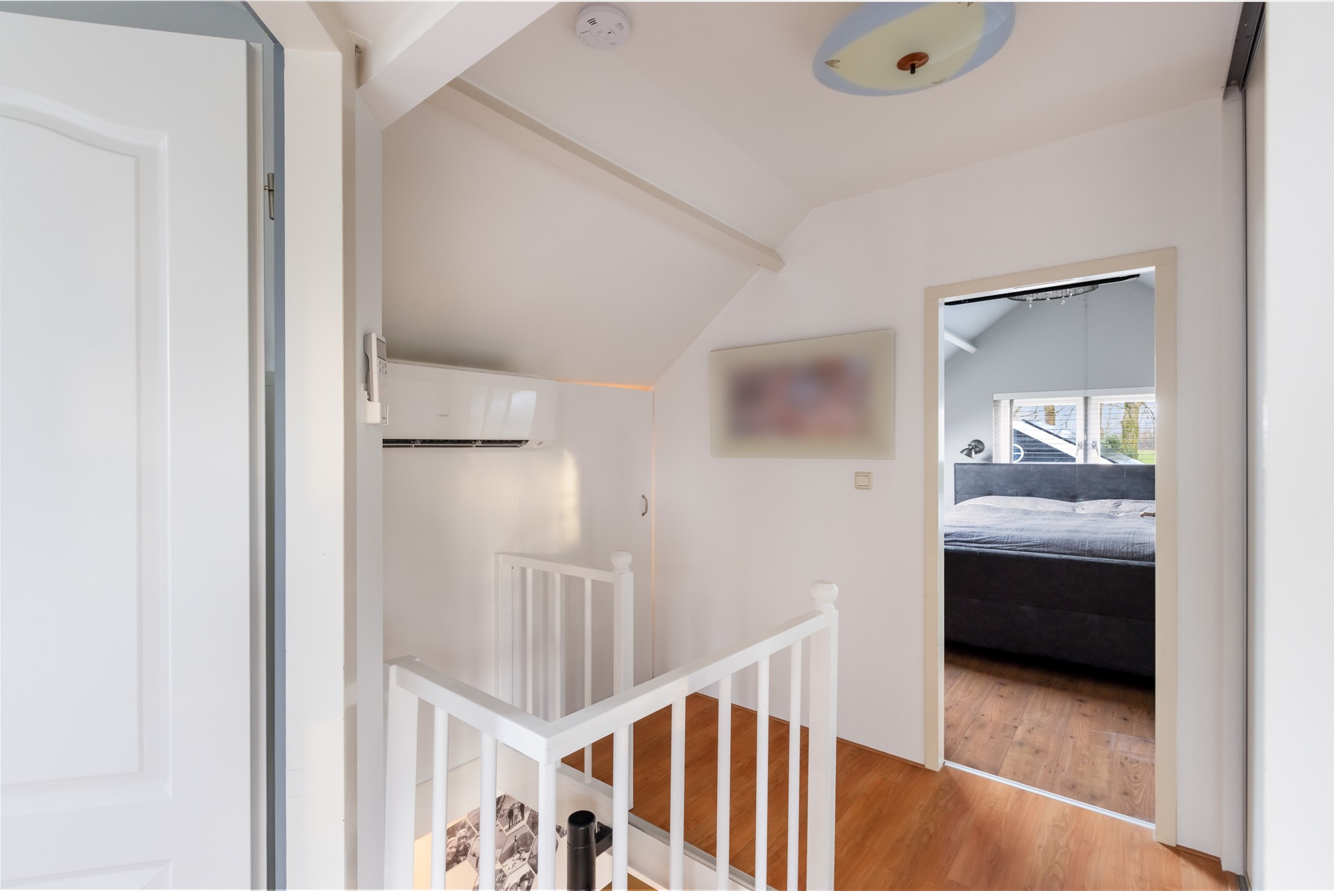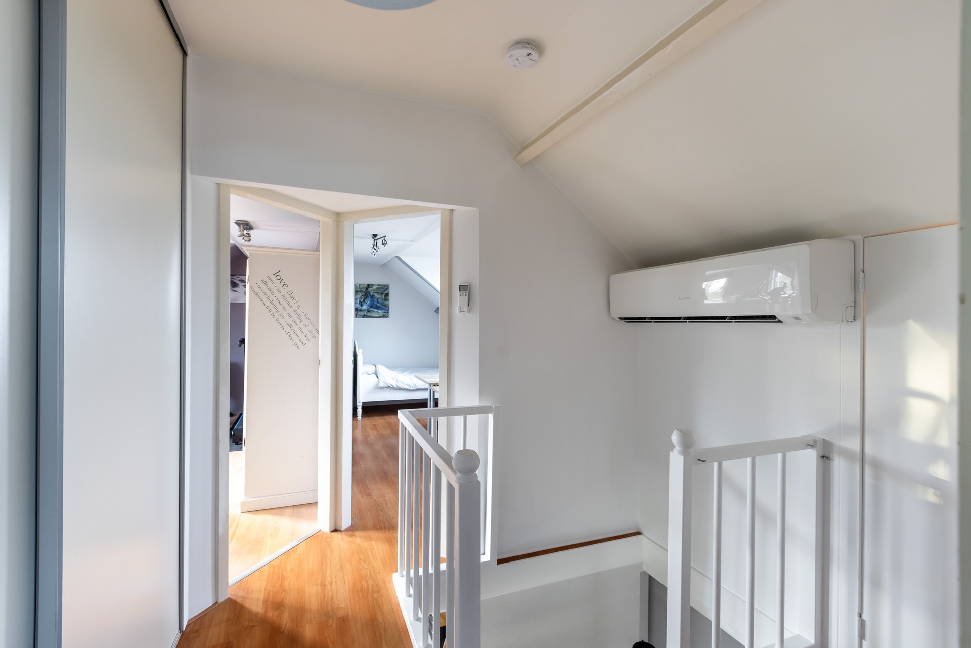 Op de verdieping is de indeling als volgt: royale overloop met inloopkast, grote ouderslaapkamer (449 x 397 exclusief inbouwkasten) en prima tweede en derde slaapkamer (464 x 273 elk, beide voorzien van een dakkapel).