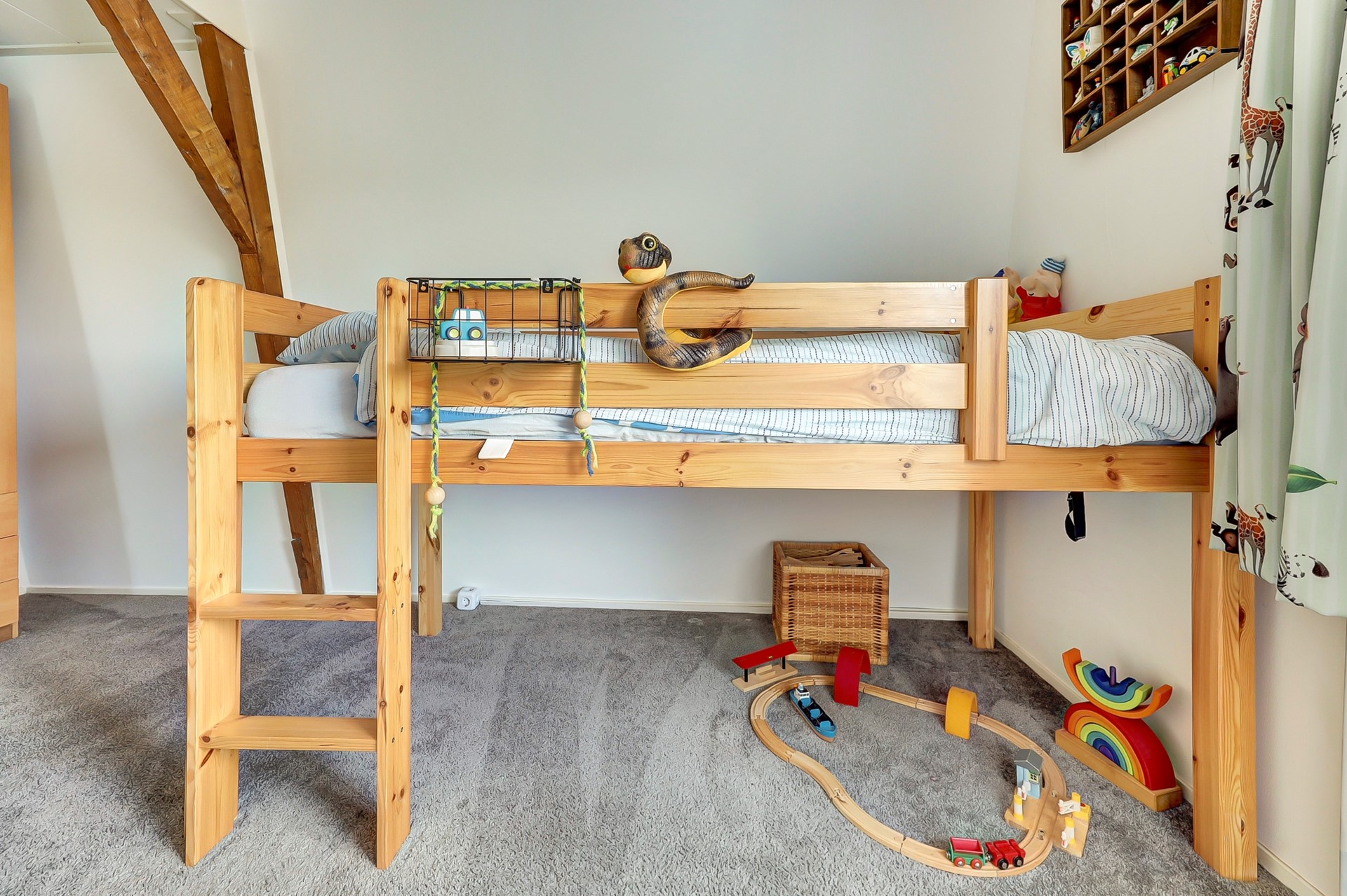 Vanaf de grote slaapkamer heeft u via een losse trap toegang tot de bevloerde bergzolder.