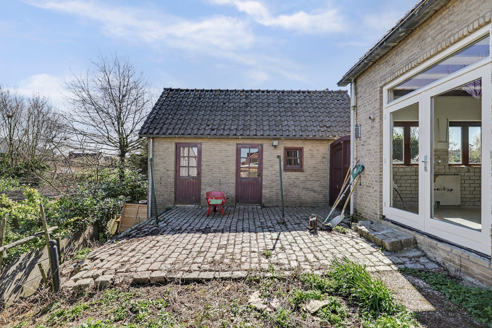 Wie alleen even langsrijdt, mist hier een belangrijk deel van het verhaal. Vanaf de buitenzijde is moeilijk in te schatten wat er aan de binnenzijde al is aangepast. En met dit perceel is wellicht veel méér mogelijk dan u, zonder verder te lezen, zou vermoeden.