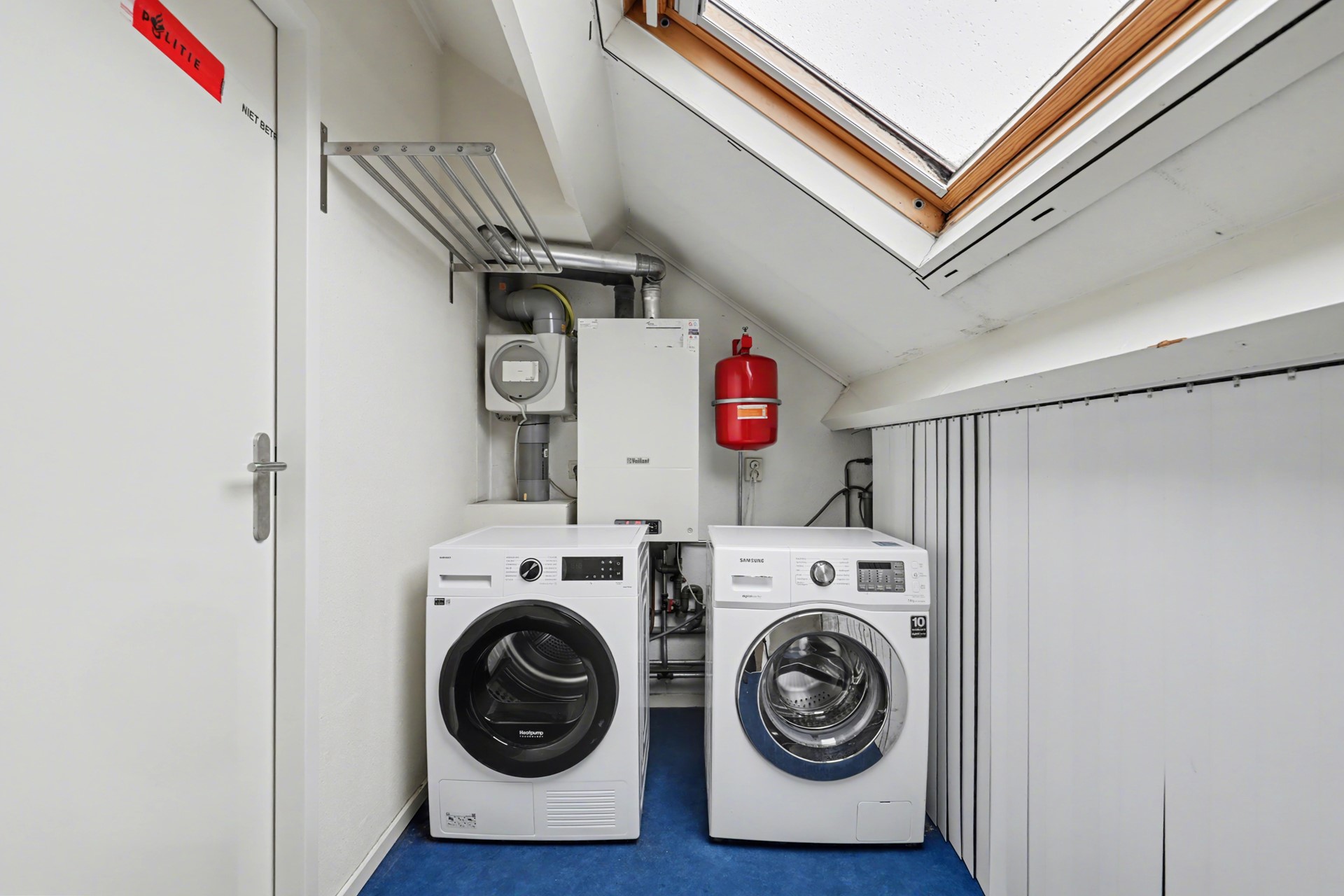 Via een vaste trap bereik je de tweede verdieping die als volgt is ingedeeld: overloop met cv-ketel en aansluitingen voor de wasapparatuur, en een mooie derde slaapkamer met nieuwe dakkapel.