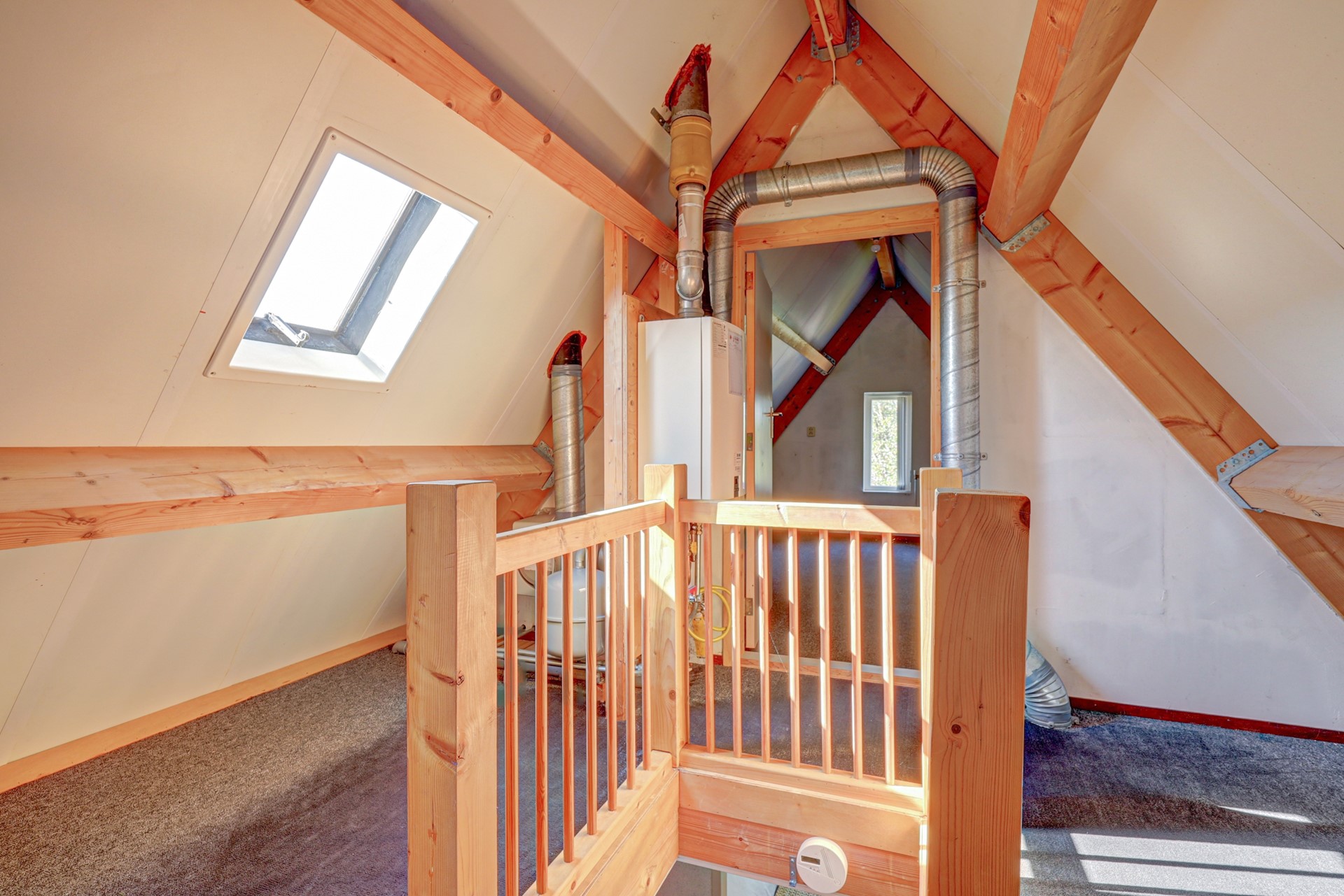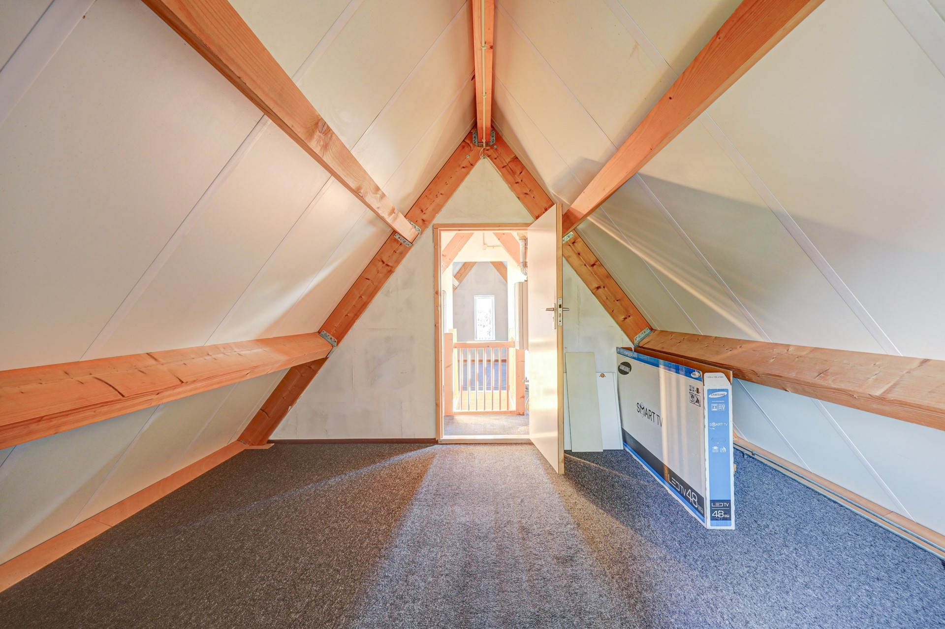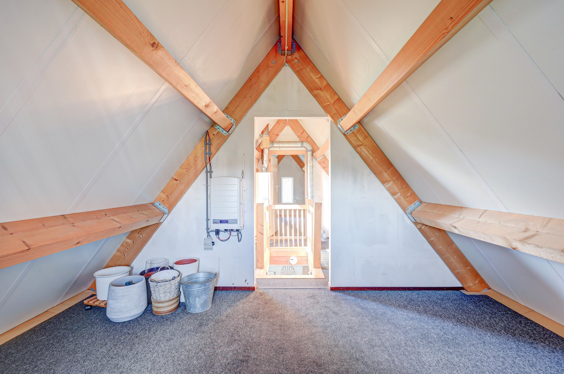 Vanaf de overloop bereikt u via een vlizotrap de royale multifunctionele zolder met ruim stahoogte in de nok, voldoende werk-/hobbyruimte en de c.v.-ketel. (Minimaal) 1 van de buurpanden heeft een vaste trap gerealiseerd naar de tweede verdieping, dat behoort hier ook tot de mogelijkheden.