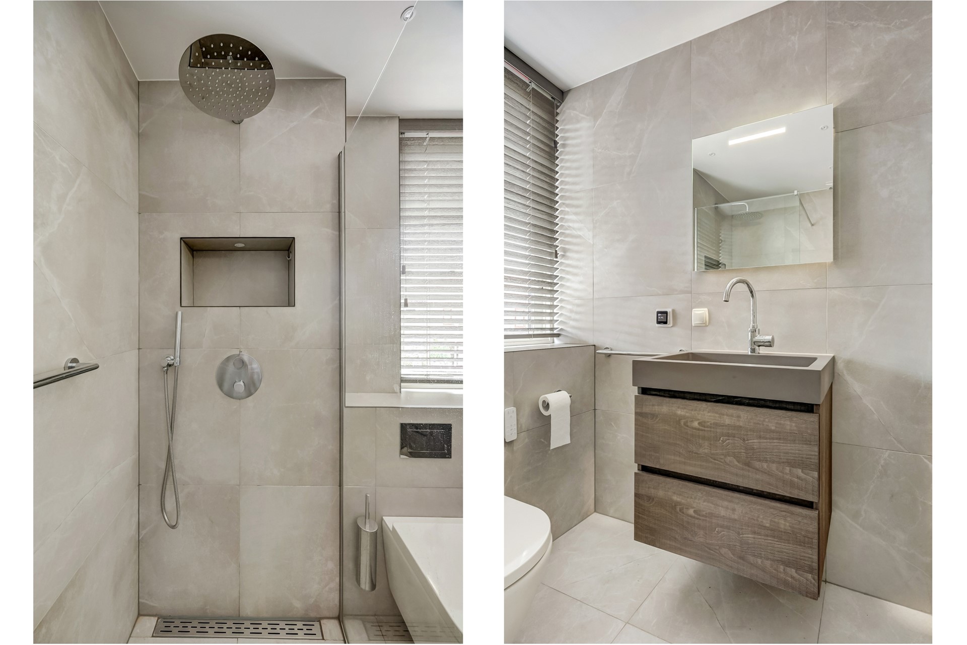 Op de eerste verdieping is de indeling als volgt: overloop, drie slaapkamers (433 x 362, 383 x 362 en 292 x 219 met vaste kast) en de recentelijk fraai vernieuwde badkamer (219 x 180) met inloopdouche, tweede toilet en badkamermeubel met wastafel.