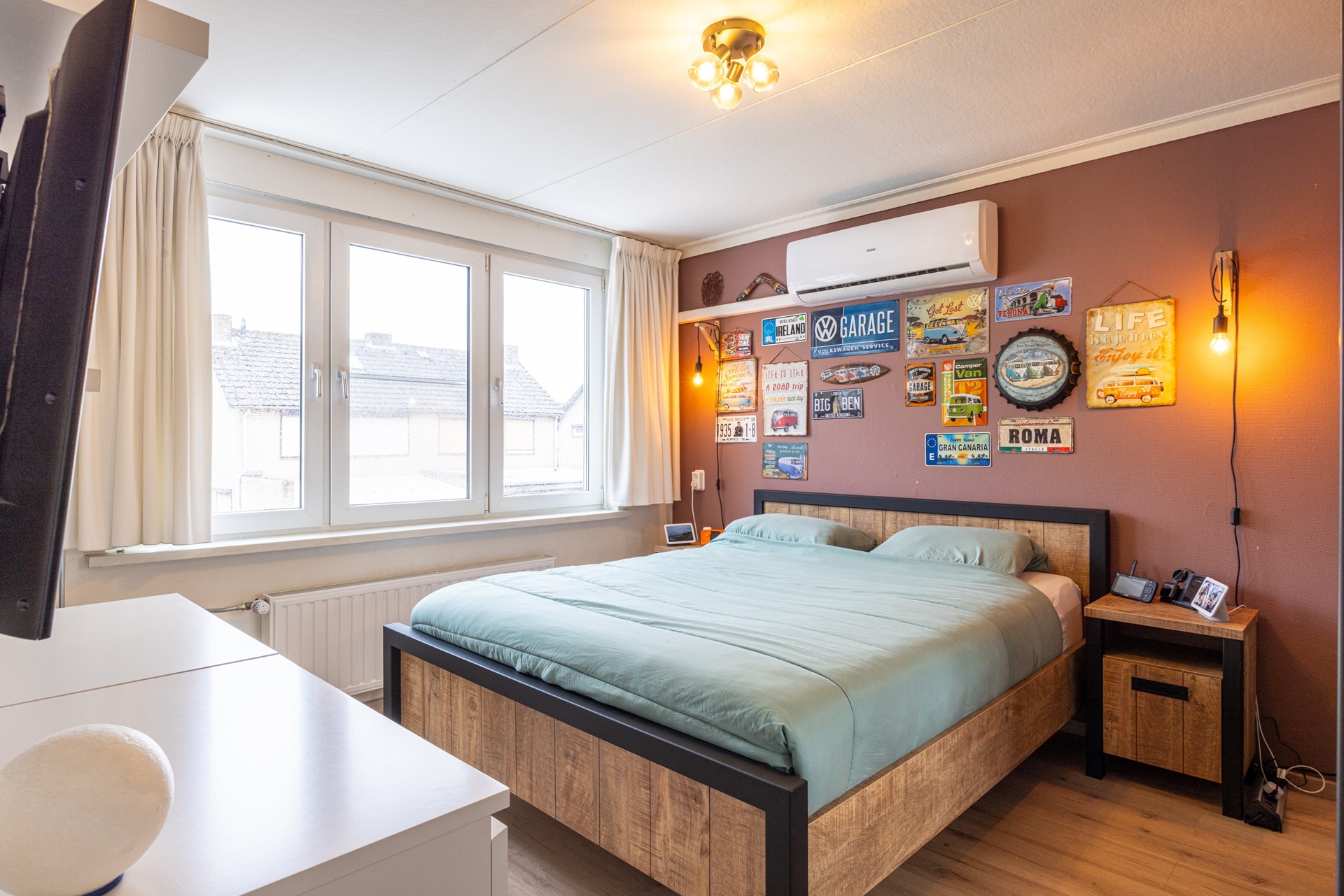 De hoofdslaapkamer aan de achterzijde beschikt over airconditioning, waardoor je hier in elk seizoen lekker kunt slapen. De andere twee kamers zijn ideaal te gebruiken als kinderkamer, werkplek of hobbyruimte.