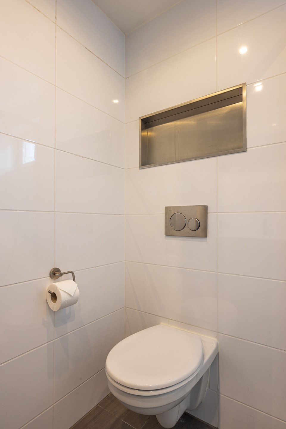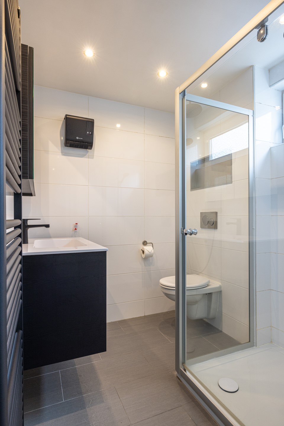 *Moderne badkamer met inloopdouche en zwevend toilet