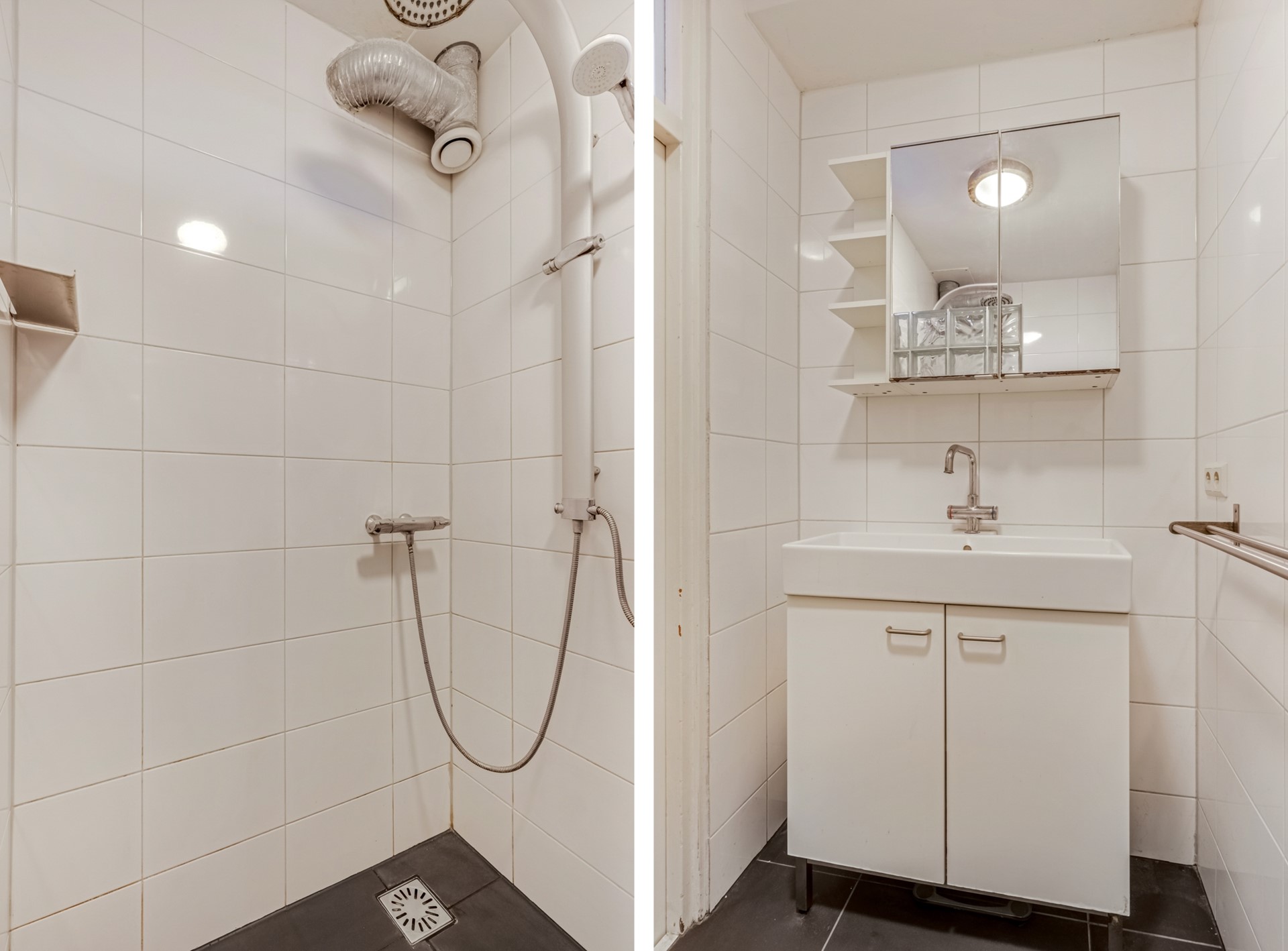 Aan de achterzijde van het appartement bevinden zich twee ruime en lichte slaapkamers, voorzien van draai/kiepramen. De badkamer is geheel betegeld en voorzien van douche en wastafelmeubel.