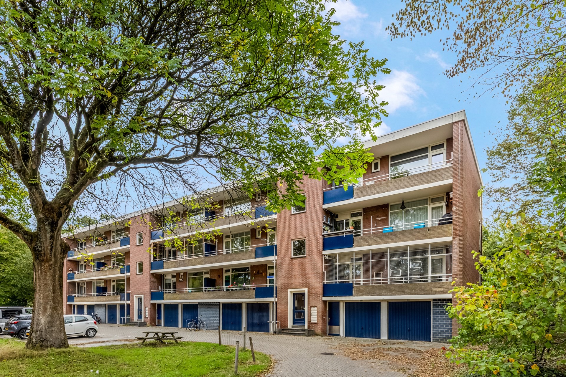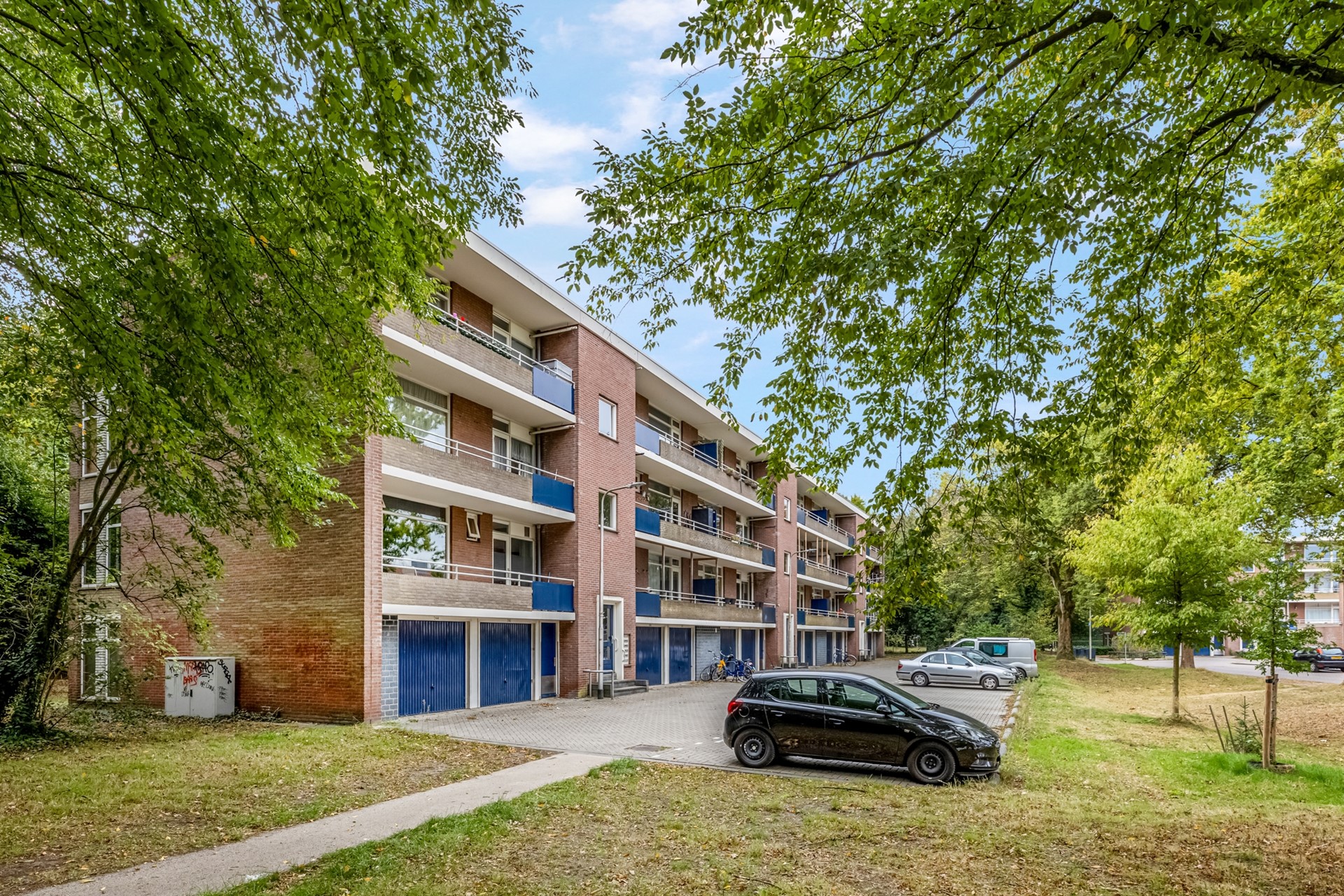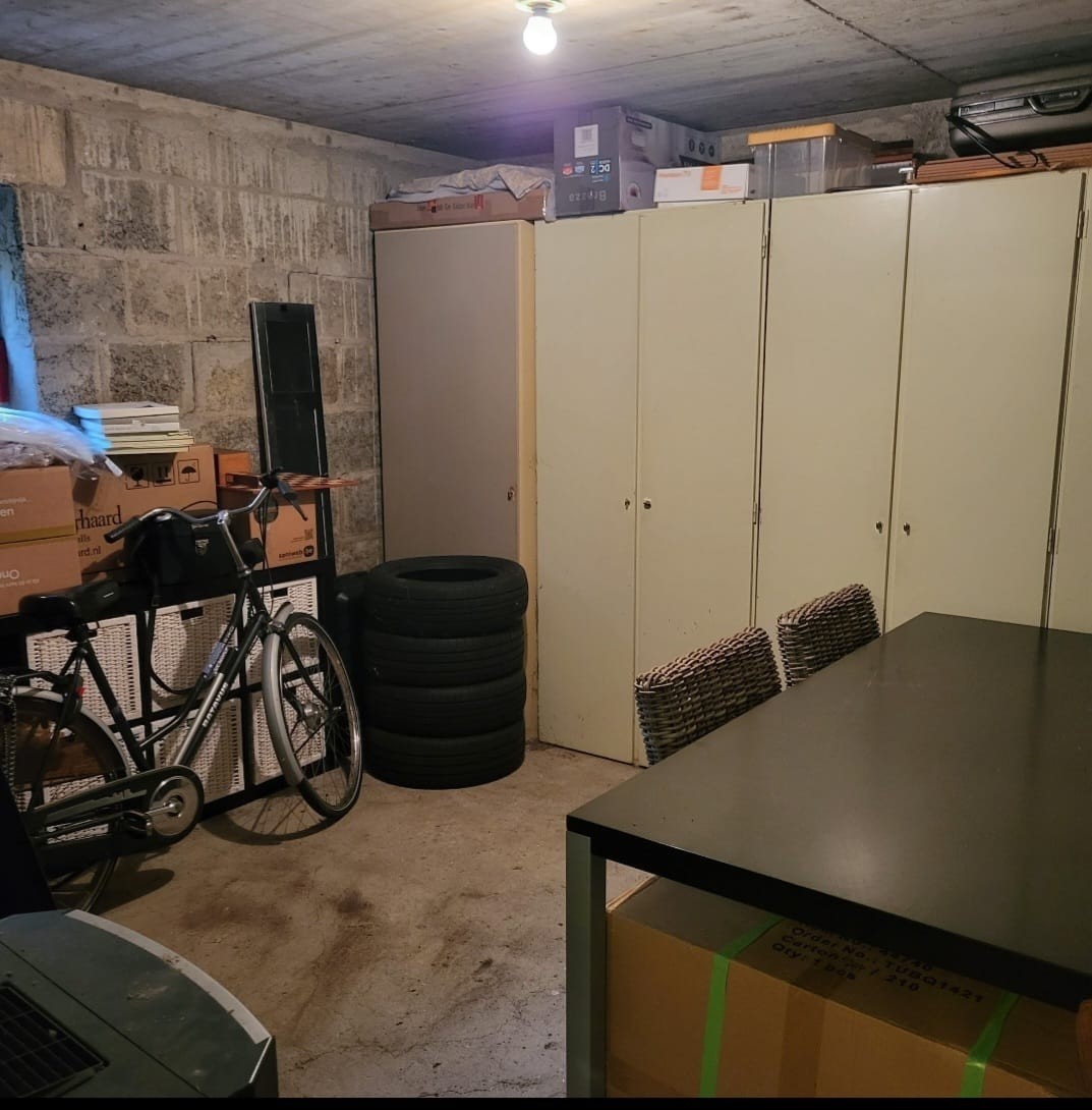 In het souterrain vind je een zeer ruime berging van circa 12 m² – ideaal voor het opslaan van spullen. Voorzien van elektra en opbergkasten. Deze berging is bovendien ruimer dan de andere bergingen in het complex.