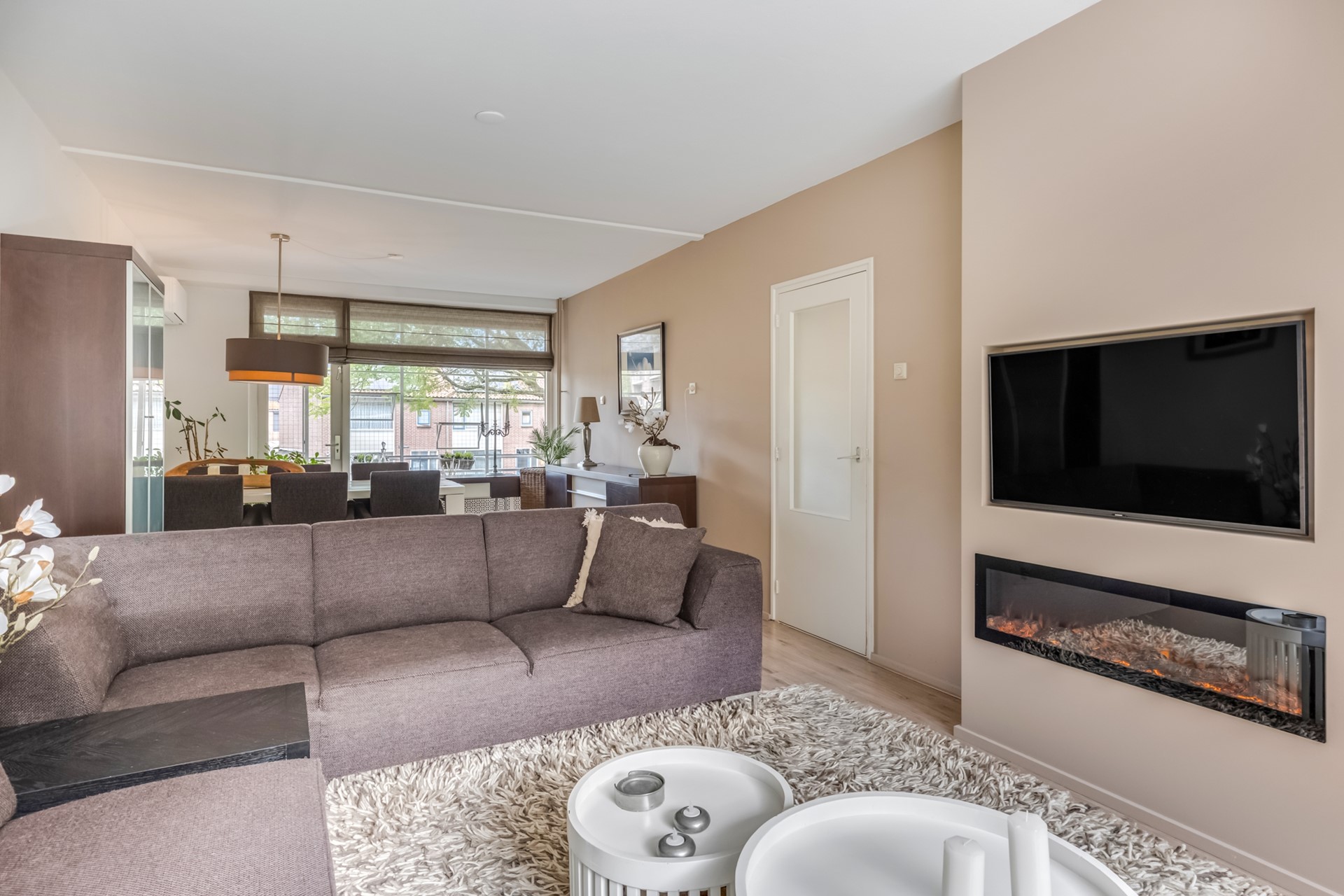 Dit appartement beschikt over een ruime woonkamer, voorzien van een houten pvc vloer. Dankzij de grote raam partijen is de woonkamer licht en kijkt u heerlijk weg. De keuken is zeer praktisch met een apothekerskast, inclusief alle inbouwapparatuur zoals nieuwe koelkast, inductie kookplaat, combi-oven, rvs afzuigkap en v.i. vaatwasser. Het balkon is ook bereikbaar via de keuken. Buitendeur is voorzien van een schuif hordeur. De woonkamer is tevens voorzien van airconditioning uit 2024 en een elektrische inbouwkachel die voor een heerlijke sfeer zorgt. De muren zijn voorzien van strak stucwerk.